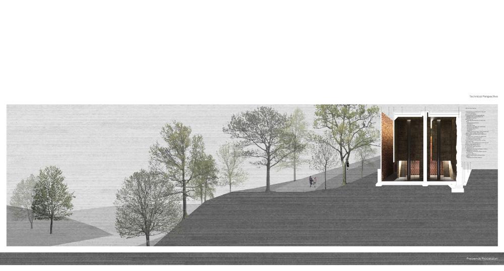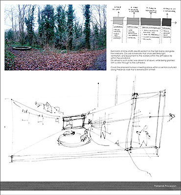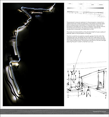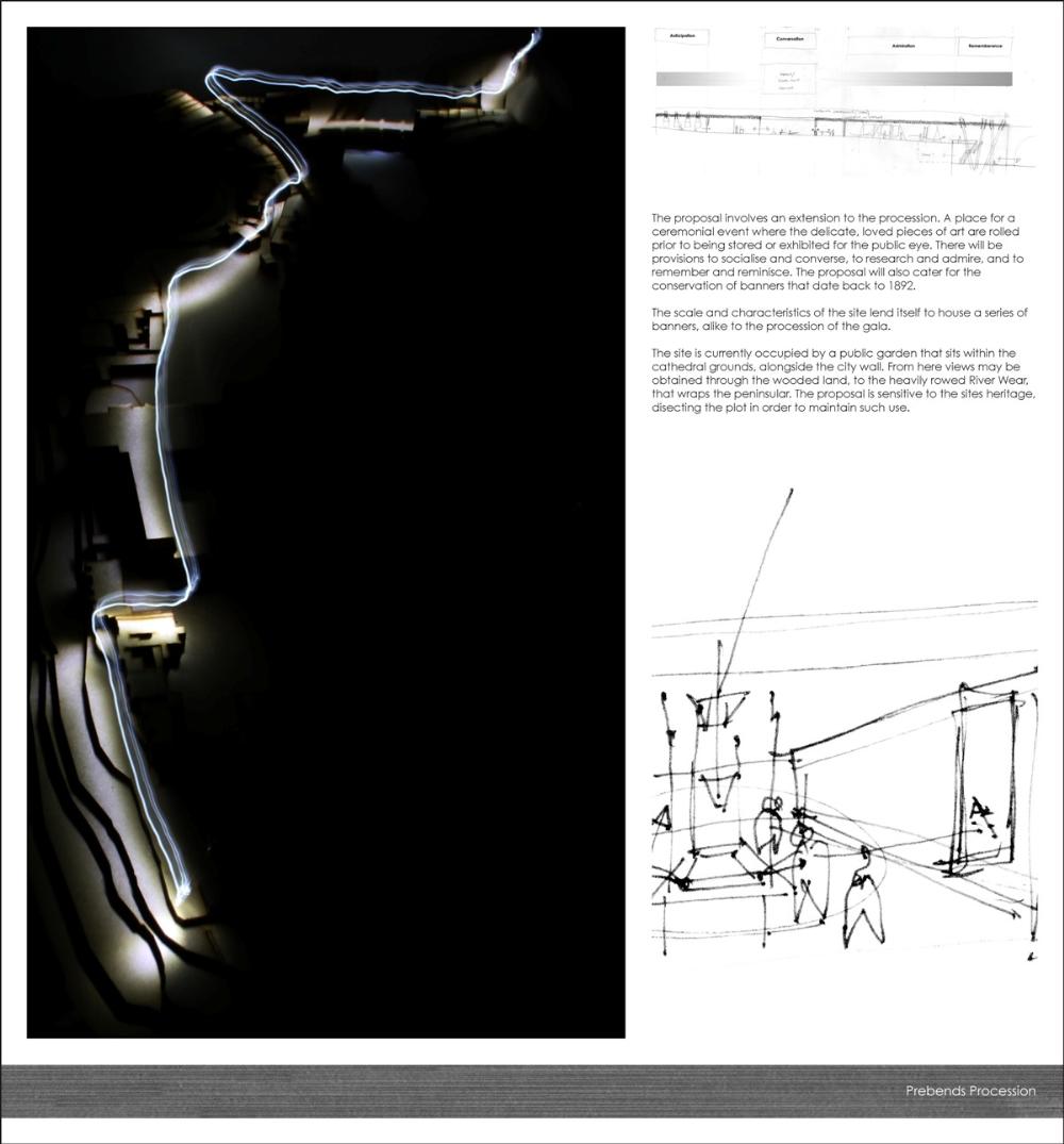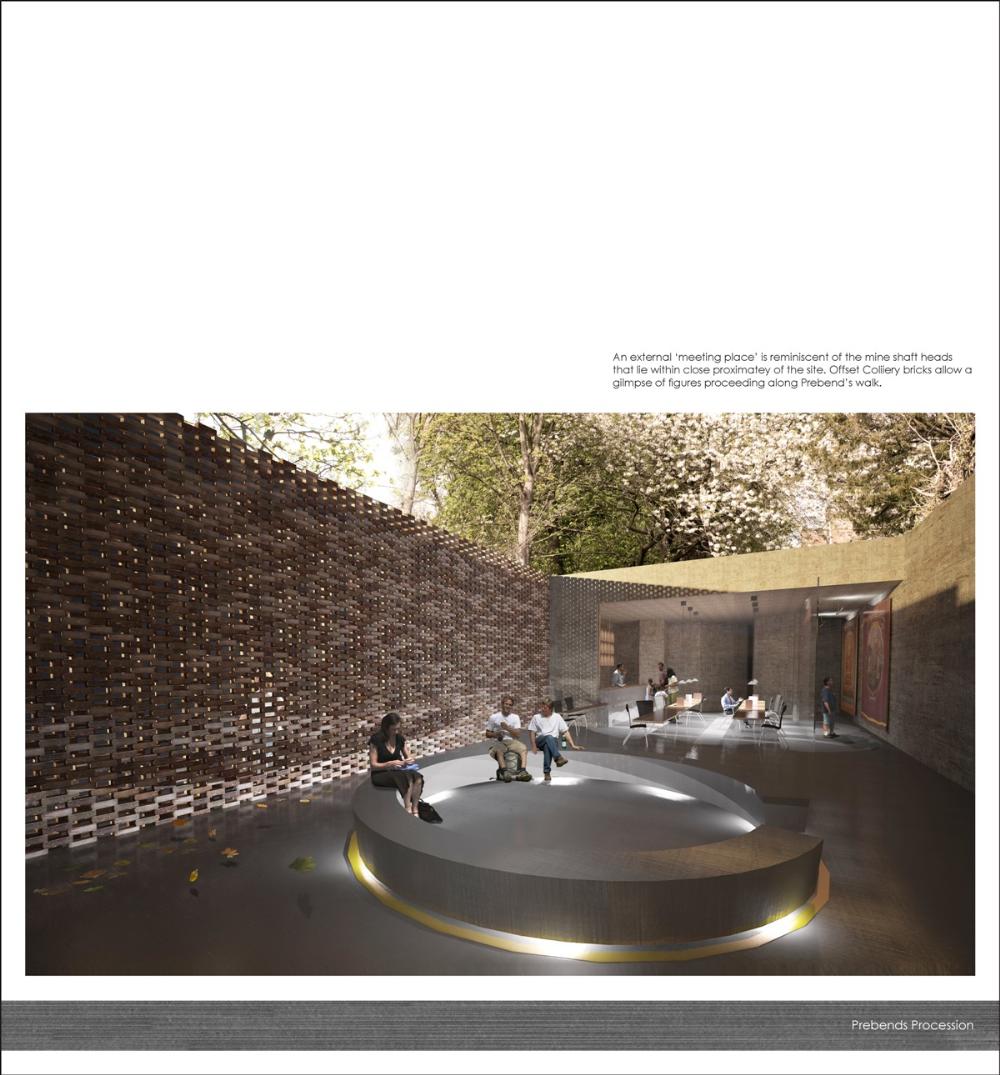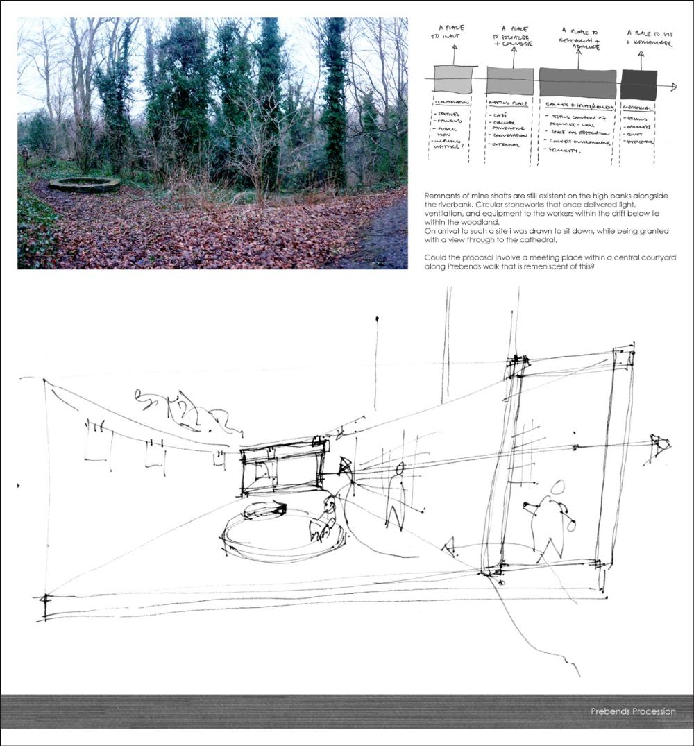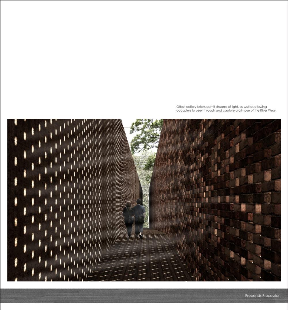 The site is currently occupied by a public garden that sits within the cathedral grounds, alongside the city wall. From here views may be obtained through the wooded land, to the heavily rowed River Wear that wraps the peninsular. The proposal is sensitive to the sites heritage, dissecting the plot in order to maintain such use.