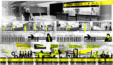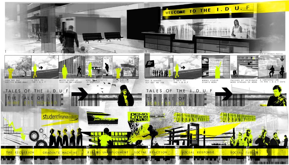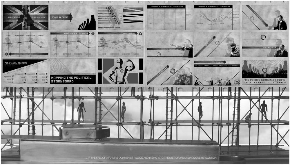 In the fall of a fictional communist regime, the birth of the I.D.U.F attempts to defy the system of organised politics and inspire a decentralised revolution of social autonomy. The architecture is responsive to the question, why the public remains disaffected with mainstream politics in the city of Stoke-on-Trent? The local council is failing to meet the needs of the city and it appears democracy exists as nothing more than a governmental facade. The I.D.U.F aims to inspire the art of a beautiful struggle, and manifest a social experiment which celebrates the glory of a social revolution.
