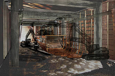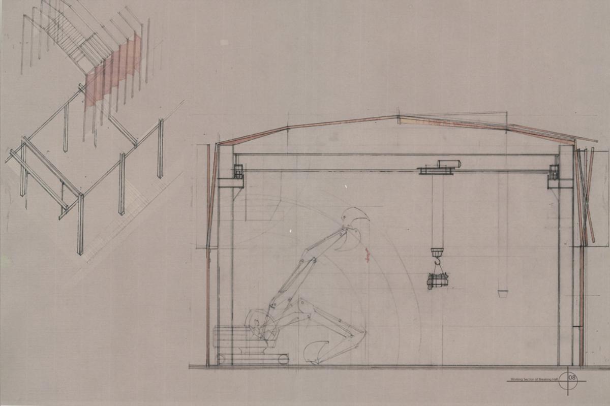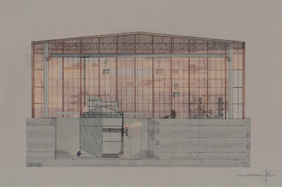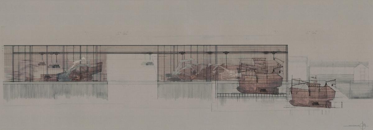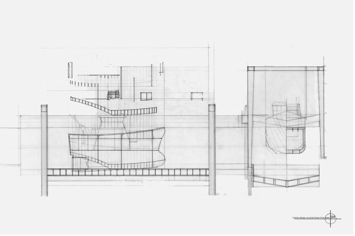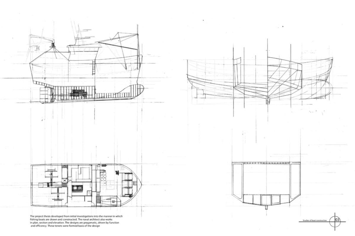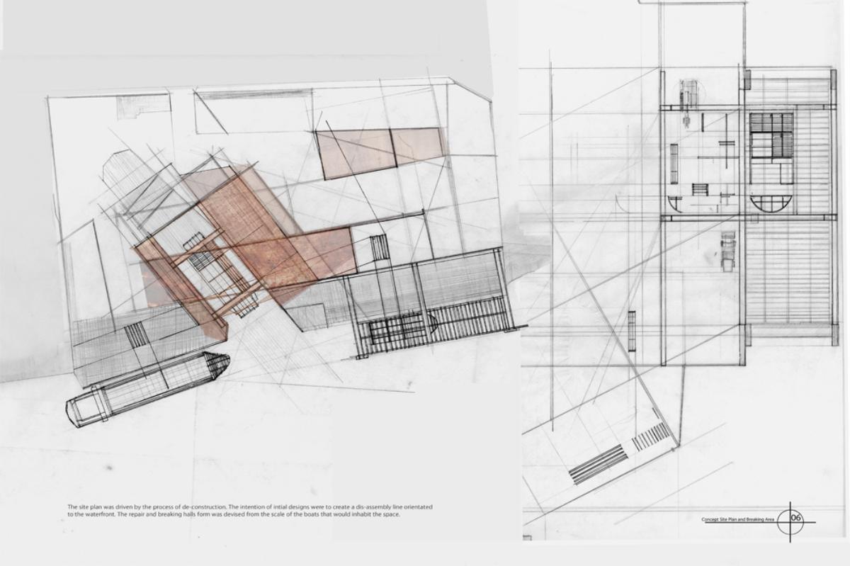 [Re] Process :The Breaking yard Part 1 Project 2012 David Concannon University College Cork | Ireland The proposal This project proposes the creation of a new industrial process within the post-industrial maritime city, the project investigates a facility designed for the breaking and repair of fishing vessels that have past beyond their usable life. There are currently 1378 registered fishing vessels in Ireland, taking into account un-registered boats this number may be as high as 5000. As the average life of these boats is 22 years and there are currently no ship breaking facilities in Ireland there is a clear need for a facility to recycle these boats. The architecture of the yard is devised from the process of de-construction, the journey of these boats from complex workings back to their raw materials. Its working nature and aesthetic quality are driven by the passage of time and decay that accompanies the death of these ships. The SiteCork is a city with a long maritime history. It is a city born from tidal marshes; its early survival was dependent on a symbiotic relationship with the water. In recent years the city has turned its back to the sea as its importance as a trading port has been usurped by the super ports of the container age. Its dockyards now stand idle; the site was chosen to retool part of the abandoned waterfront. The designThe architectural strategy of the yard was to re-engage the industrial process with the waterfront in a city that has turned its back on the water. The yard was designed to be defined by and articulate the process of de-construction that occurs within it. It is an efficient dis-assembly line exposing its inner workings. The boats are taken from the water and deconstructed by machines; their skeletal equipment removed, and their structure and skin sold for scrap or retooled as the skin of the breaking halls. The facade reflects and exposes the flow of the workings, the vessels being broken and repaired, creating the ever-changing, turbulent landscape within the site and the wider cityscape. Tutor(s) Dr Gary Boyd Paul Butler Lorenzo Cammoranesi