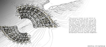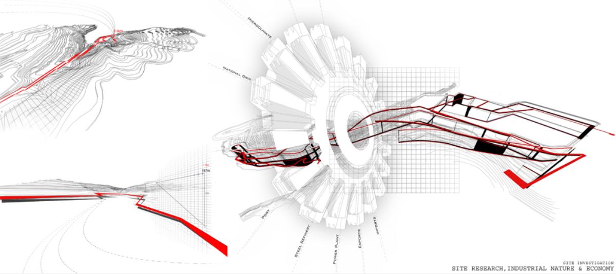 The project proposal is inspired by a site in Greece which is located on an industrial area of Thisvi, it includes a natural gas power plant a steel refinery and also an industrial port for exports and imports.