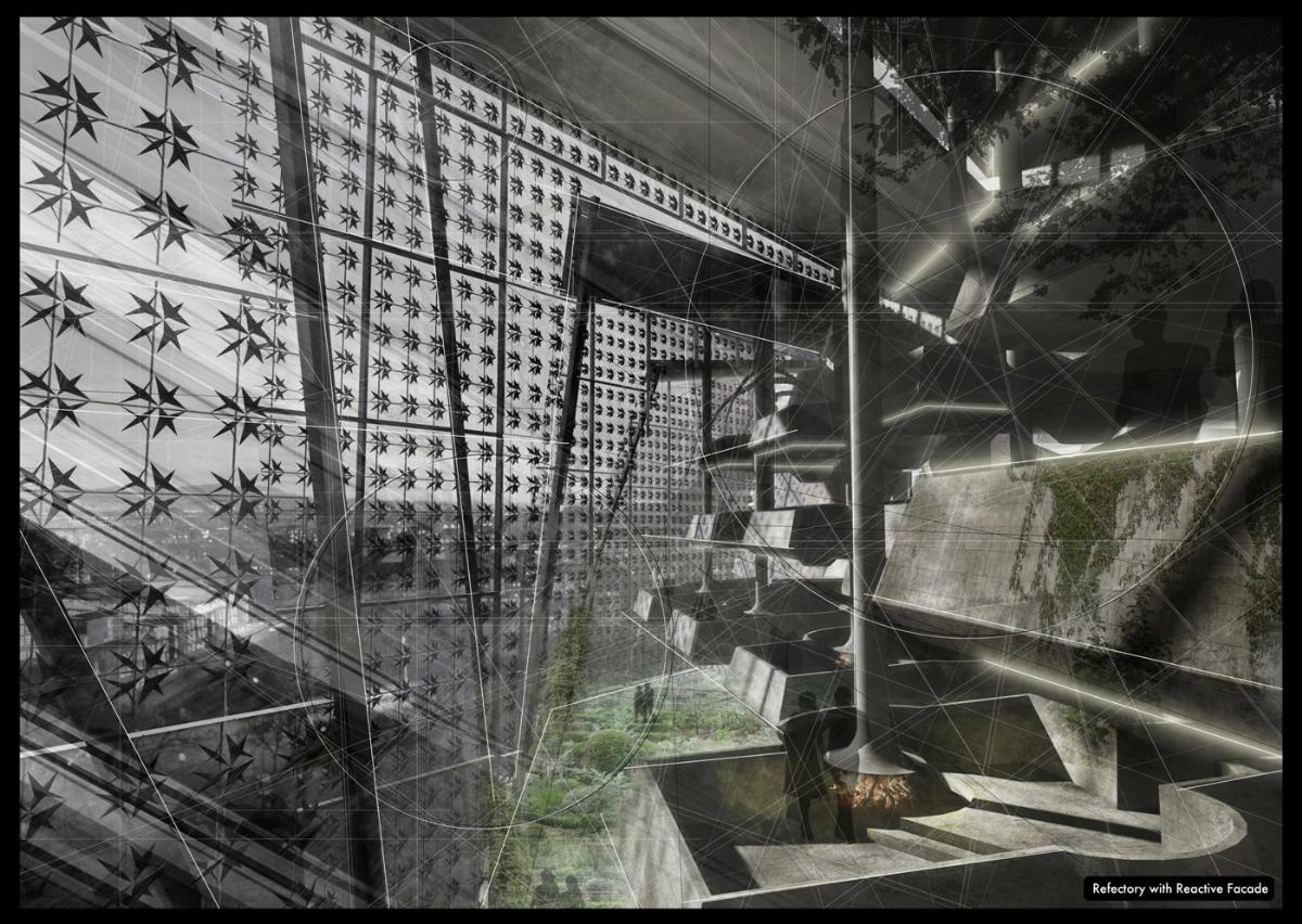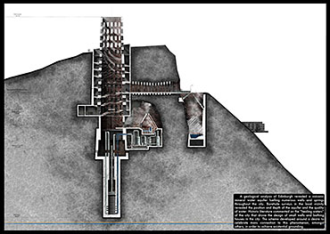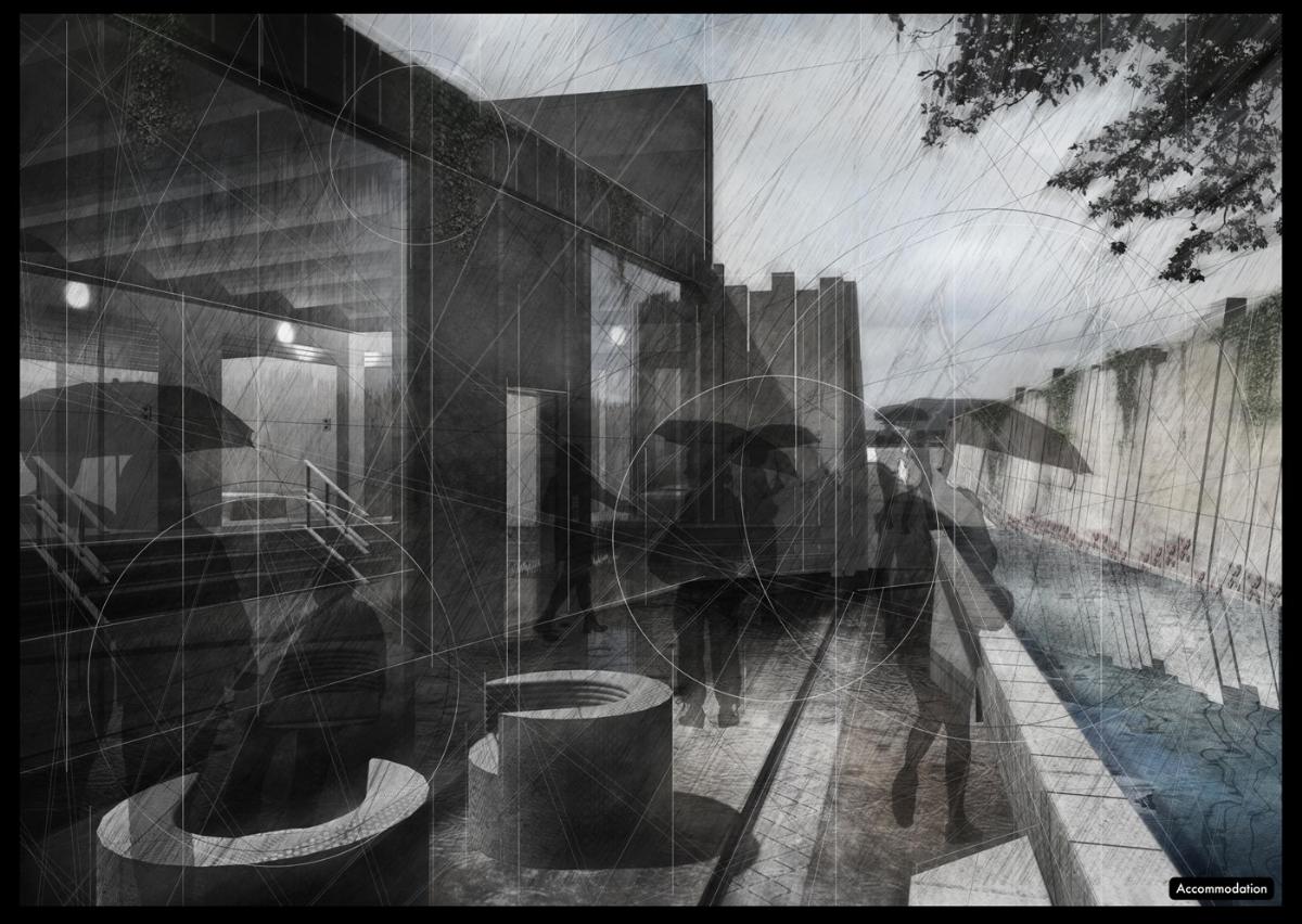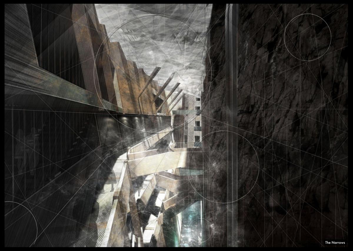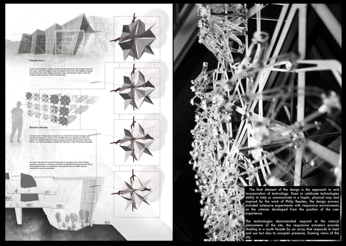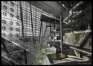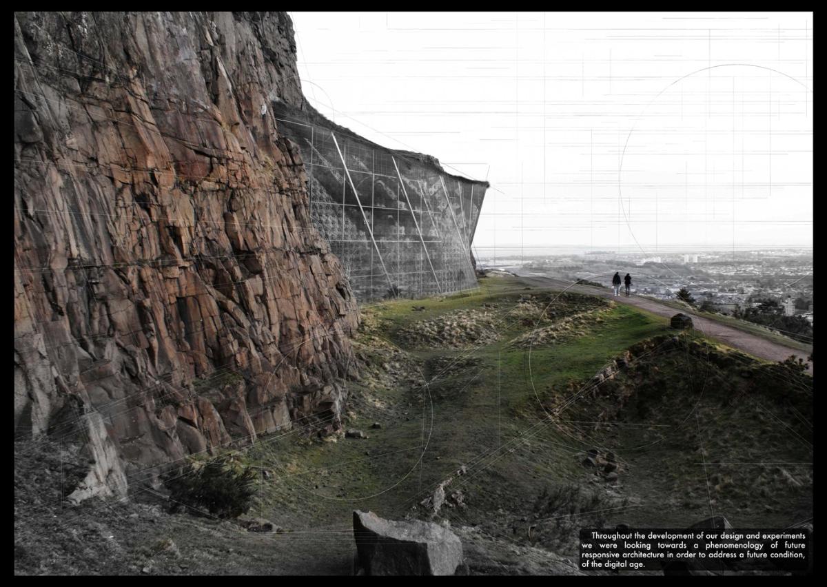 Digital Detox: A Retreat Typology. Part 2 Project 2012 Oliver O'NeillJames FosbrookAdam John University of Liverpool | UK Digital Detox is a project that explores the influence of digital technology on everyday life and the way in which reliance on digital media is set to influence human experience of people and place in the future.Set in 2032 in the Scottish capital of Edinburgh, the project bases itself on projections of urban life in the near future. The term ‘augmented existence’ describes how technology is set to become the mediator between ourselves and the world and people around us.The projects response to the pressures of this future digital saturation questioned the notion of ‘retreat’ in architecture and its potential in a near future scenario. Precedents including monasteries and Roman Thermae identified retreat as a cultural activity of the past and informed a proposal for a future typology.The scheme as presented houses a temporal community for individuals to engage in a digital detox. Re-engagement with the body and senses is central to the design of the retreat that centres on a subterranean mineral spa or Balneary.As opposed to a digital ‘blackout’, the retreat celebrates technology and its potential to enhance the physical experience of space via interactive environments that amplify the occupier’s connection to the elements, space and people around them. Tutor(s) Dr Richard Koeck