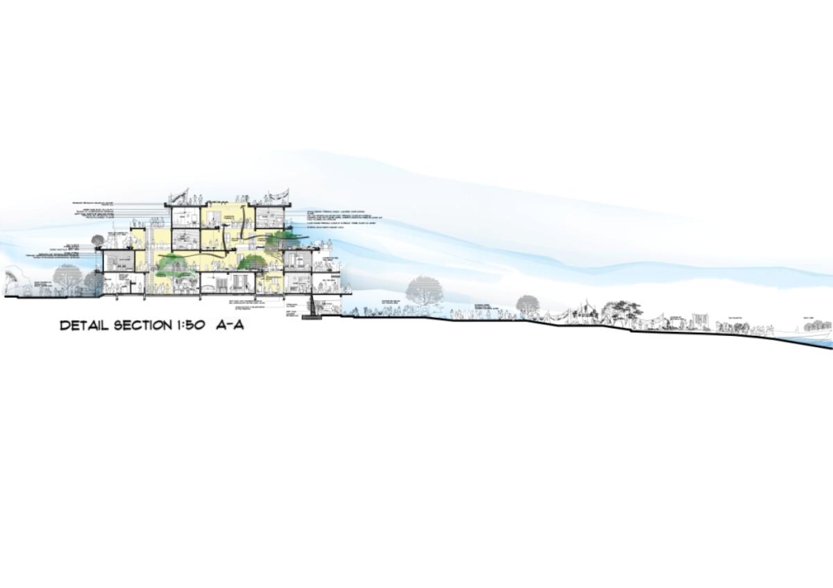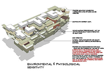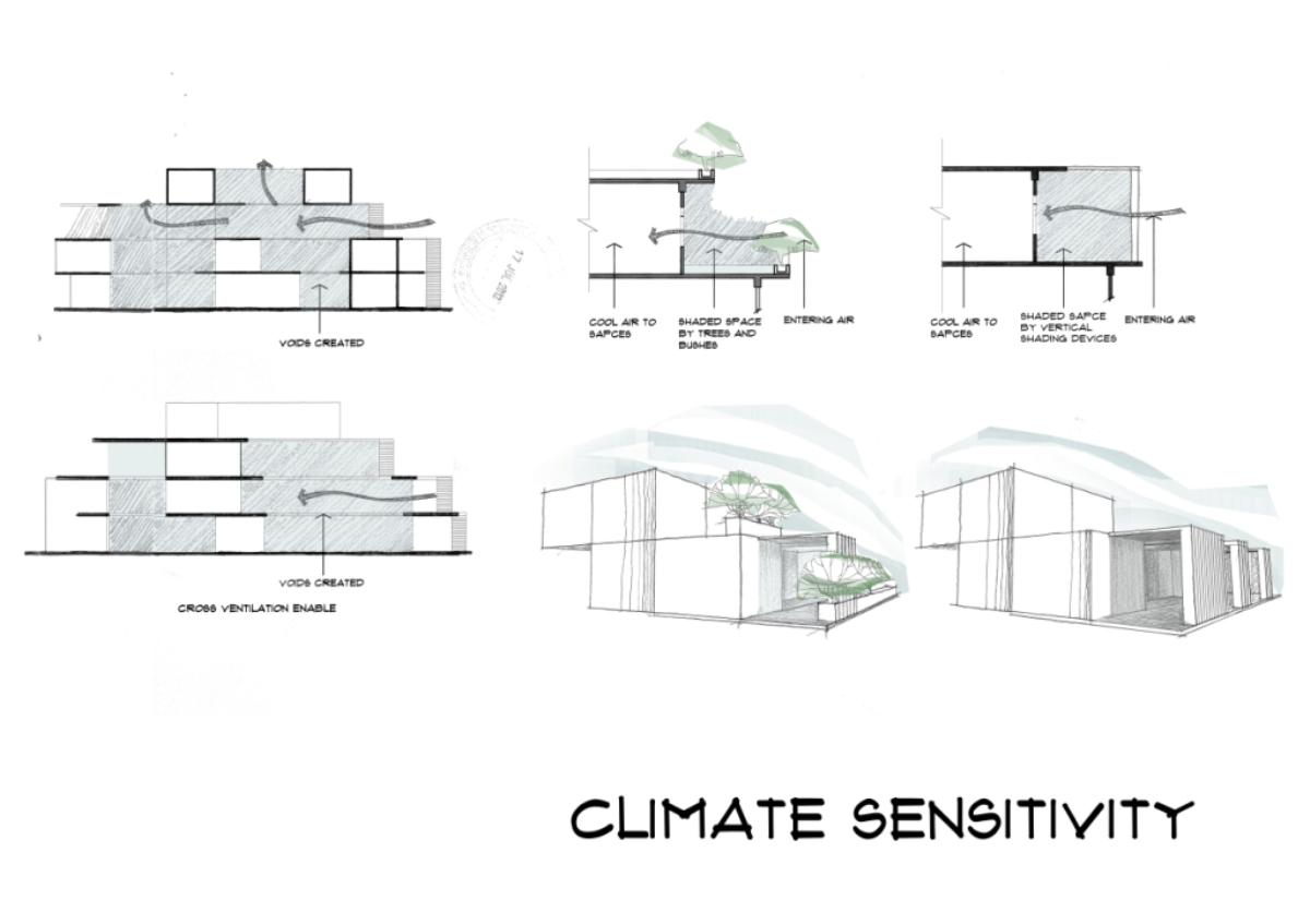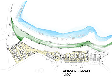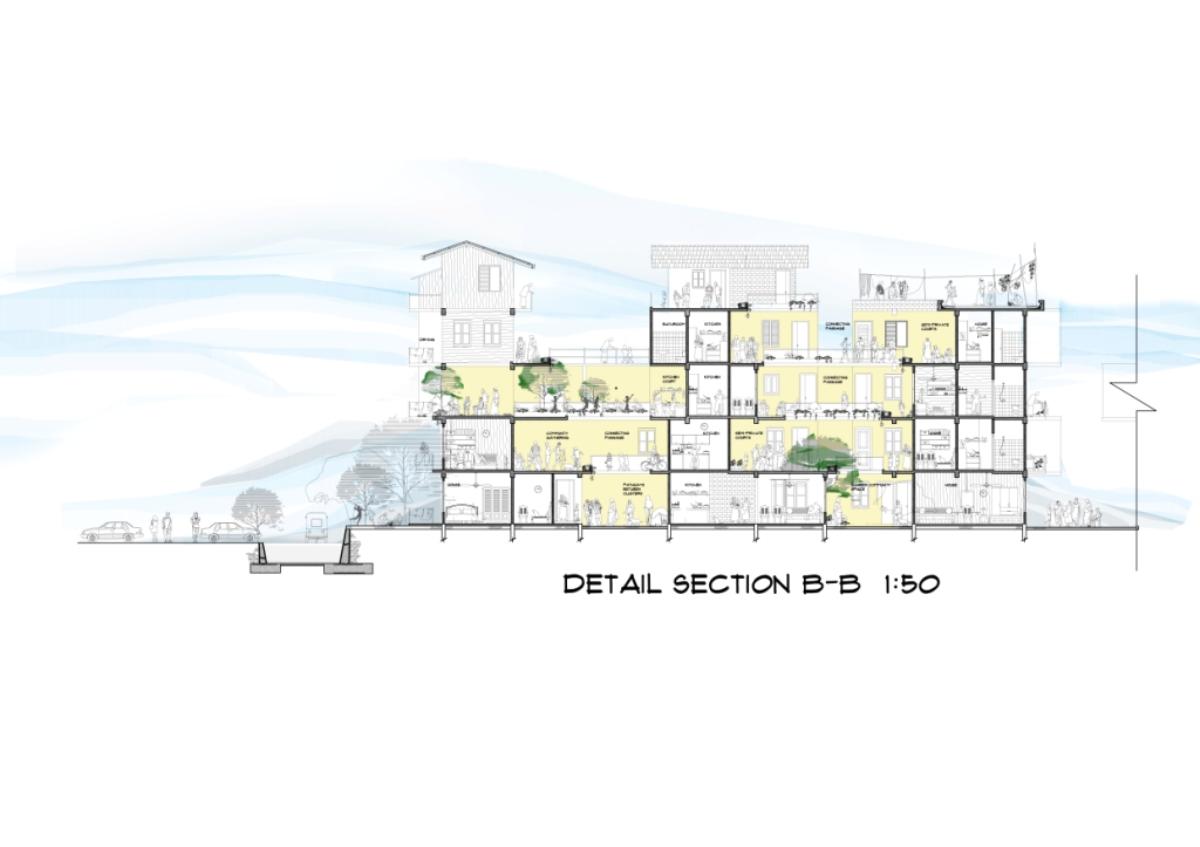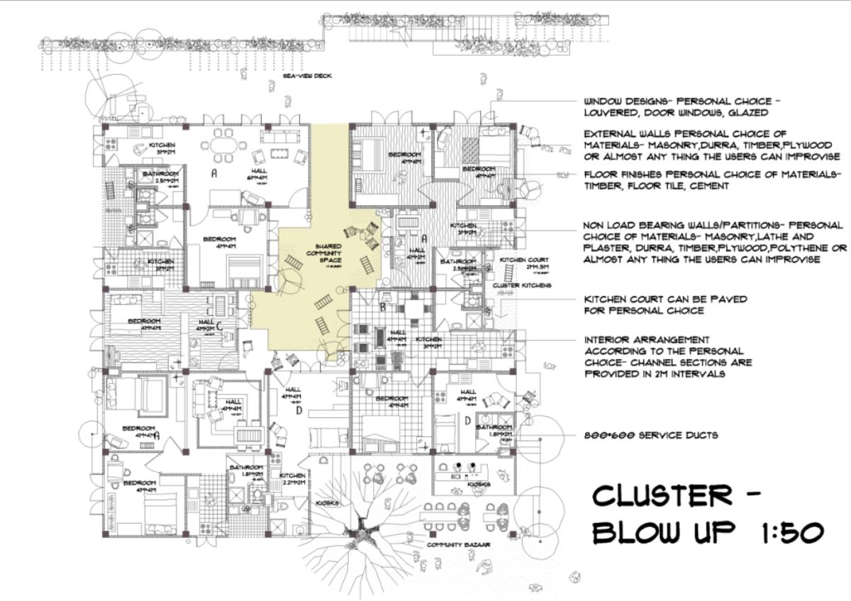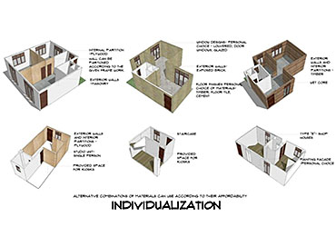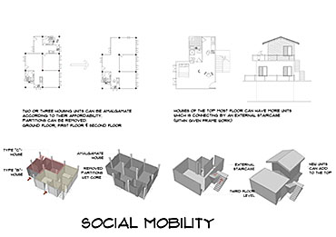 Community Housing Part 2 Project 2012 Chamika Jayarathne University of Moratuwa | Sri Lanka It has been revealed that about 40% of Colombo’s night population lives in under-served, low-income settlements. This project seeks to look at new architectural possibilities for the regional housing predicament by providing flexible, adaptable and incremental residential units for more than 180 squatter families living in a coastal urban edge.The main objective of the design is to provide a shared community pocket to support an interdependent community structure, while maintaining the individuality and ownership of the private housing units. The subsequent spatial design caters to the perceived activity patterns of the community as well as the need to introduce new activities to sustain the community’s future. The ability to personalize the interior and exterior to reflect one’s own individuality- without disrupting the housing environment as a whole - and the need to create a strong public realm have therefore been the key design parameters.The planning of the settlement is based on a network of clustered housing units and pedestrian pathways, linking the whole community together. A typical cluster consists of approximately 6 - 7 houses, opening out to a shared community space. The houses are informally organized around these organically-shaped community pockets, which provide the backdrop to community activities such as chatting, playing, entertaining, gardening and drying of clothes.These pockets enhance the interaction of the community and are the only "voids" in the otherwise tightly built up settlement. These planned – or ‘built-in’ - voids thus are the breathing spaces of the new community. The multi level nature of the building, however, required the ground-based community activities (voids) to be carried across to the upper levels to preserve the community identity and facilitate social interaction.The building as such is designed as three parts: (1) a structural skeleton with the associated provisions for wet services, (2) modular dwelling units to be incrementally inserted to the given structural frame, and (3) the ‘built-in voids’ organized around the dwelling units. The height of the building is limited to four storeys to achieve a walk-able building while complying with the nominal building density regulations proposed for this type of buildings. Tutor(s) Archt. N. Perera