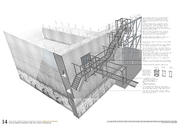 The project developed with constant reference to my projections and the car park's past, resulting in a dramatic architecture embedded within a fractured earthscape.