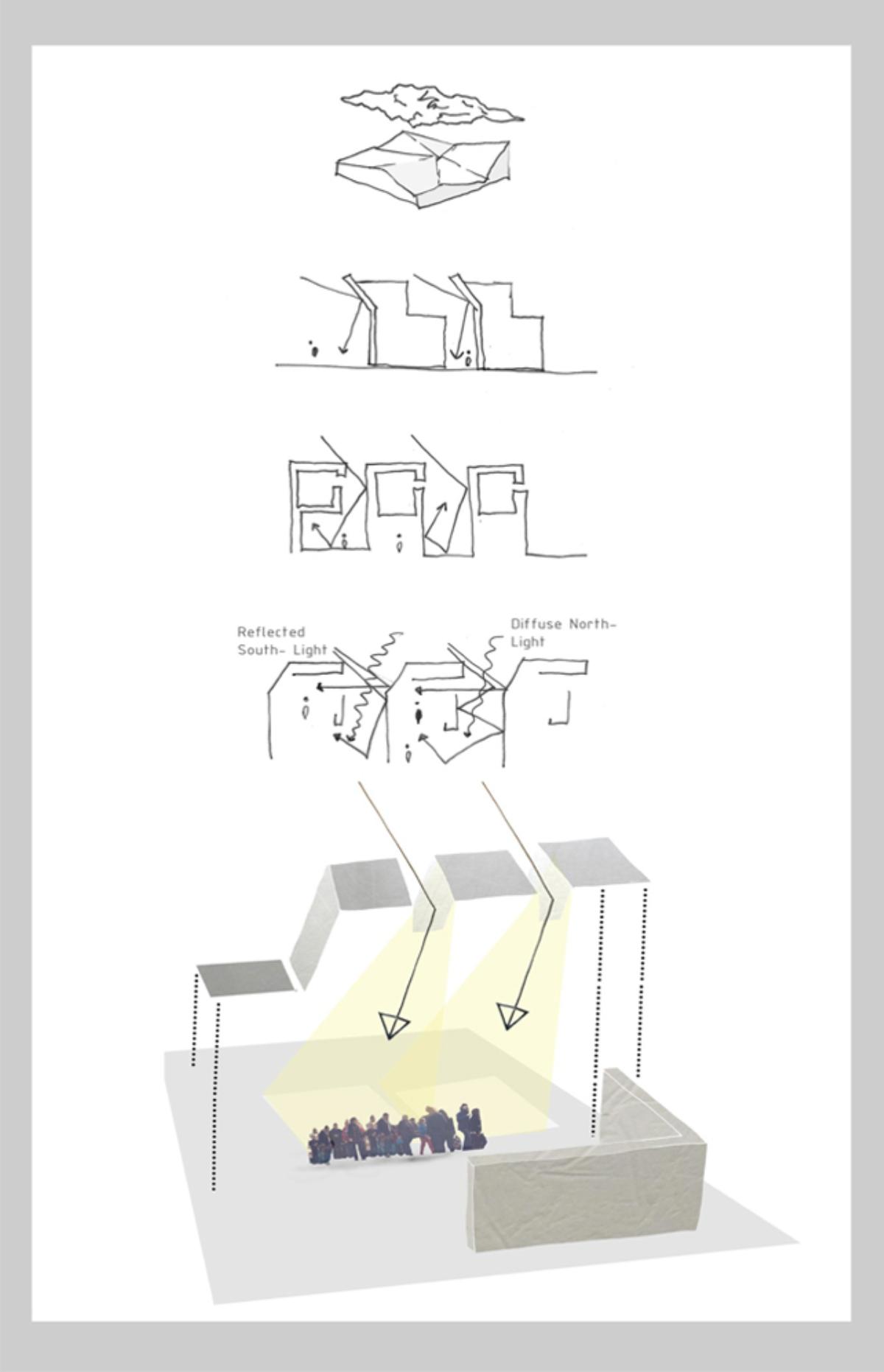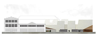 Its design generator was that of the fold, folding and adjusting surfaces to bring light into a building, but also folding in a less literal way to bring the street into the workshop and the workshop to the street, creating a more public building, and one embedded within the community