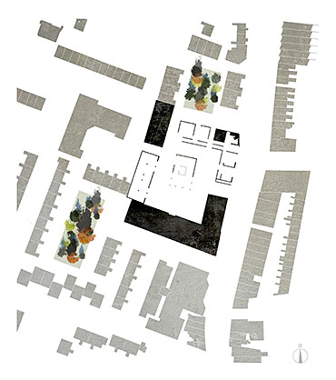The massing and layout of the separate elements of the scheme help shape and define surrounding urban spaces. By breaking the boundary created by the adjacent road a sequence of public urban spaces are made. Open to south light these spaces provide nodes of recreation along Sandy Row, with a central market space for congregation and exchange.