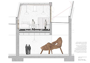 The Trade workshop is an extension of the proposed remodeling of Gilpin’s as a trade school. An array of different spaces for the creation and restoration of timber furniture, structures and products are provided in the hope that the existing culture of making can cultivated in this area of Belfast. The workshop will provide for those who require space for short-term purposes, visiting artists, students, as well as those local crafts people who would not be able to own or rent a commercial unit of their own.
