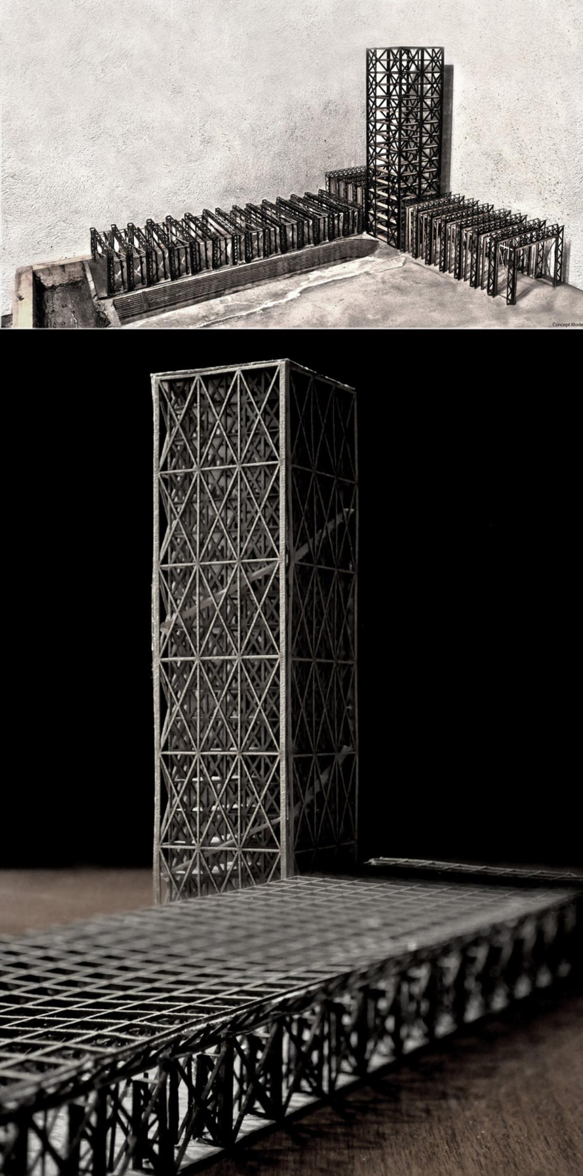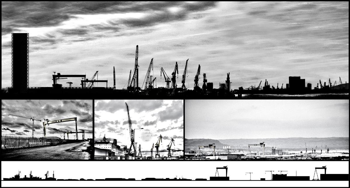 Marking the Belfast Skyline. A Cable Factory Part 2 Project 2012 Mark Winnington Queen's University Belfast | UK Over the past 125 years Belfast Harbour has witnessed rapid progress, success and decline in ship building. This has constantly shaped and reformed the water’s edge witnessed by the creation of docks branching from the Victoria channel into Belfast’s largest man-made land, land which has hosted the frequent erection and dismantling of structures sitting on its ground plane. Within this utilitarian environment the Harbour Estate acts like a workshop, the land acts nothing more than an efficiently made flat work bench and the docks act like vices reshaping the work bench. The tools used to build anything require this flat land or 'a bench' to work on. This thesis focuses on how these objects or 'tools' sit on the flat work bench of Belfast's man made site, their relationship with the skyline and back down to the ground plane, expressing both structure and space through the utilitarian architecture of a cable factory. Tutor(s) Andrew Clancy