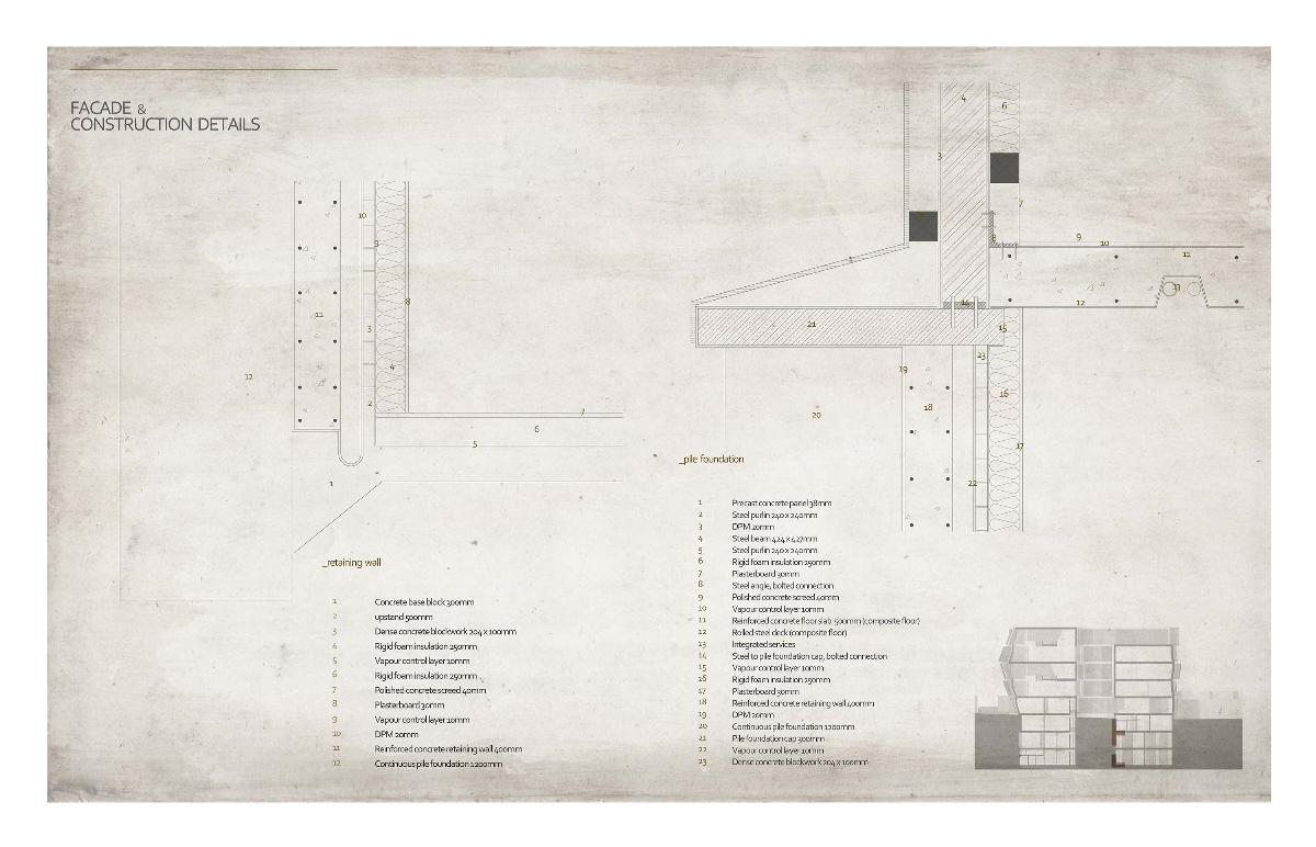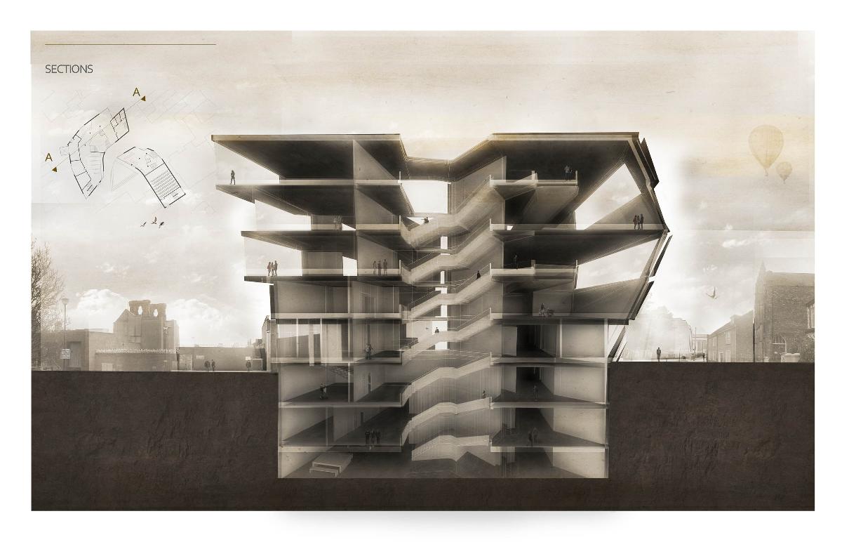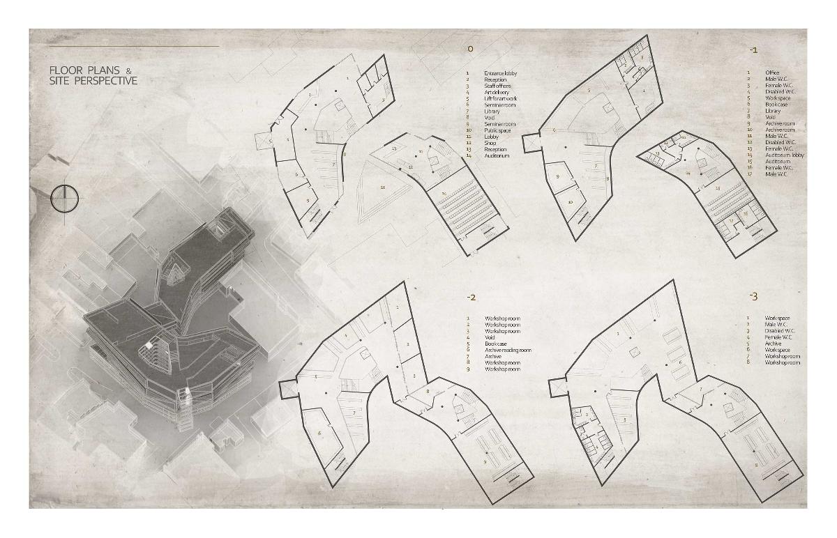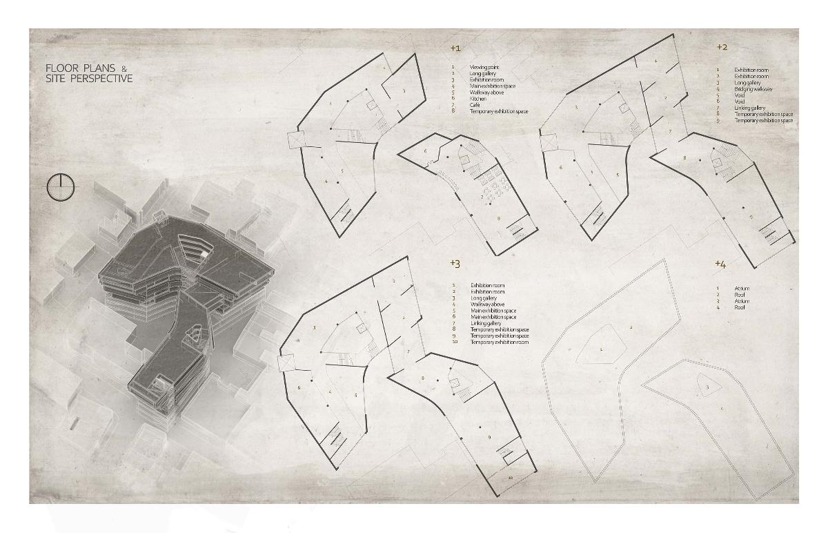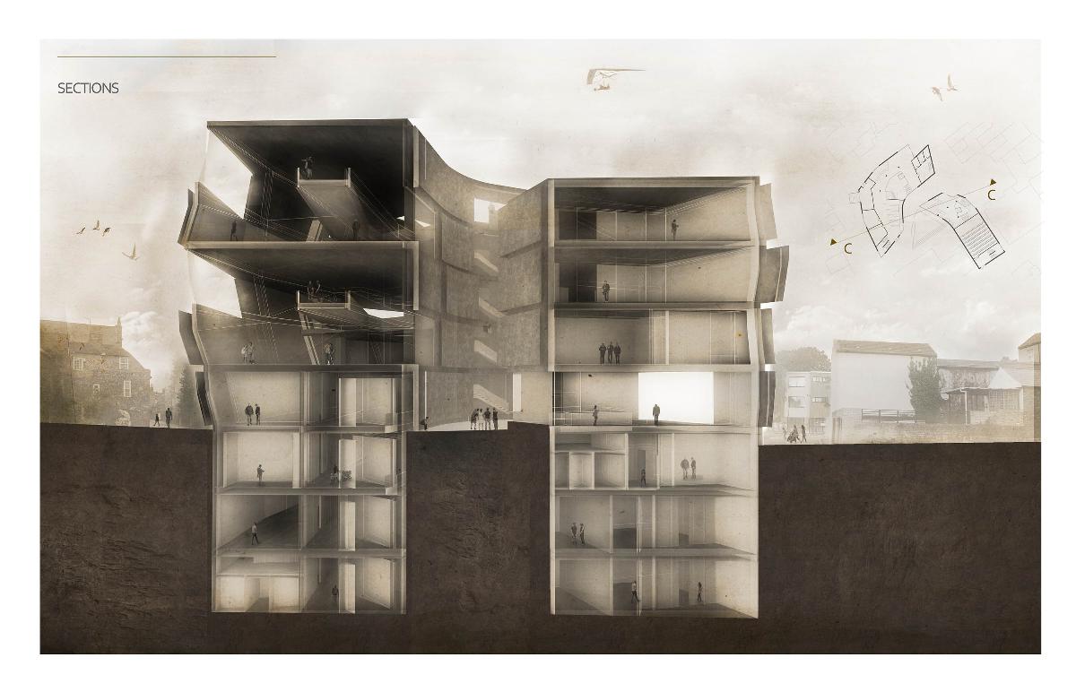 Museum of Architectural History, Ramsgate Part 1 Project 2012 Oliver Treves University of Kent | UK The project invites the design of a museum of architectural history, to house the architectural casts currently on display in the Victoria and Albert Museum. The site is located in the town of Ramsgate, on the North Kent coast, occupying a rectilinear area of approximately 1,800m², which sits adjacent to the town high street, surrounded by a mixture of residential, commercial and public buildings.Ramsgate was one of the great sea bathing towns of the 19th Century, and adopted classical revival Regency architecture in the form of terraces and crescents, like many of the other prosperous costal towns of the period. During the 1840’s, the gothic revival architect AWN Pugin who had previously lived in the town, built a house, ‘The Grange’, on the West Cliff. Shortly after constructing an adjoining church, St. Agustine’s, Pugin’s new ideas about domestic and ecclesiastical architecture spread throughout Britain and beyond. The new museum is intended to be a regenerative cultural centre in the heart of the town, where the narrative of the main exhibition charts the architectural history of Ramsgate, from the classical revival to the gothic revival. The casts from the Victoria and Albert Museum provide a reference to original classical and gothic architecture, which in turn provided the inspiration for the developing architectural language in 19th Century Ramsgate. The transformative narrative of the museum is further explored in the buildings’ response to context. Prescribed views out of the high-level gallery spaces to key historical ‘nodes’ in the wider landscape, such as The Royal Harbour and St. Augustine’s church, offer visual references to the buildings which are significant in the architectural story of Ramsgate. As well as the main gallery space, appealing to tourists and visitors, the building programme is primarily community focused. A library, auditorium, seminar rooms, workshops and a temporary exhibition space are all intended to be engaging for the wider public, in an educational environment. Tutor(s) Dr. Timothy Brittain-Catlin