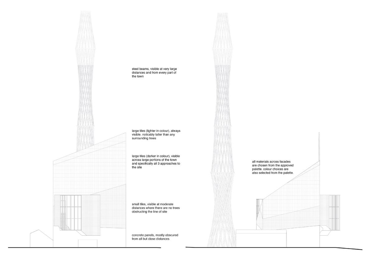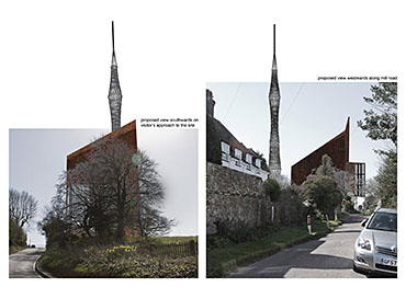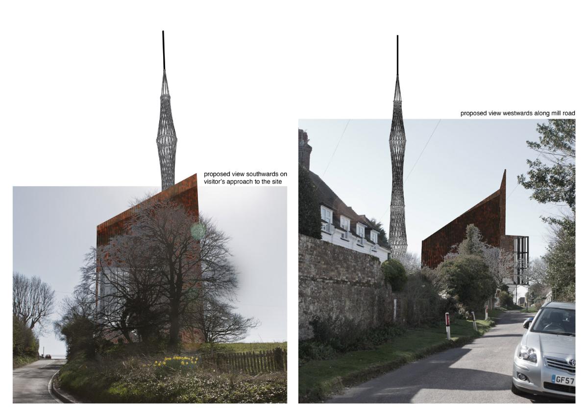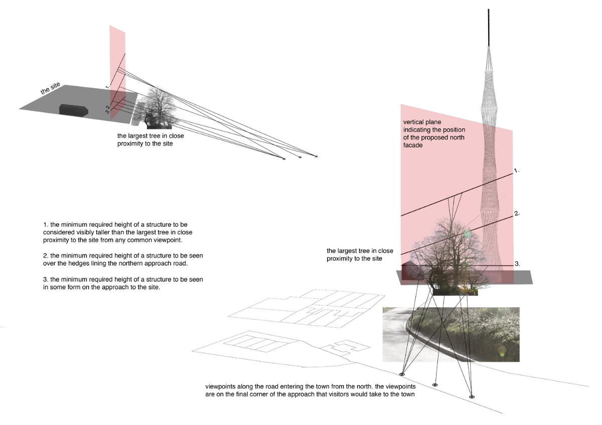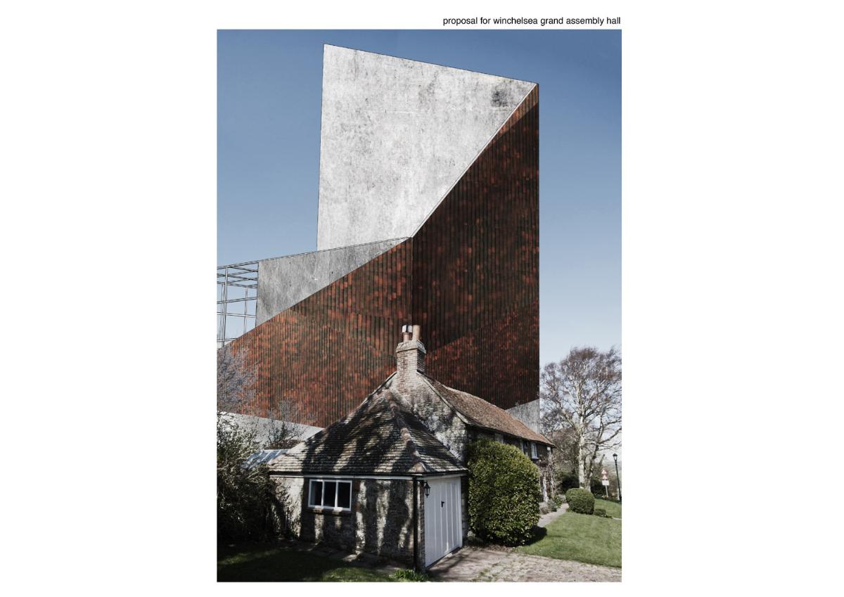 Winchelsea Grand Assembly Hall and Radio Tower Part 1 Project 2012 Max Langran University of Brighton | UK Winchelsea was founded as a new town on its present site in the 13th century following Old Winchelsea’s cataclysmic descent into the sea. The new town retained its old strategic importance and prominence within the Confederation of Cinque Ports but its prosperity later waned with the silting of its natural harbor. It is now little more than a quiet village marooned on a hill above the low-lying Romney Marsh. The project is set in the year 2062, when I have decided Winchelsea has become a tightly controlled police state, independent from any external government. The town is run in a dictatorial manner with freedom of expression being limited and architectural merit being decided by the regime. The regime is oppressive, suppressing individualism, and is paranoid of plots against its power and of external influence on the town. This has bred an introverted society whose traits have become exaggerated over time. The ultra-conservative, conformist attitude stems from the current desire in the town to keep things exactly as they are and not try any alternative. This balances with the inverse, the objective of announcing the regime's superiority to a wide audience by making major visual statements.The proposal explores Winchelsea on a monumental scale, translating the small town atmosphere and applying it to a regime attempting to function in the manner of much larger governments, despite Winchelsea being a micro-state. Through the wish for everyone to conform, the carefully protected character of the town has developed into an exaggerated version of the current one, with each conservation criteria being taken to the nth degree whilst simultaneously being applied to grand architectural gestures of power. The regime is very conscious of how it presents itself and therefore propaganda is a major element of this new society. The state exercises a great deal of control over the residents and the physical attributes of the town. Tutor(s) Alex Arestis Ben Sweeting