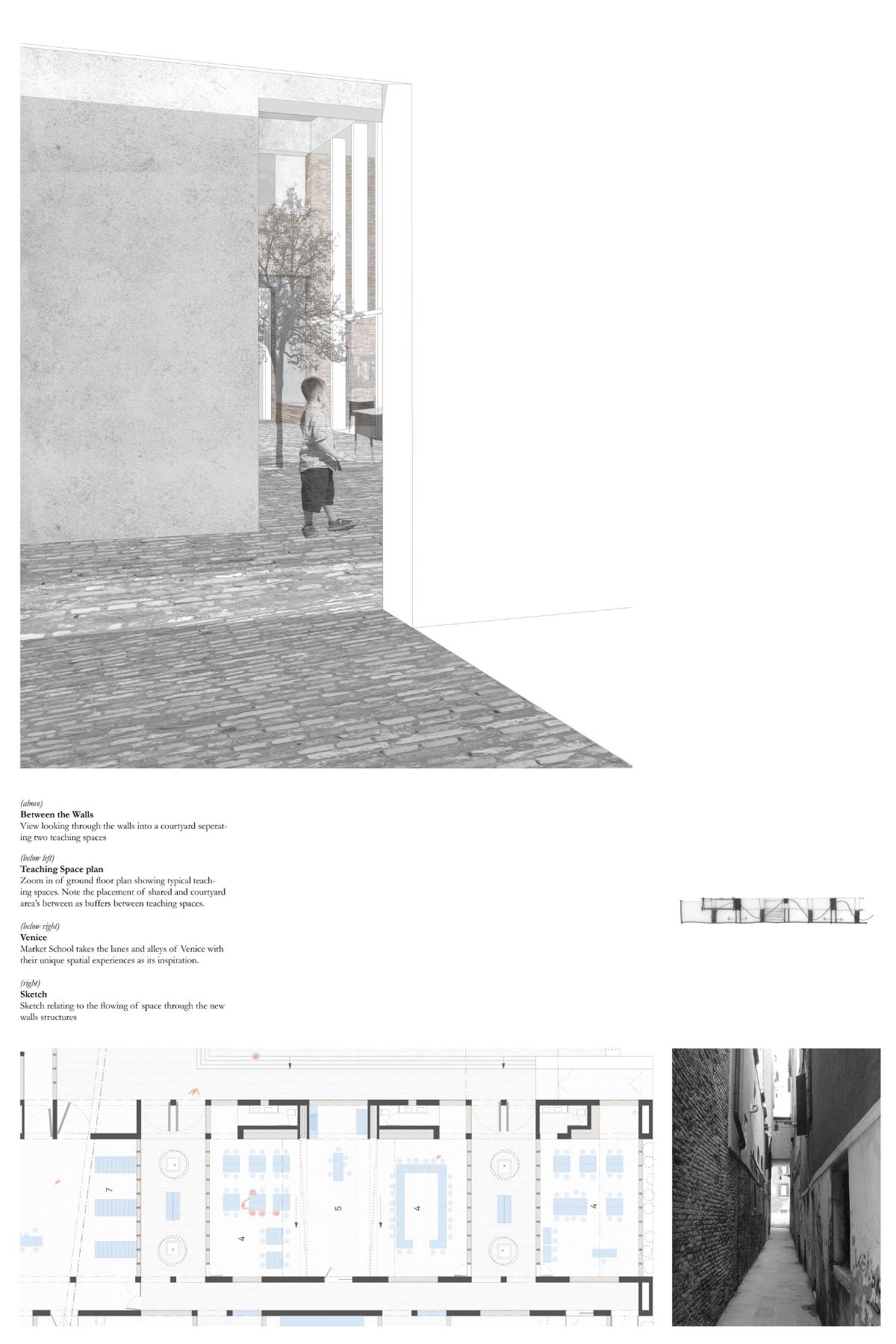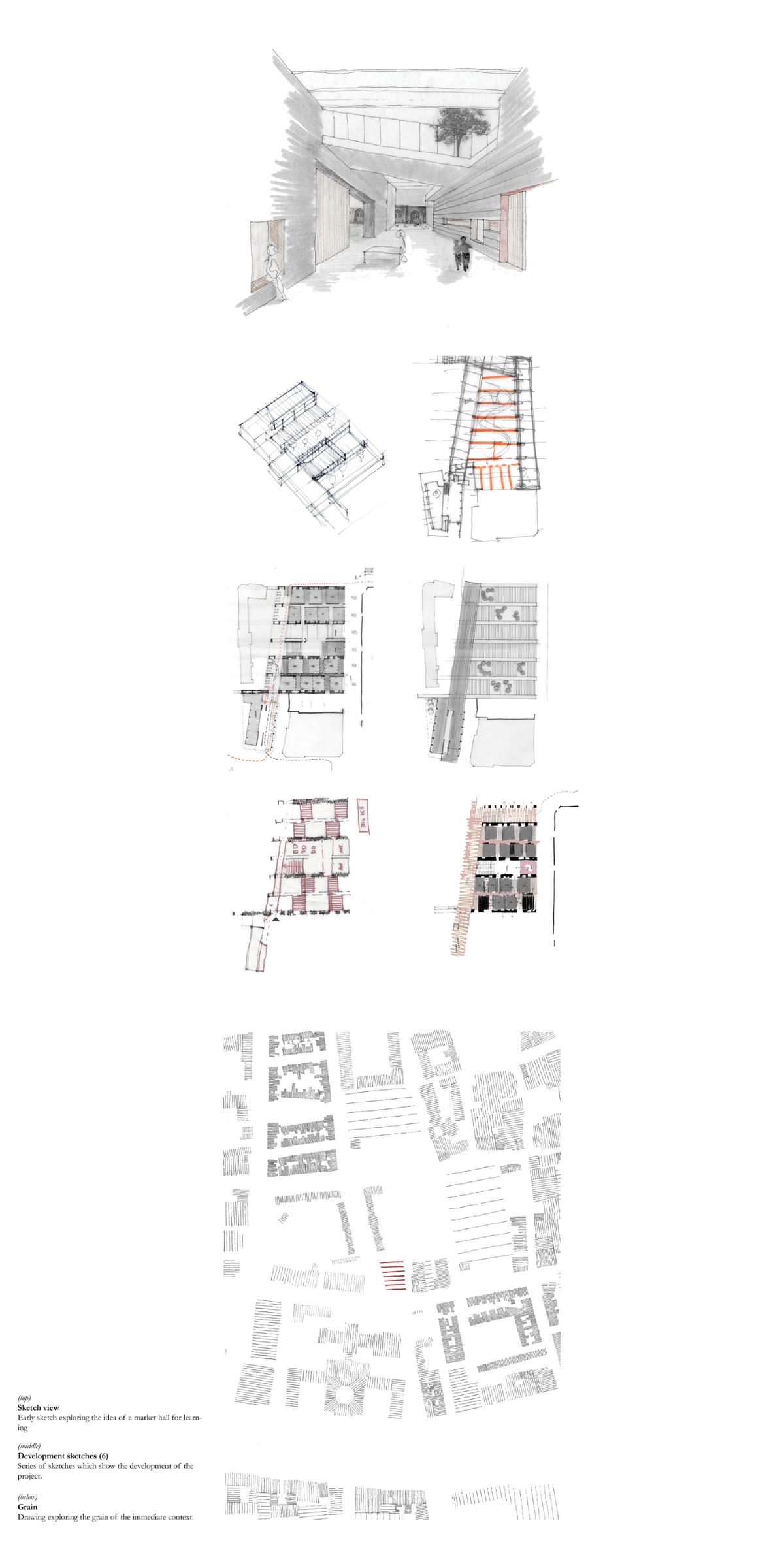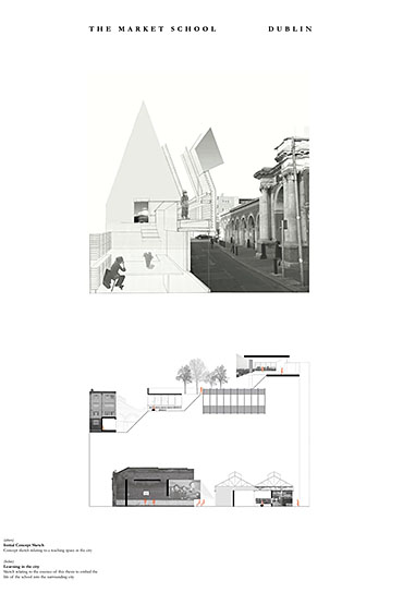 This thesis deals with the tension created between an abandoned existing structure, the memory of a market building and the grain of an existing context. Structure becomes the dominant theme informing the creation of flexible and adaptable learning spaces which respond to both the scale of the person and scale of the city.