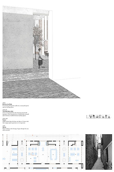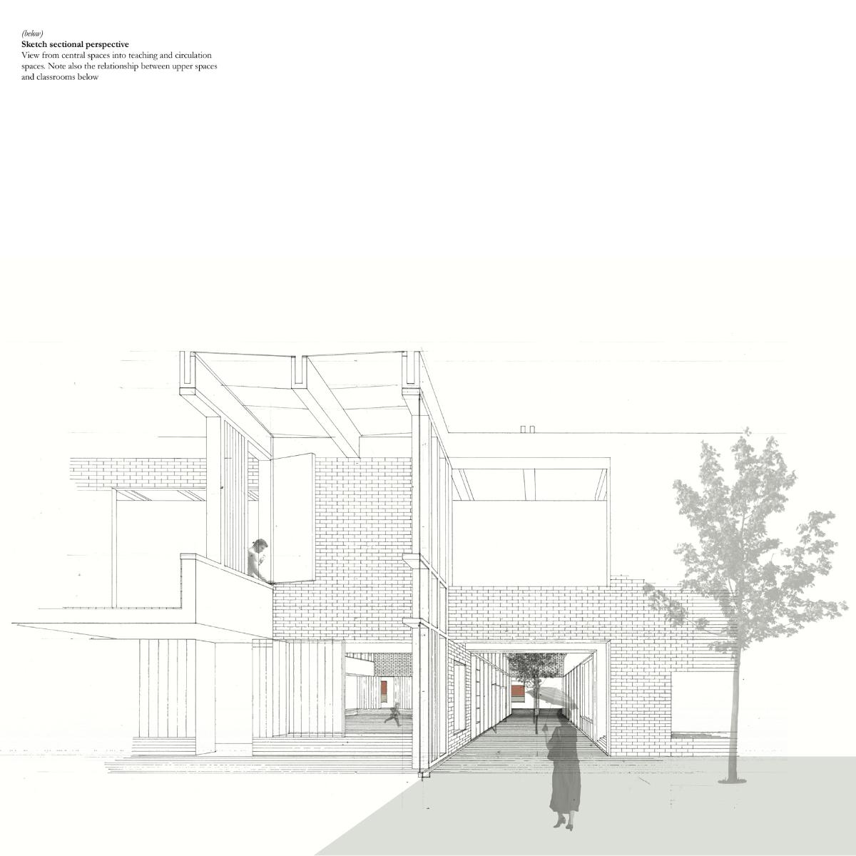 Be it a house, market or school, what is crucial in any design is its negotiation on a number of scales. From the macro or city/landscape scale, to the micro or detail/material scale. This could be called a ‘dialogue’ and happens on multiple levels relating to city, building, material and inhabitants. This ‘dialogue’ is particularly relevant in the design of a school as inhabitants engage with and adapt to the building; as mentioned previously, it is a facilitator for learning.
