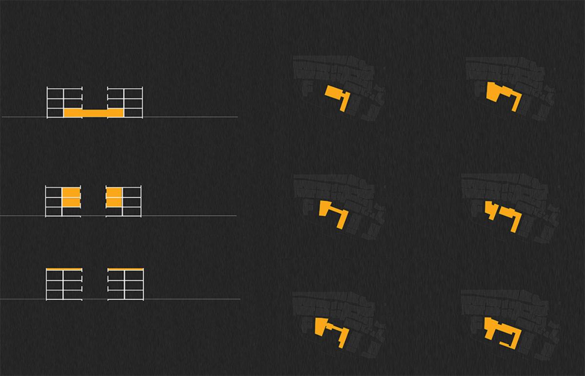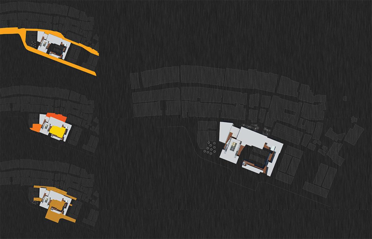 The Concept of the Cheung Chau Community Center revolves around the idea of an ‘Interlocking Urban Fabrics’. The project began in the investigation of the ‘Urban Fabrics’ of the Cheung Chau island, a total of four types of fabrics were classified, they are: Linear, Linear Cluster, Clustered and Scattered. Each fabric in fact suggests different kinds of life style within the small town. For example, Linear fabrics consisted of buildings that open up its ground floor as a permeable shop space, a buy and sell relationship between Cheung Chau locals and tourists. In contrast to this merchandized fabric is the scattered fabrics, where unorganized settlements sits on mountain sides, a place of higher privacy and local resident user oriented. After such studies, one could ask, what happens at the edges of these fabric types? Such condition existed at site of the design; it is a site where the locals meet the tourists, where one understands other’s lifestyle through their eyes, where the fabrics ‘interlock’. The form of the design responds to its context sensitively, for example, three distinguishing open spaces were designed as part of the entrance to the building, the programs of each plaza evolves from the nearby fabric typology. Plazas such as: Outdoor local delicacy eating plaza (located at seaside restaurants), Market plazas (located at shop house fabrics area) and communal plaza (located at the embracing center of building). The form of the building encourages ‘visual permeability’ throughout visitor’s journey, by maintaining a visual connection in-between different program space. The programs within the building involves activities of both locals and visitors, by having such high visual permeability inside the building, the relationship between the two bodies becomes more ‘interlocked’, not just a merchandized relationship. The central communal plaza, attempts to push this concept further. The architecture itself wraps around the communal plaza, providing both viewing decks as well as openings, acting like the seats of the auditorium. Rentable by the public, both local and foreign festivities, ceremonies, game shows, for once can now be enjoyed under the same roof, improving visitor’s exposure to one another’s life style.