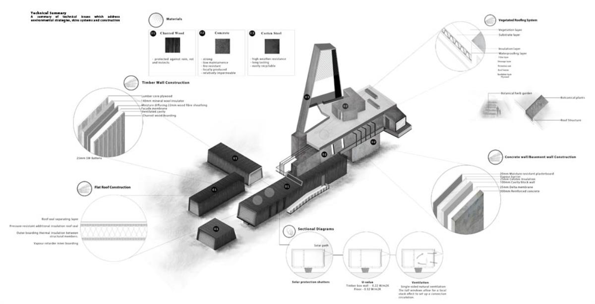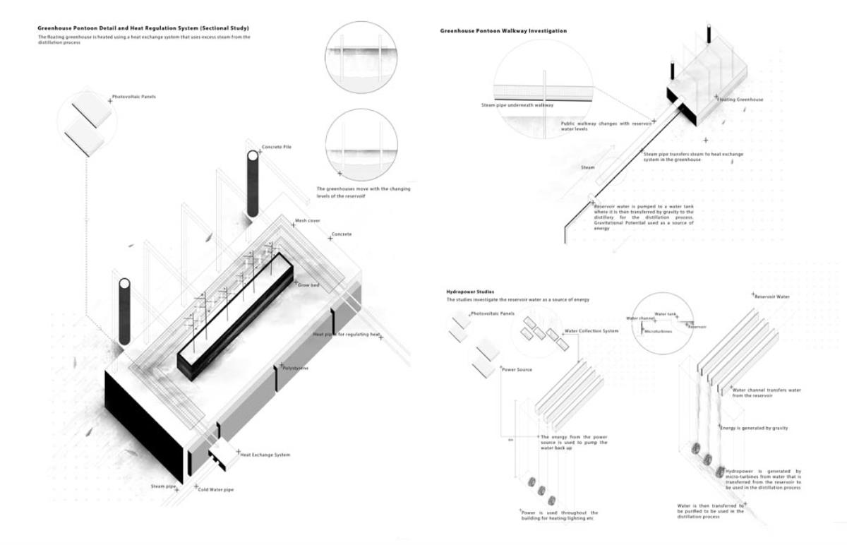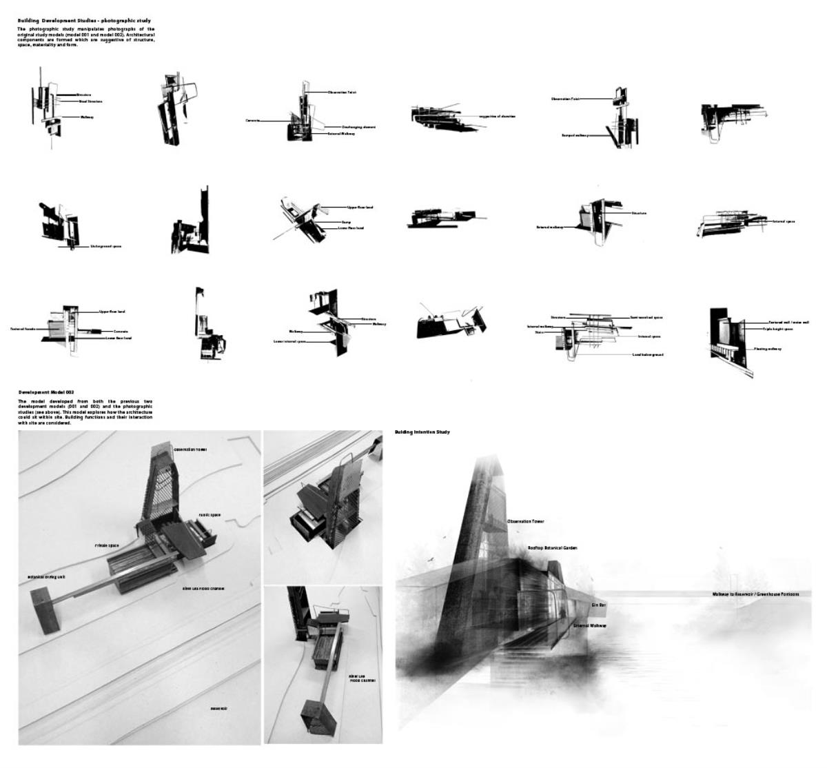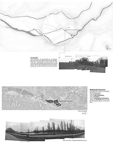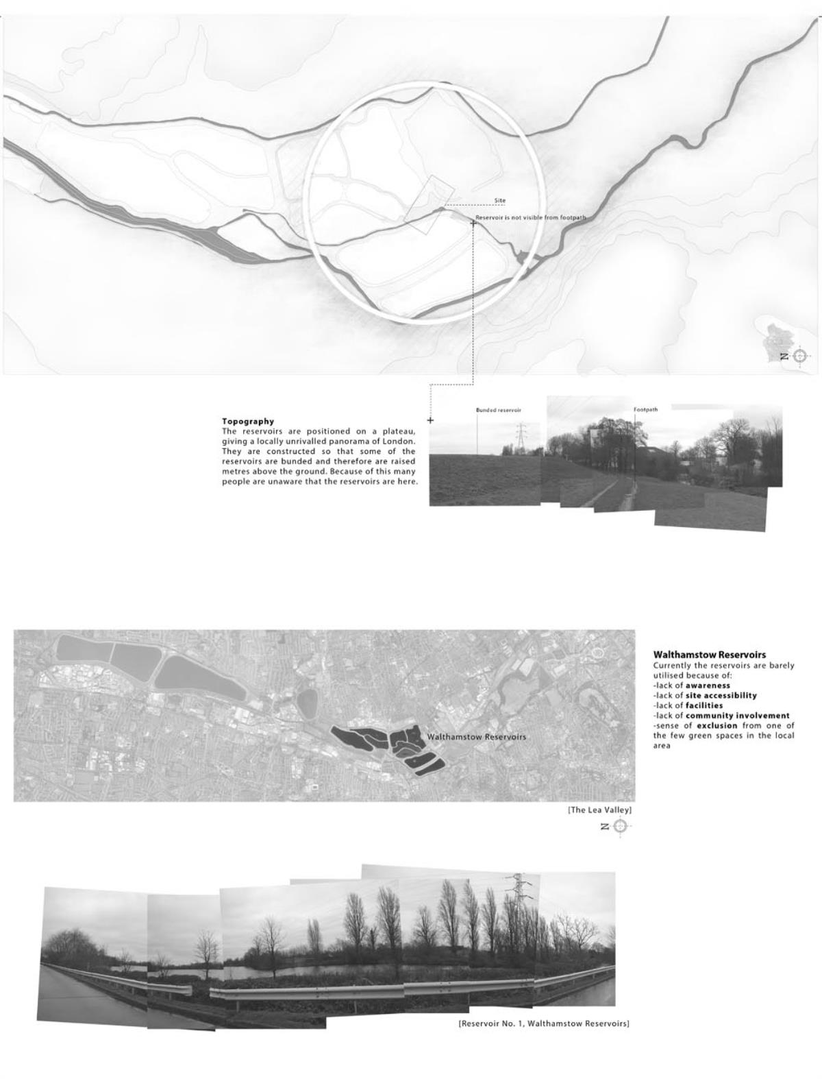 The Lea Valley Gin Distillery Part 1 Project 2013 Clare Hawes University of Lincoln Lincoln | UK The project is a response to an initial study of the Lea Valley, one of Europe’s largest regeneration sites. The rigorous study offered an insight into the role that the Lea Valley has played as a powerhouse of industrial innovation and in the supply of energy, water and goods to support the growth of London. The project proposal aims to reclaim some of the Lea Valley’s original spirit for invention, innovation and manufacture through re-engaging with past and present uses of the site.The brief for the design project is a Gin Distillery situated by the Warwick reservoirs of the Lea Valley. The project builds upon the reservoirs as a principal source of water supply, a striking waterscape and an important industrial landscape. The synergy of site and process were integral to the design process, and informed the architectural language of the proposal.The project seeks to reintroduce gin distilling, a historically important industry as a catalyst for regeneration for an area that is socially deprived and has limited access to quality green space. The scheme comprises a facility for the growth of botanicals for the gin, the distillation of gin, a bottling hall and a gin palace. It also has a viewing tower, which provides an unrivalled panoramic view of London. The project seeks to eliminate the severance between people and landscape that exists in the valley. There is a lack of awareness about the Walthamstow reservoirs and their accessibility; many people are uninformed of the facilities available and the diversity of species that inhabit the area. It is intended that the unique landscape will become a valued part of life for local people and a popular regional destination so the site can be utilised to its potential and enhance the unique identity of the area. Tutor(s) James Dale John Napier