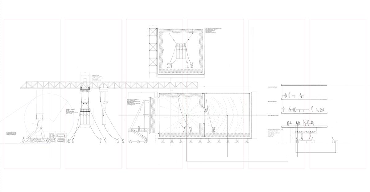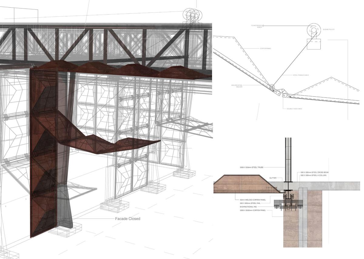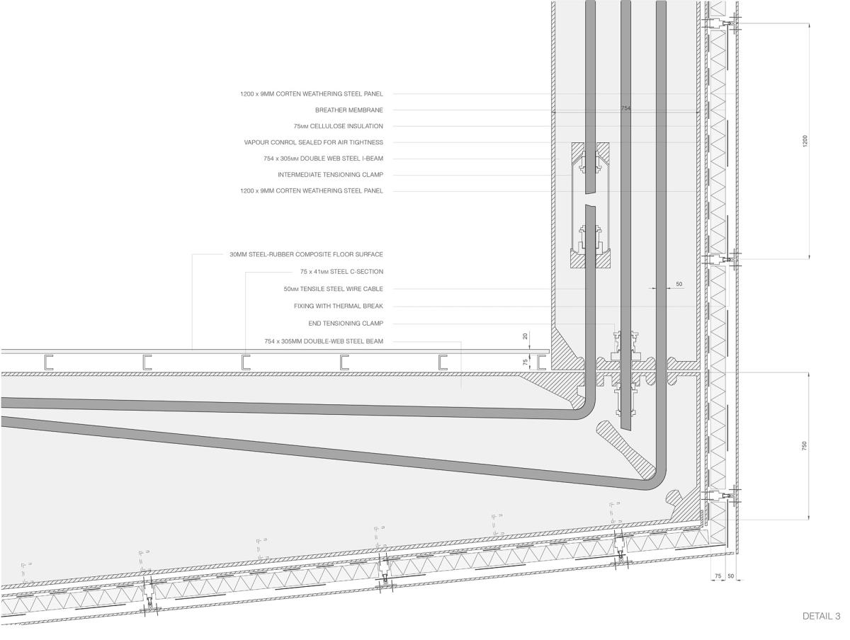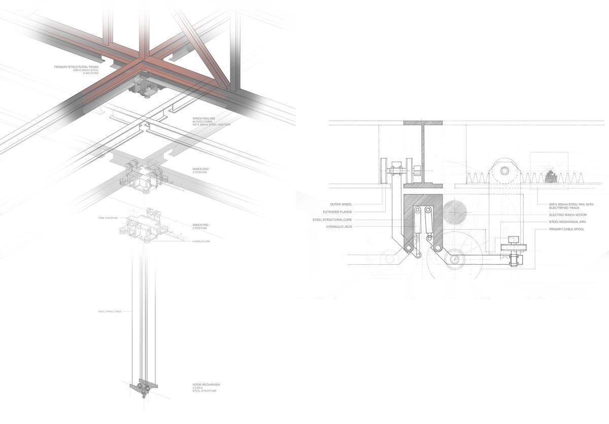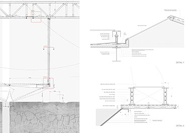 Crucible: Ballybeg Testing Centre Part 1 Project 2013 Kieran Cremin University College Cork | Ireland This project stems from the shift in the Irish economy from one of manufacturing to one of research and development. Surfacing from an exploration into the industrial process of grain handling in the South Docks of Cork City, an attitude of experimentation and testing was cultivated through a series of investigations into the technology associated with the Building Research Establishment.Through its articulation of the testing of building components, Ballybeg Testing Centre aspires to be a beacon in the re-identification of Irish industrial development. The centre sanctifies the act of testing and technological precision in its expression; in the hope of refocusing the construction industry on the need for craftsmanship and care in the wake of a boom of shoddy building fabrication.Setting itself in a disused quarry near Buttevant, County Cork, the project pays homage to a tradition of construction while aiming to reinvigorate a landscape of limestone cliffs and excess water contaminated from past activity. The initial response creates a ceiling over the three existing limestone elevations and forms a protective enclosure around the testing being performed within. The built form floats above this manmade hollow in the landscape touching only the top of the quarry walls with careful articulation while any interior elements are suspended from the spanning girders. This steel web serves as the primary functional element for all activities taking place within the facility.The project speculates as to the possibilities of future economic development while laying a marker on past failures. Its processes aim to celebrate the cultivation of a well built environment; exalting high building standards as something that is both aspired to and achieved within this crucible of steel and stone. Tutor(s) Dr Gary Boyd Paul Butler Lorenzo Cammoranesi