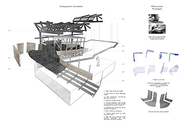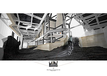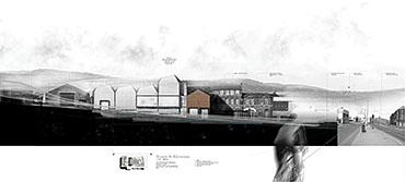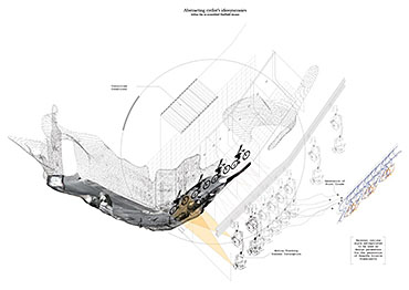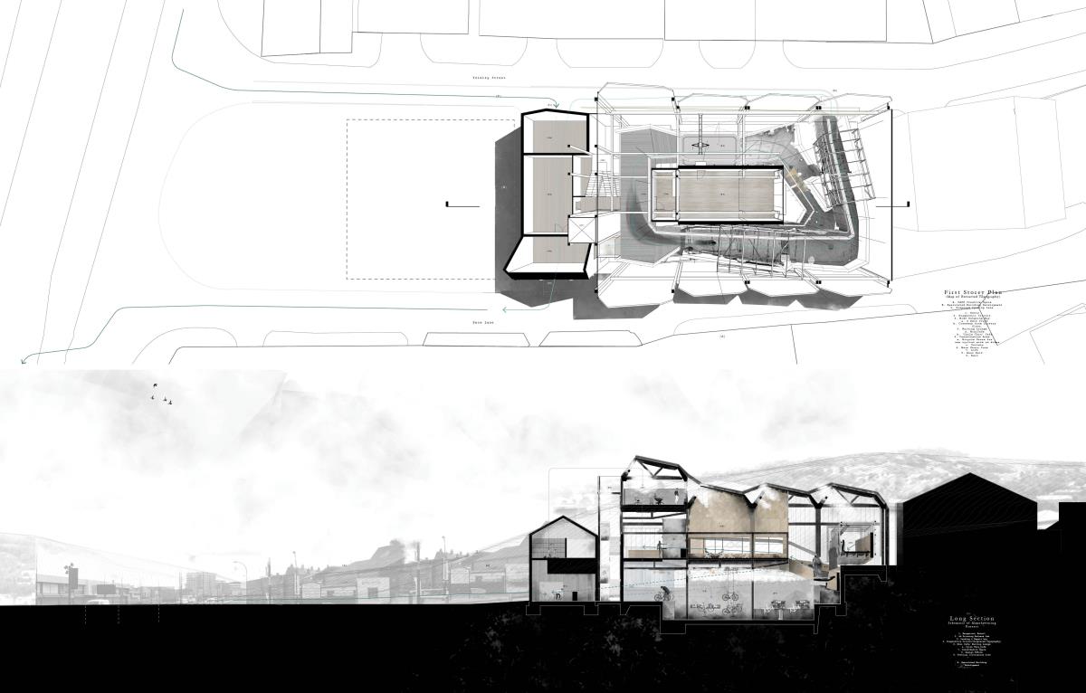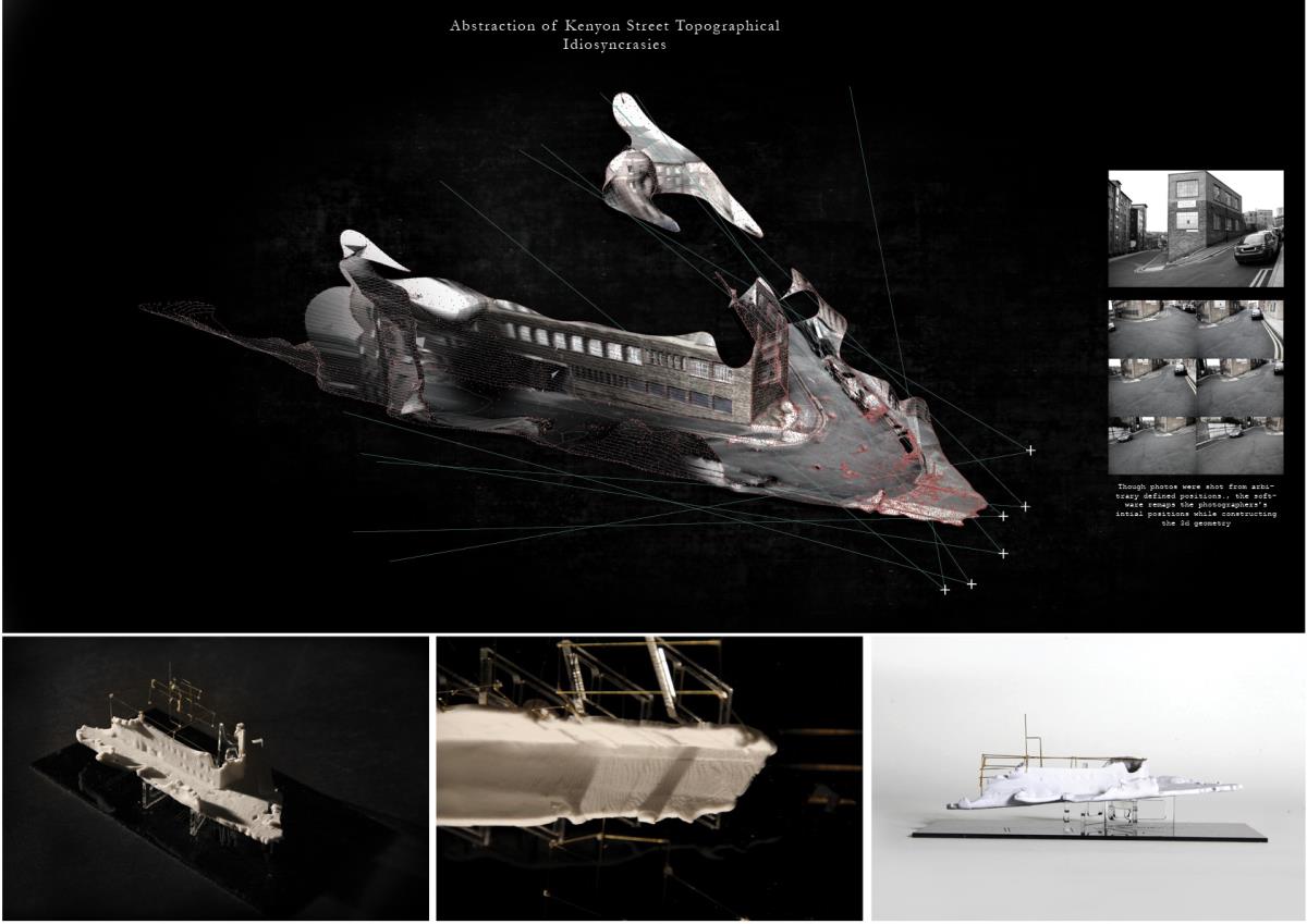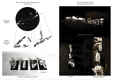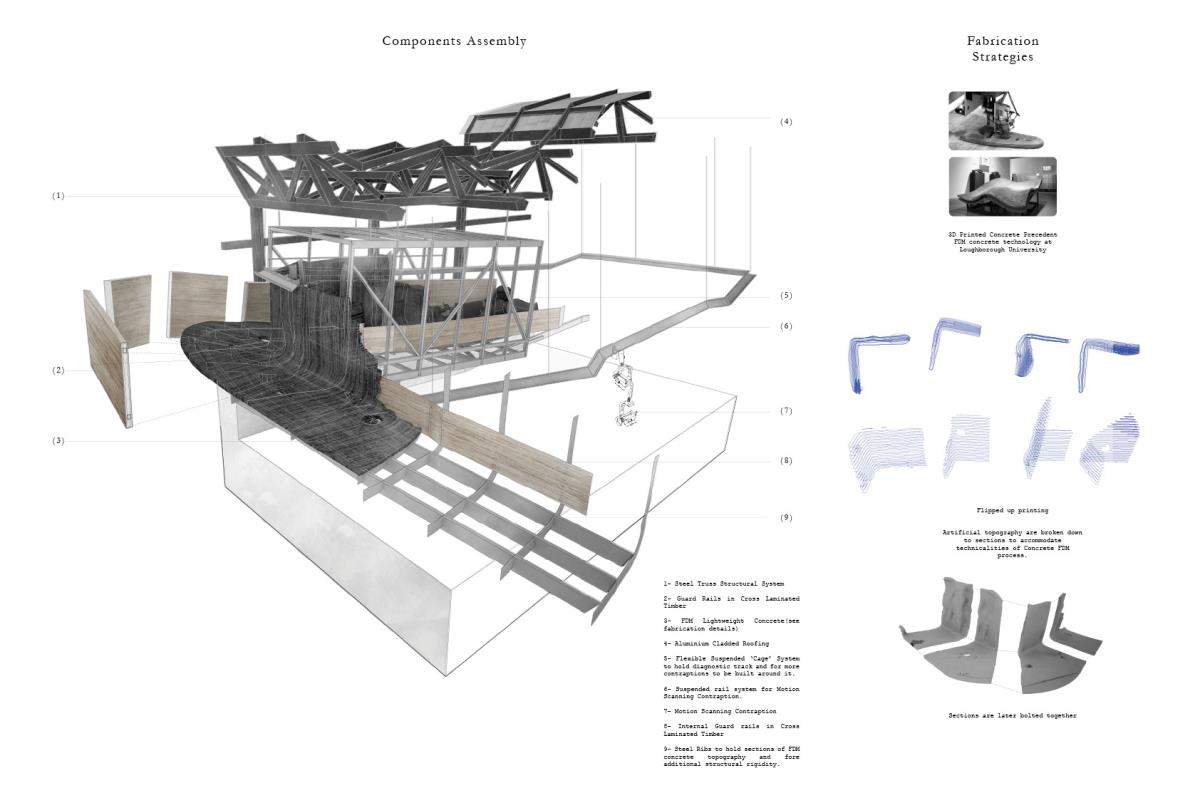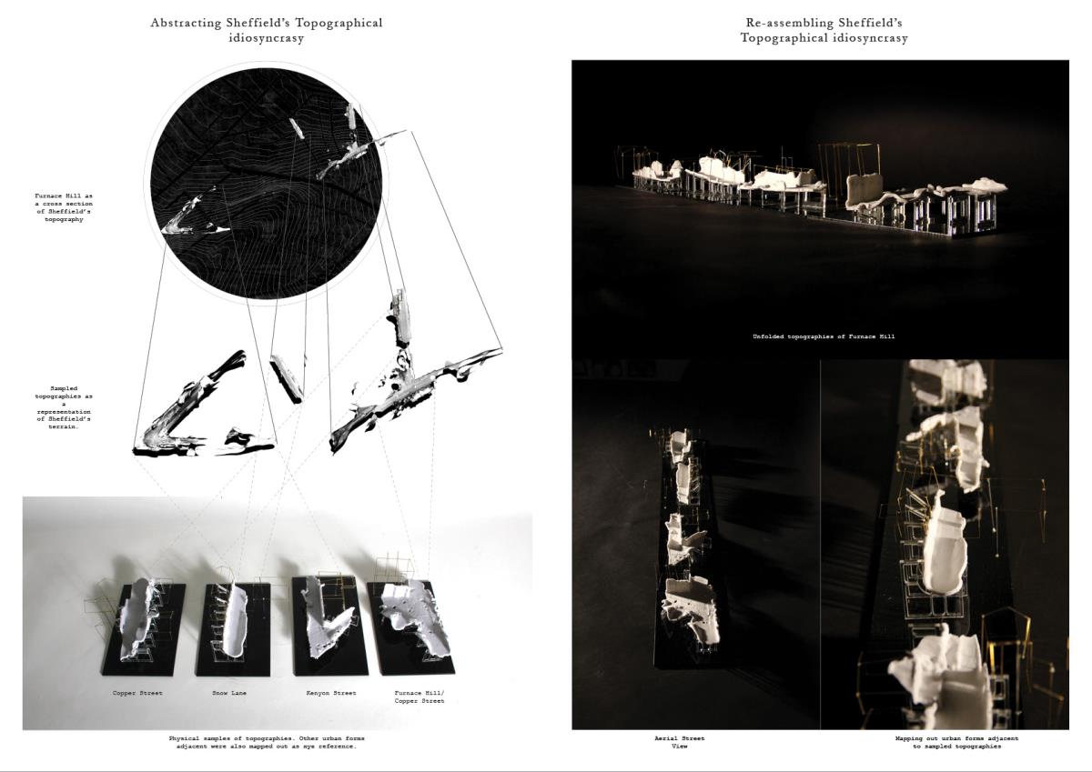 Manufacturing [of] Urban Idiosyncrasies - Facility for Sheffield’s Digitally Fabricated Bicycles Part 1 Project 2013 Mohammed Syafiq Hassan Jubri University of Sheffield | UK Based in Sheffield, the project proposes a digital manufacturing facility for bespoke bicycles, customised for the individual cyclist and responding to specifics of the city. Building upon the recent proliferation of digital technology, the program aims to augment local sustainable transportation whilst embracing new making processes within the post-industrial landscape of Sheffield’s Furnace Hill.The project investigates the notion that cities will continue to influence their inhabitants’ movements, habits and idiosyncrasies in a digital future. Through reverse engineering and digital fabrication, the process of manufacturing urban idiosyncrasies embraces a state of continuous translation, blurring boundaries between recording, designing and making, and oscillating between physical and digital states. Sheffield’s idiosyncratic topography shapes the bodily movements of its inhabitants, which in turn shape the objects they use. The resultant objects, particular to person and place, define a new synergy between inhabitants and their city.The area of Furnace Hill represents a cross section of Sheffield’s idiosyncratic topography and forms a geographical focus for the project. A series of terrain samples are abstracted from the streets around Furnace Hill through a photogrammetry process. These virtually displaced terrains are then re-assembled into a sequence of 3D printed concrete terrains, suspended within the facility to function as a fixed manufacturing parameter influencing the production of each bicycle.As the cyclist cycles onto and along these newly displaced terrains a motion capture camera tracks his/her unique movements and idiosyncrasies. The unique abstracted digital data of the cyclist’s cycling style (a second manufacturing parameter) upon the terrain directly informs the geometry of a new customized digitally fabricated bicycle. The bicycle is created from a digitally manufactured (3D printed and machine-cut) kit of parts that can be rapidly assembled. The bicycle can also be disassembled should it need to respond to new idiosyncrasies in future.The proposal recognises our behaviours and identities are inherent in the city, and that the idiosyncratic characteristics of person and place can be empowered within an increasingly global and digital world. Tutor(s) Oli Cunningham