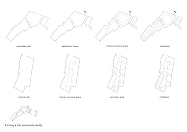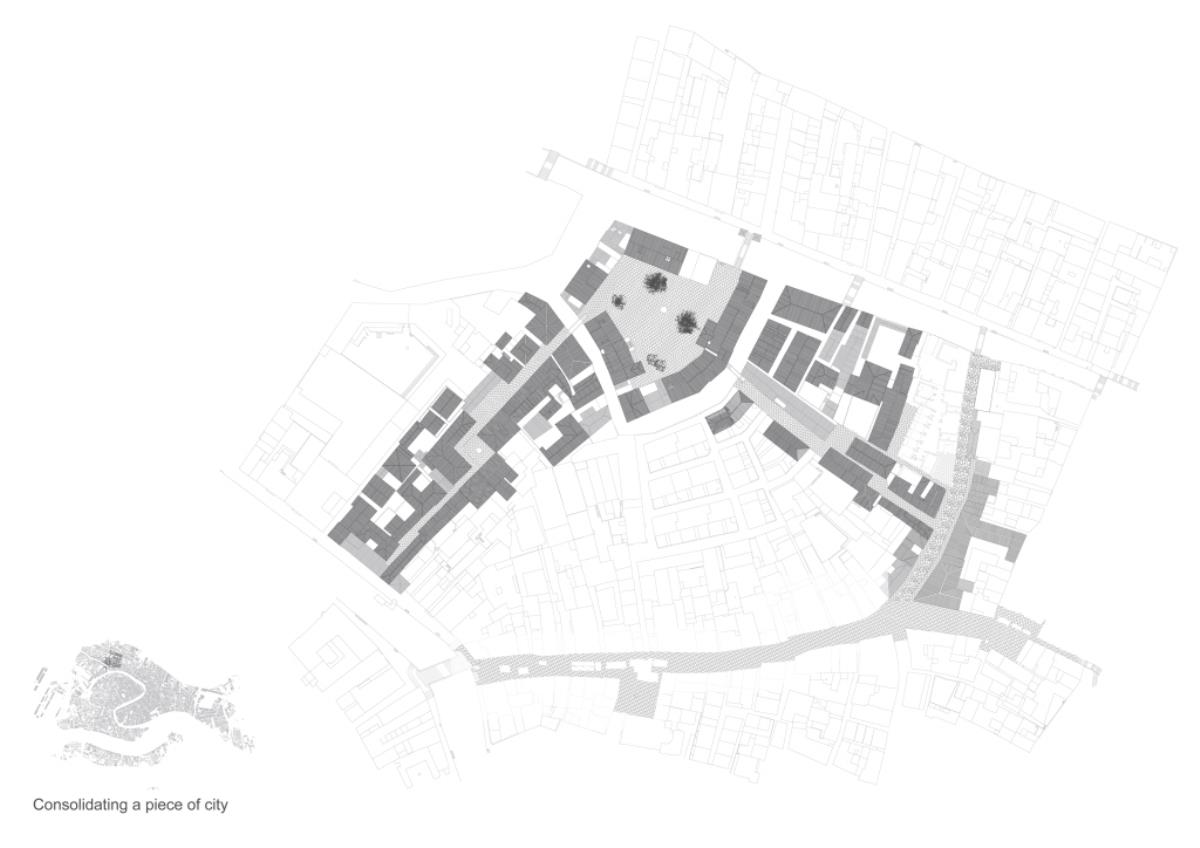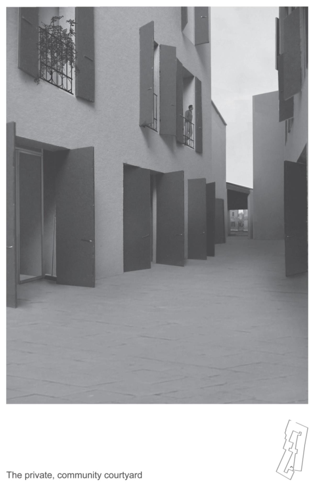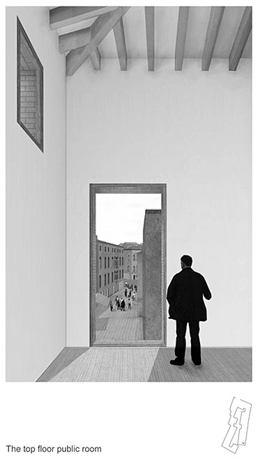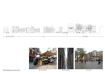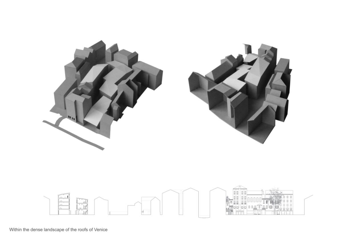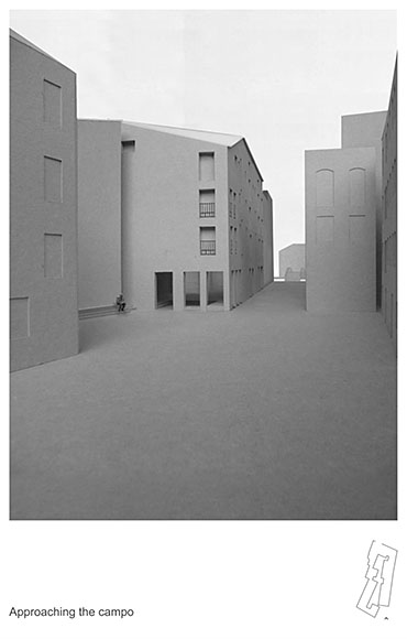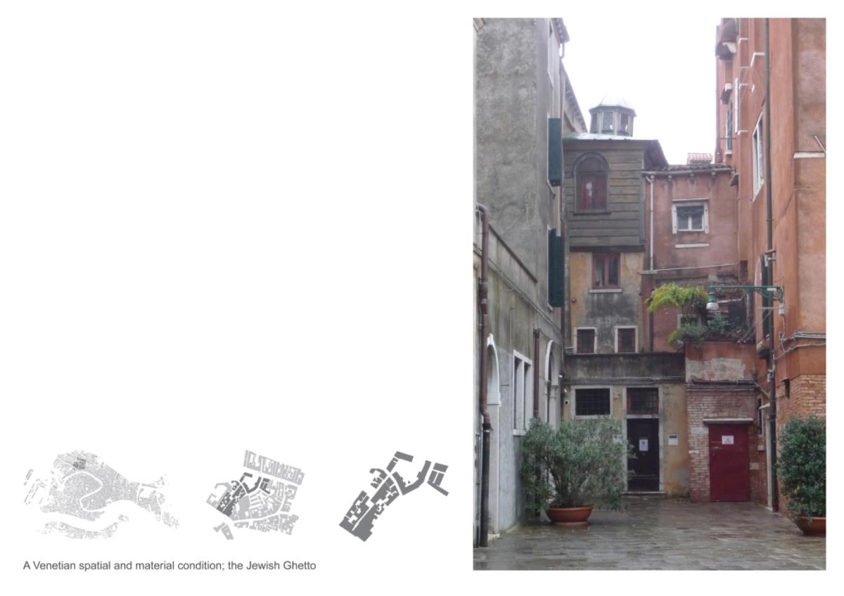 La Fondaria Part 2 Project 2013 Elli Farrant Kingston University Kingston | UK During Venice’s Golden Age as a global centre for trade, the Venetian Republic forced the Jewish population to live on a single, gated island whilst the remaining city was inhabited by a diverse merchant population. However, the state – imposed ghetto translated into a rich community identity due to its familiarity and the successful urban arrangement. Today, instead of foreign merchants the city is inhabited by an equivalent number of tourists each day to Venice’s population size.The proposition conceptually enlarges the footprint of the former Venetian Jewish Ghetto beyond its strict limits to link with a busy working street to create a new, larger community identity. Through the introduction of a campo – traditionally a space to allow Venetians to gather – the two urban conditions are joined.The Venetian word ‘Ghetto’ originally meant foundry and was where the waste products of metal working were stored. The proposed live/work courtyard is focused on rebuilding the working city through the reintroduction of workshops, for activities such as metal working. The nature of the buildings informs the character of the space whilst the use over time is subject to change.The brick buildings are linked by a continuous roof that begins at the point of the busy street, gradually sloping down around the courtyard until it reaches single – storey height at the canal.On the external façade, the window shutters are concealed within the depth of the monolithic brick wall whereas within the courtyard, the window shutters have been placed on the outer face of the brickwork to create an interaction with the communal space. The facades of the internal courtyard shift in response to the cyclical daily activity of the community within. Tutor(s) Matthew Dalziel Jonathan Woolf