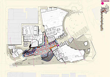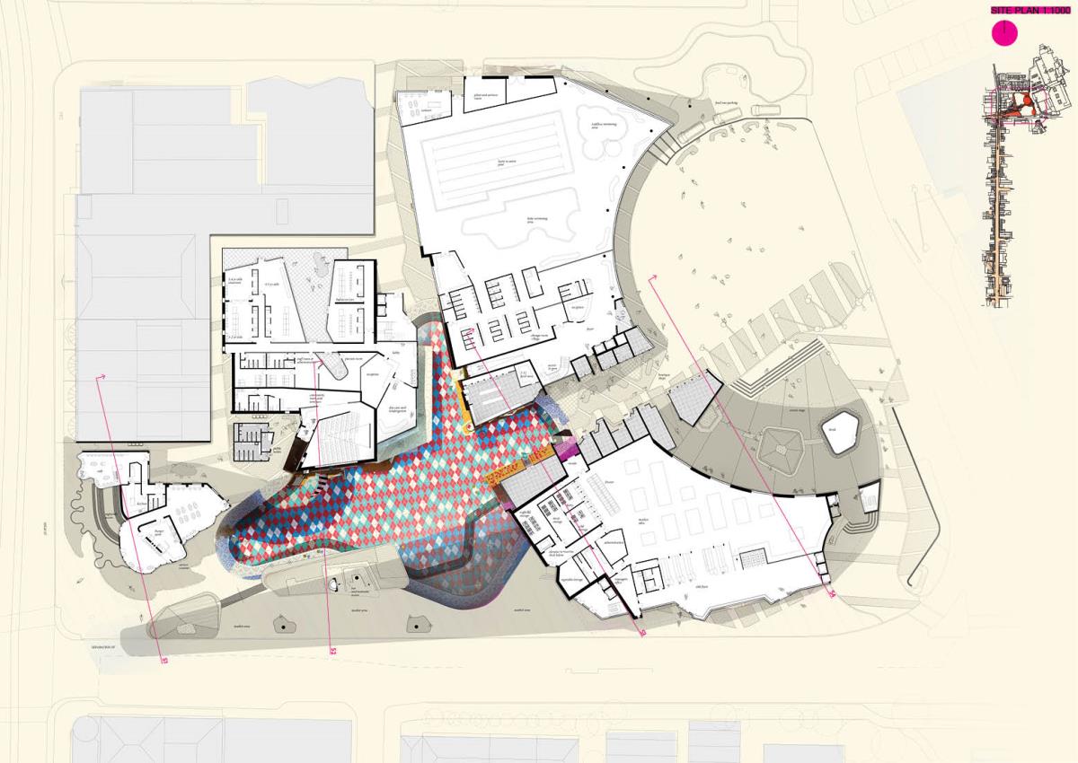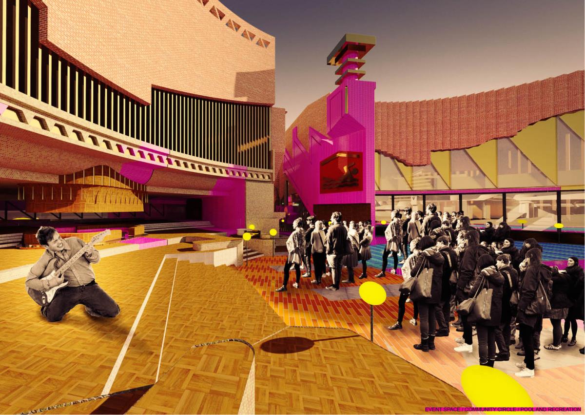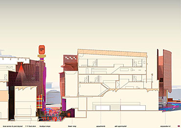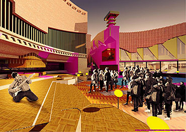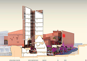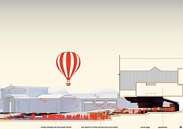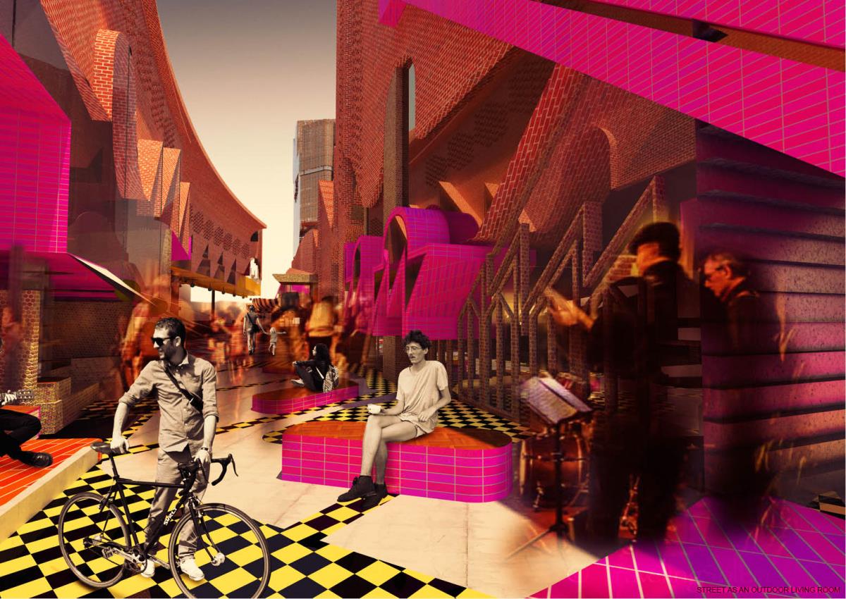 Sited in Northcote, a suburb 7 kms from Melbourne, this project does three things: it rescales the idea of the household living room to the scale of the urban environment; it consolidates existing site relationships to give Northcote a city centre; and it amplifies the character, culture and vibrancy of Northcote's High Street.