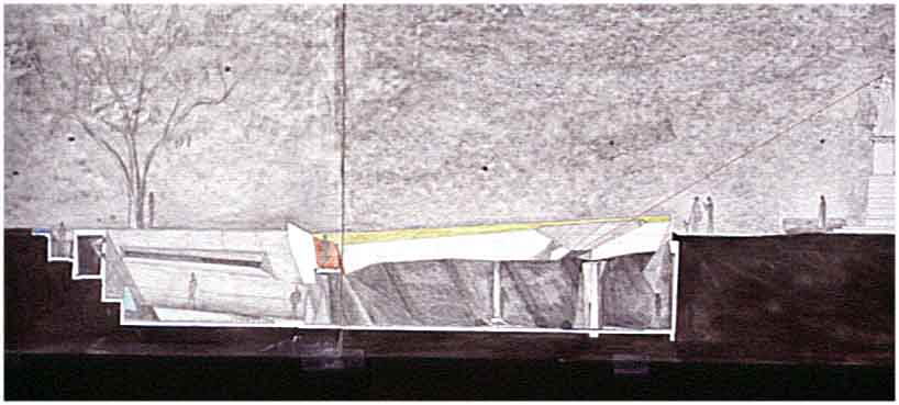 A ramp with a gradual slope flanged by relevant exhibits marks the beginning. An enclosed volume displays the history of evolution of science through L.C.D. screens. With the first step in the exhibit, area the viewer is exposed to a wide range of exhibits with a visual access to the exhibits of other zones. The circulation pattern consists of four levels with gradual rise to each level and then the exit from the lowest. Special elements like open elevators and ramps are designed for the handicapped people. Considering a need for a huge central column free volume, tensile technology is adopted with necessary detailing.