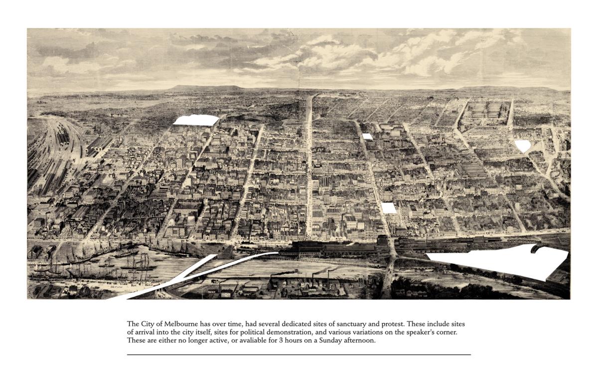 The Public square in Melbourne has a peculiar history. in 1837, the city was drawn without one, the Governor at the time convinced that they encouraged undesirable democracy. Over the last two decades, a nominal city square was first halved in size due to lack of activity, and then subsequently turned into a hotel forecourt. Today, Melbourne's only public square is a privatised space that must be leased in order to be used for civic use. It possesses none of the historical, ideological or political significance that belong to any of the better known squares worldwide.