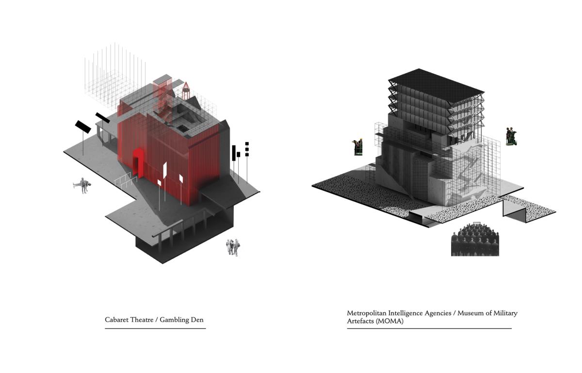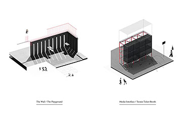 The new Square is intended to operate simultaneously as cultural artefact, political exercise and a speculative place of social and ideological transfer. As an archipelago of ten laboratories, the project takes cue from the recent observable reprogramming of the city square, first during the Occupy movement, and subsequently the Arab Spring. The architecture of the Square draws from a syntax of territorial lines, their physical manifestation as borders, walls and the political archipelago as a product of this process.