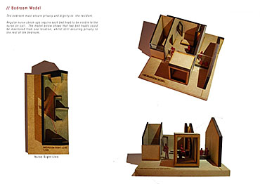 The bedrooms have been designed in such a way to allow nurses to have a clear view of each bed-head yet still ensuring a level of privacy to the individual. Intimate spaces are designed throughout the hospice to allow a person to talk, to listen or simply ‘take a moment’. In an environment where people are experiencing a tremendously difficult time in their life, I believe it is these ‘critical moments’ which are the most important to cater for.