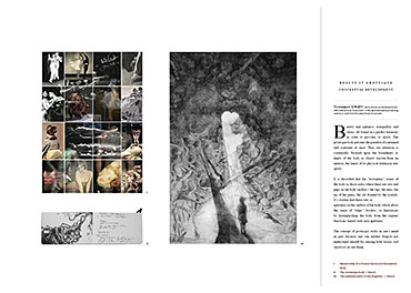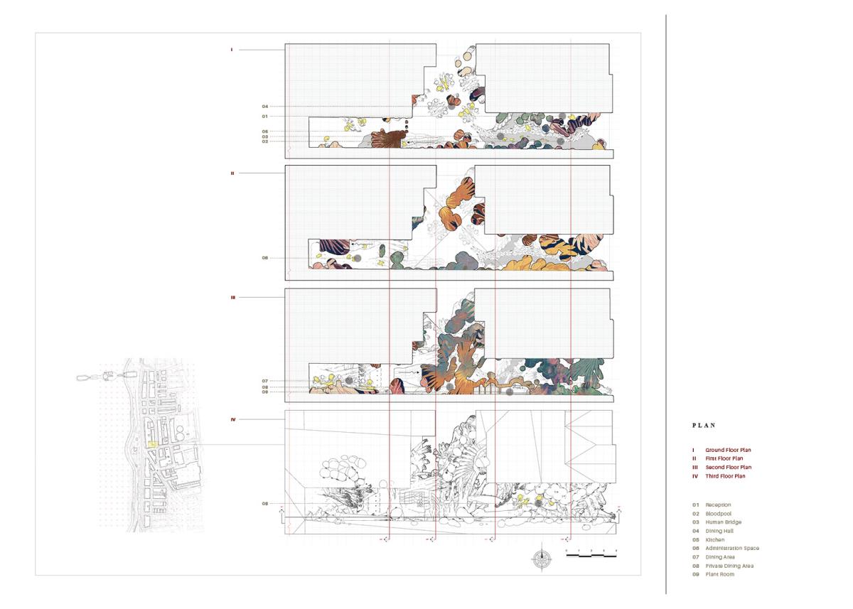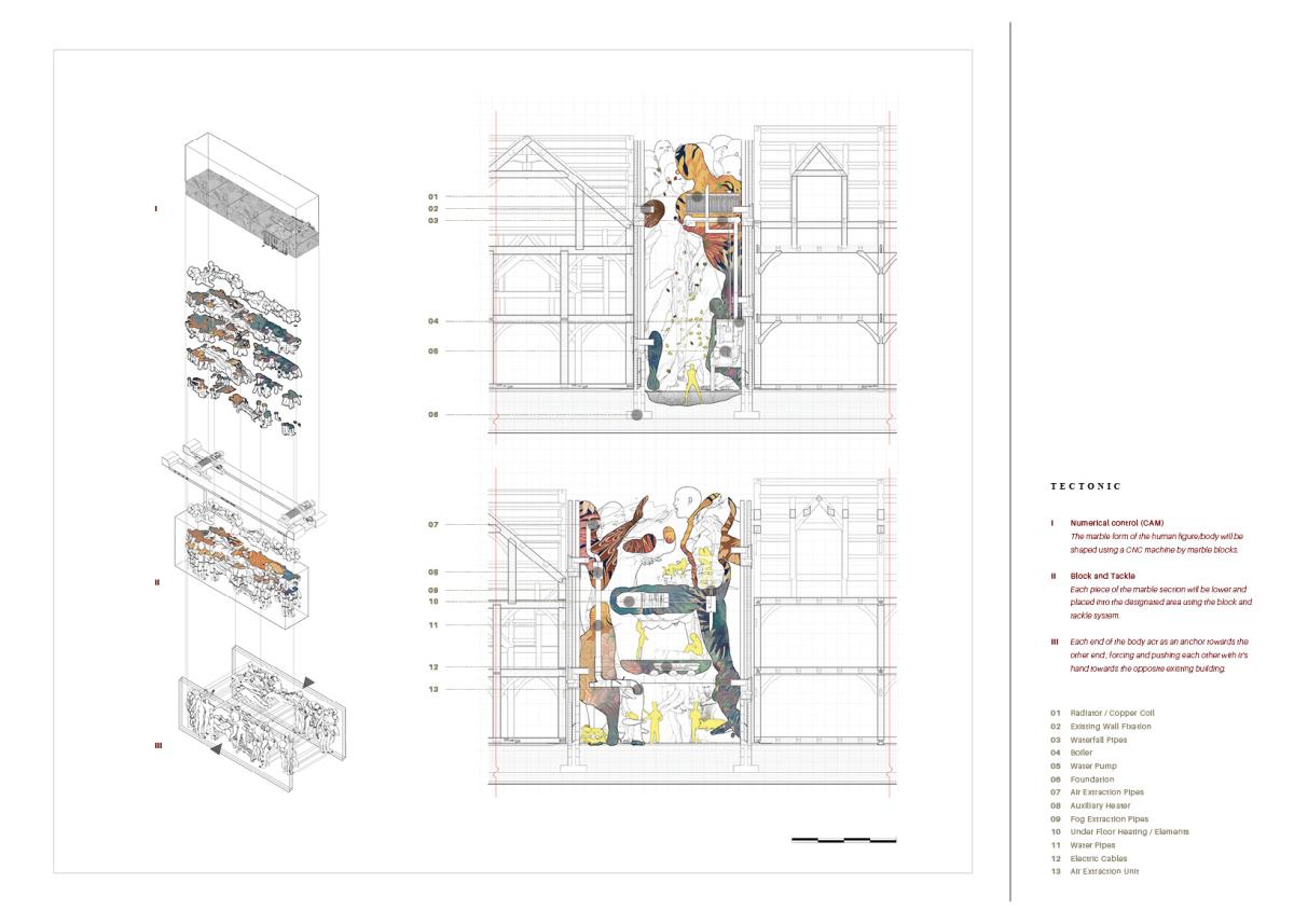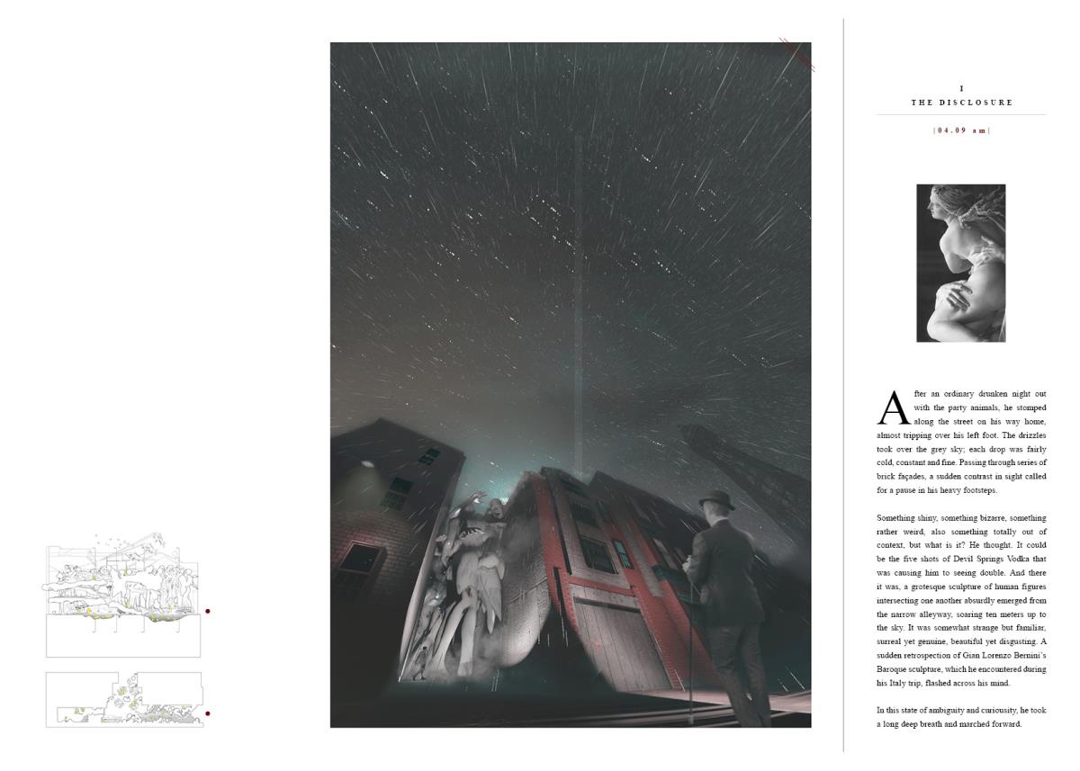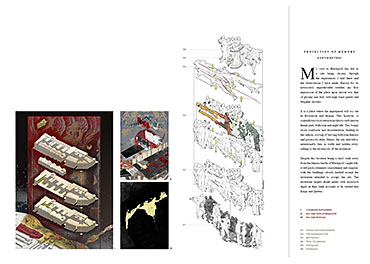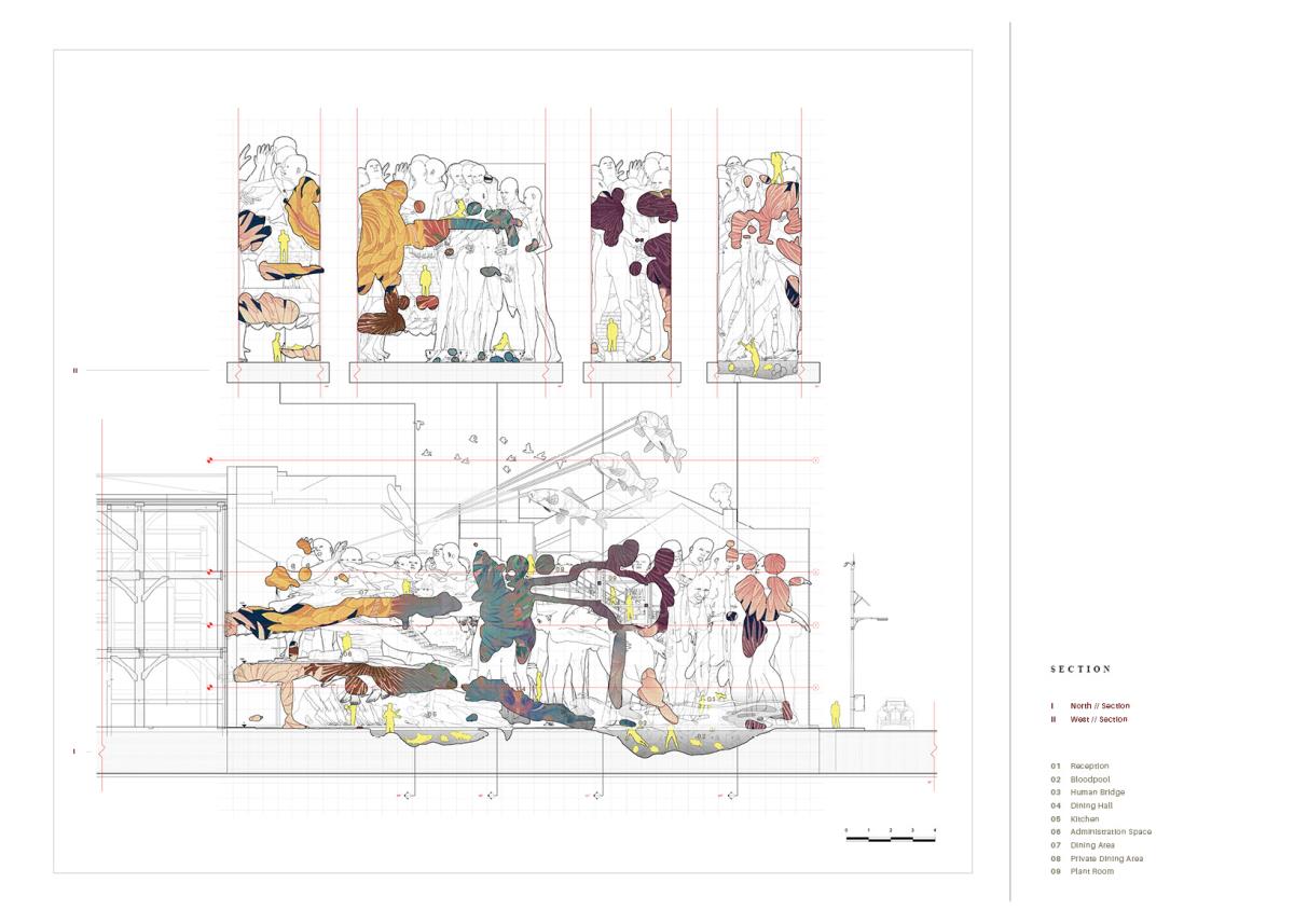 Pleasure Beach / Beauty in Grotesque Part 1 Project 2014 Chong Yan Chuah Newcastle University | UK Pleasure is an experience described as positive, enjoyable, or worth seeking. It invokes a feeling of happiness, enjoyment, and euphoria. This project centres on the relation of architecture and the pursuit of pleasure. With that, a question was set; what makes architecture pleasurable? Perhaps, it is in the memory and experiences we keep. Set in the coast of England, Blackpool lies on a gloomy societal condition, with a reductive and socially deprived population. On another end; Blackpool also embodies the colourful exaggeration of a theme park through its Pleasure Beach, and the unreturnable debauchery of the ‘wild night out’. Flip a coin, pick a side; it is beauty and ugliness in one environment. Exploring the definition of beauty, the project freezes the progressive movement of the foxtrot dance as witnessed in the Blackpool Tower Ballroom, by manipulating its elegance to evoke the grotesque. This emotion is a projected memory of Blackpool, which was experimented and developed upon to produce a physical form. The tranquillity and chaos of the forms were bounded by harmony, tested to provoke and shock. Nakedness; a fashion of beauty, was narrated into the design as an extension of pleasure, so that there is little division between the architecture and the experience itself. The design brings life 6 experiences: The Disclosure, The Vague, The Butcher, The Midst, The Feast, and finally, The Arousal. It is to be known that the form imitates pleasure, as pleasure reflects emotion, and emotion gives experience. The attention of this project is centred on the concept of beauty in the grotesque, where one can neither forgive nor understand the sensation of experiencing both beauty and repulsion all at once. Tutor(s) James Craig Matt Ozga-Lawn