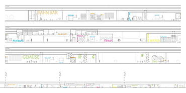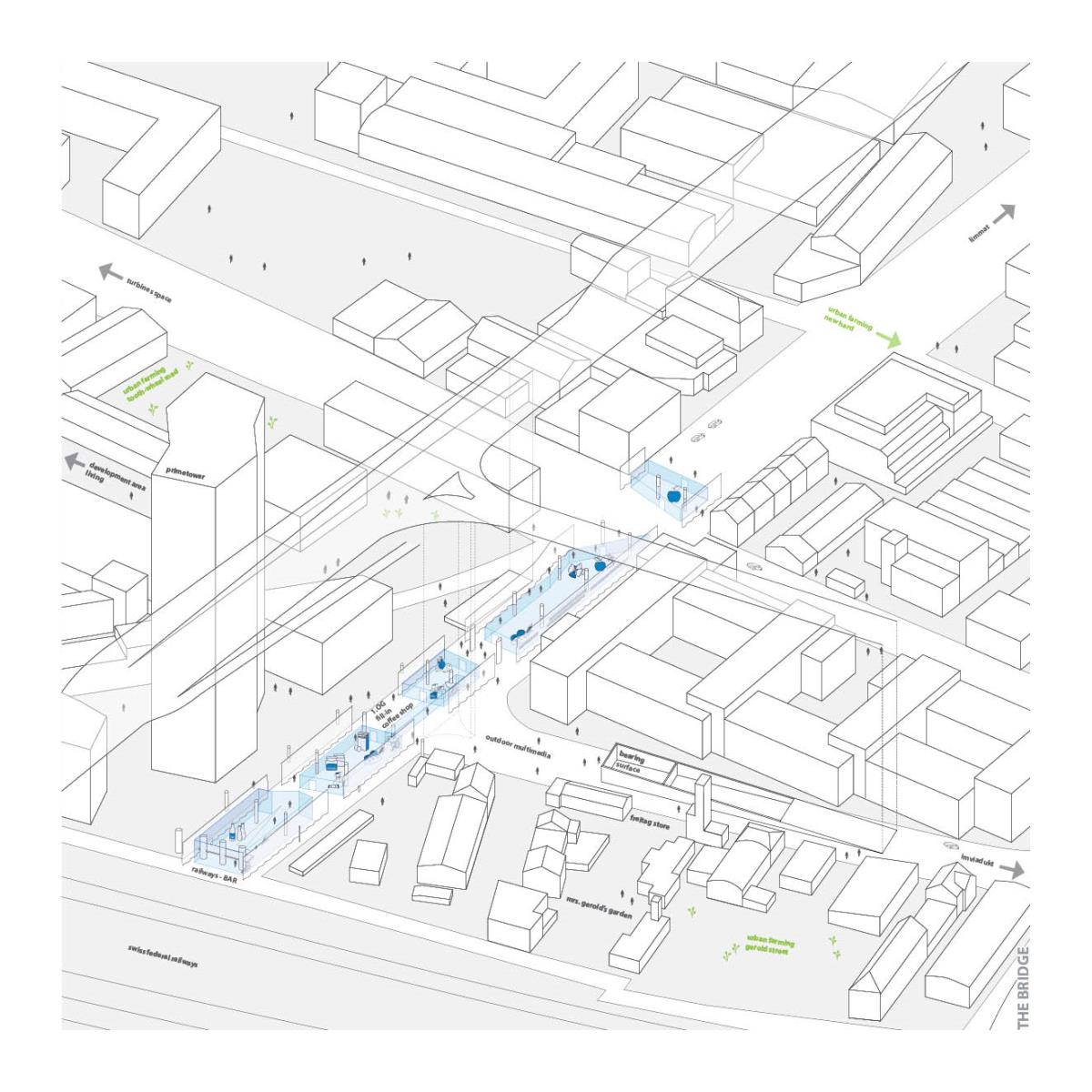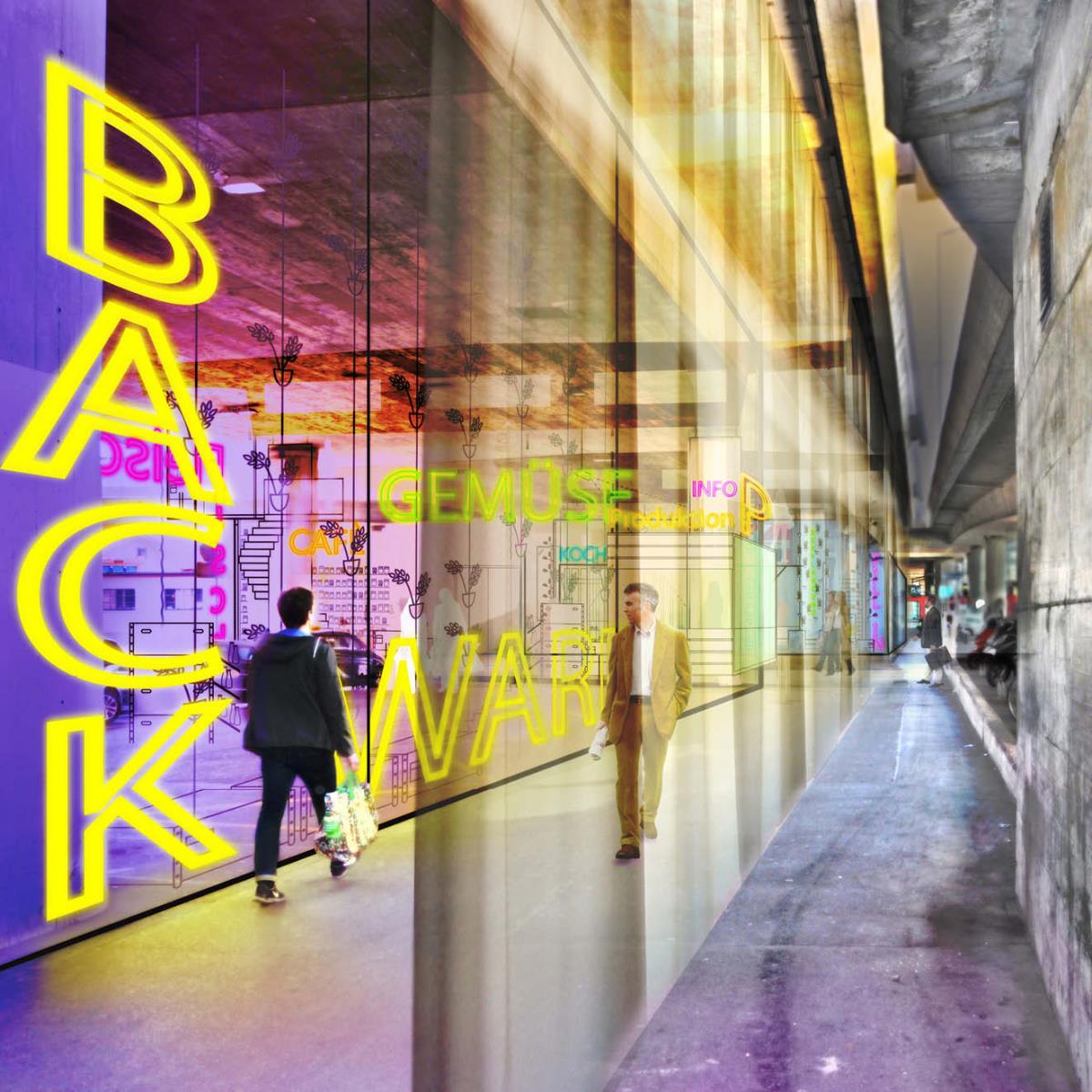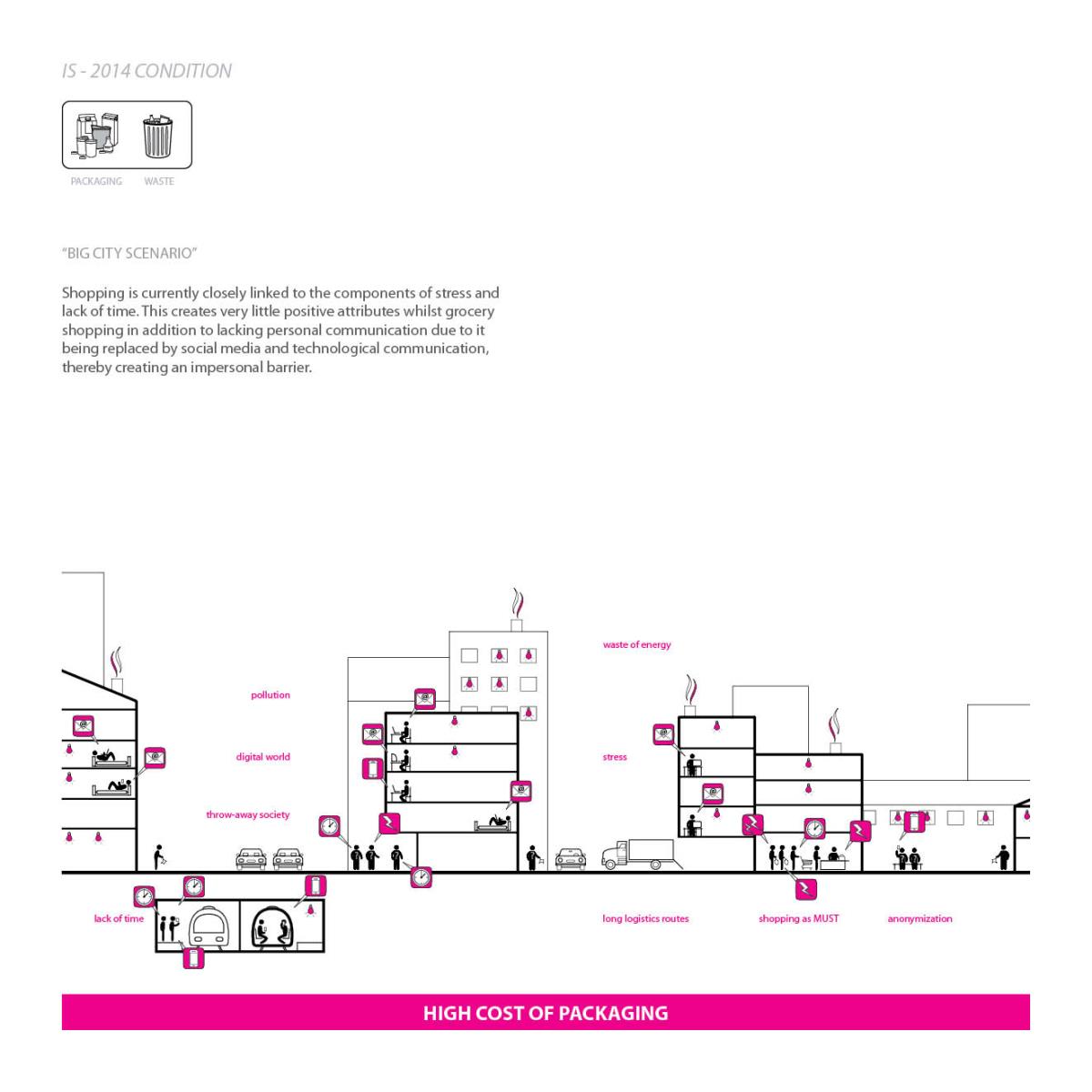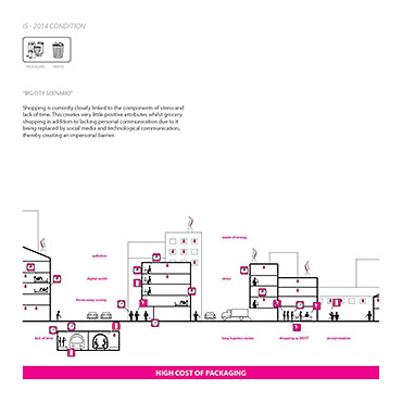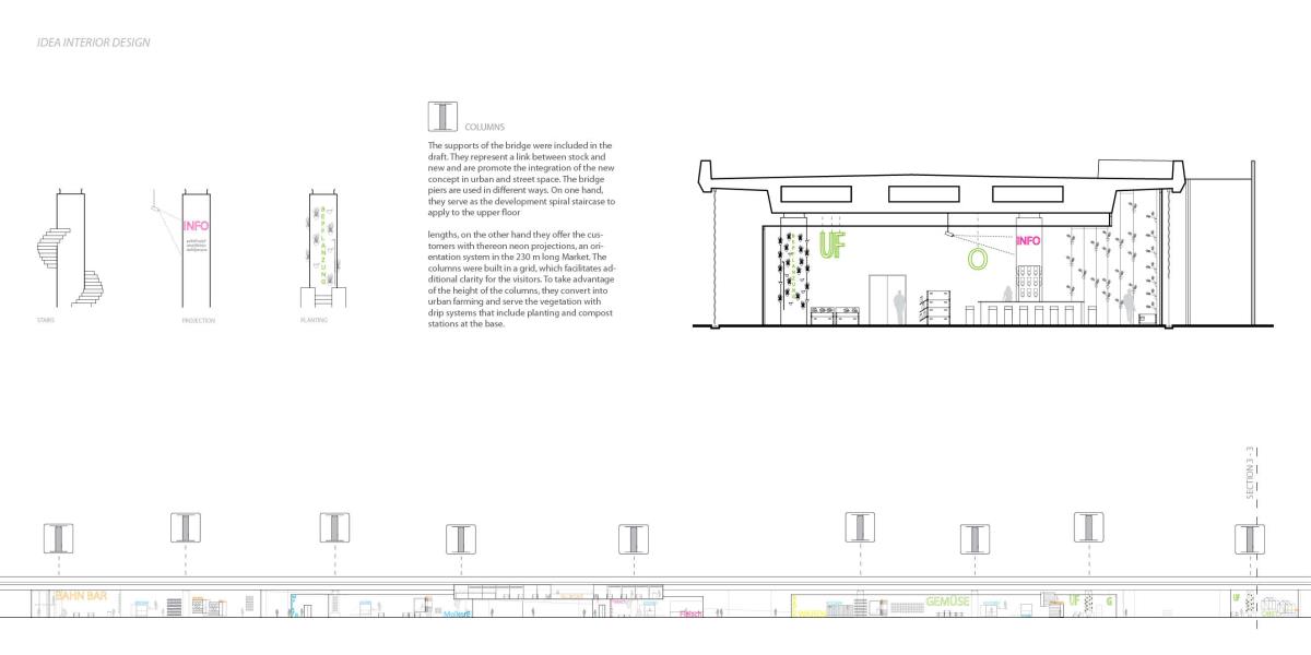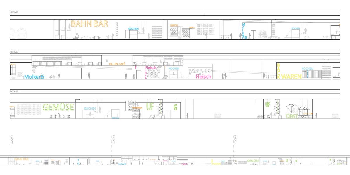 Zuri Market Part 1 Project 2014 Tanja KaufmannAlisa-Ramona Kellner University of Innsbruck | Austria IS - 2014 CONDITIONShopping is currently closely linked to the components of stress and lack of time. This creates very little positive attributes whilst grocery shopping in addition to lacking personal communication due to it being replaced by social media and technological communication, thereby creating an impersonal barrier.The design concept is based on the run-down parts of the town. Living and working has been kept separate and there is no synergy, thus the interaction is missing. It looks empty and anonymous and although outdoor spaces are designed with available free space they are rarely frequented. Therefore, the Zuri market serves the following factors:I-nteraction - I-ntegration - I-dentification - I-ntensificationTARGET - 2025 CONDITIONMARKET CONCEPT - It will be offered as a sustainable approach to waste prevention fresh home-grown produce with targeted merchandising in Fill-In systems. The customer can see the quantity of goods that they actually need and can fill the amount into reusable containers from; any other packaging is accounted for. The product range is reduced and is therefore more efficient. Through additional offers, such as its own production and cooking-islands shopping should be viewed as a positive experience and produce a longer stay of visitors in the market.230 M ZURI MARKET is not a classical concept of a supermarket. Based on Fill-In principle there are only fresh and primary products grown. It represents a sustainable concept of a food market, in addition to the normal shopping and the opportunity to stay there longer to produce goods themselves. They also provide workshops, which allows visitors to exchange thoughts and experience a new sense of food products. In addition to the many luxurious urban farming areas outside the market, there is also the market itself “Look beds”. With energy harvesting from piezoelectric elements and rainwater harvesting, the market tries to remain as autonomous as possible. Tutor(s) Andreas Flora Ferdinand Reiter