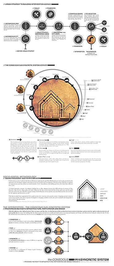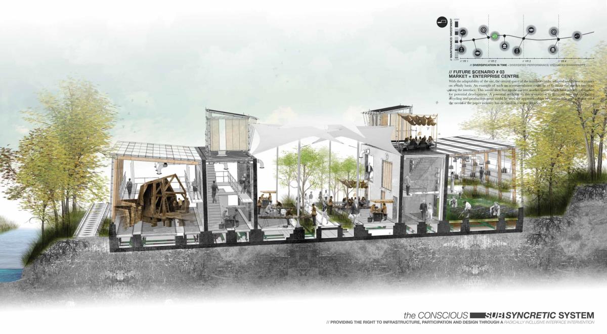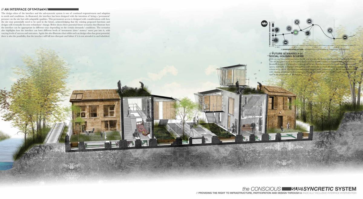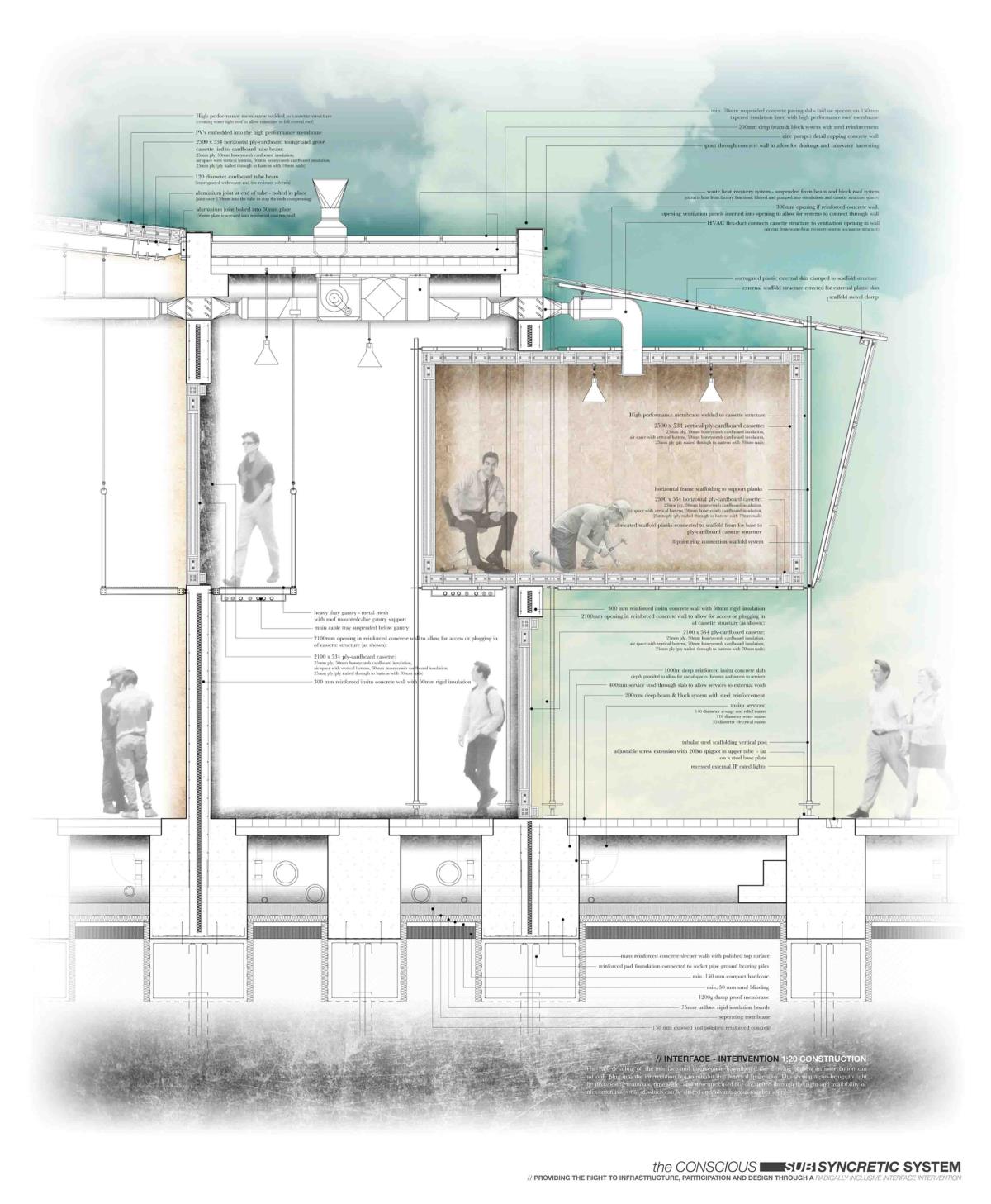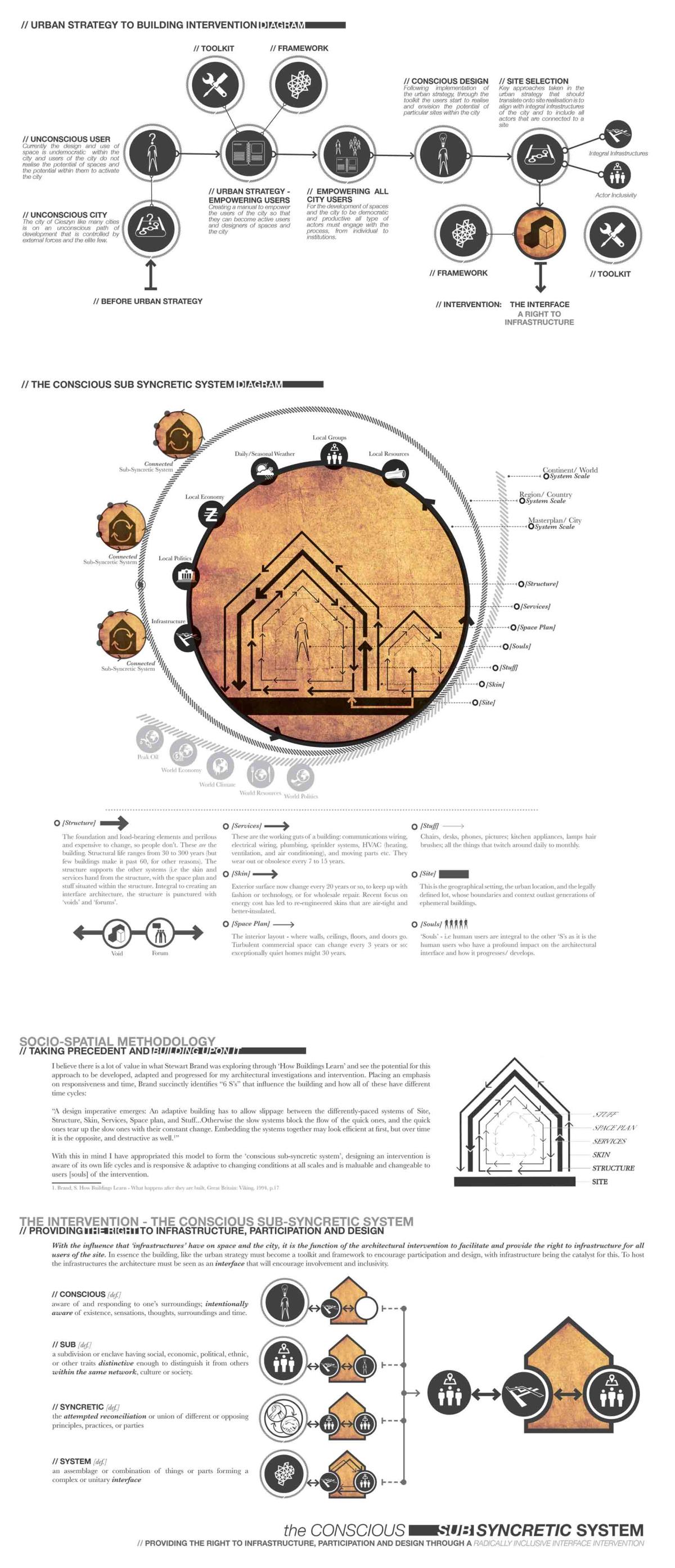 Whilst potentially architecturally agonistic and unapologetic, this interface-infrastructure’s architecture aspires to be inclusive of all systems and has the potential to lead to a conscious and responsive intervention between people(s), place(s), tectonic(s), and ultimately time - the sub-syncretic system.