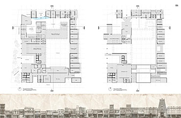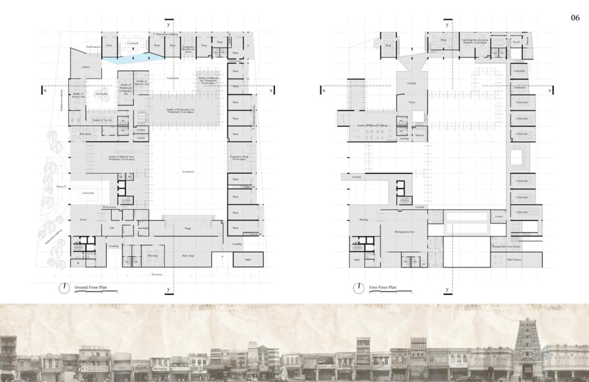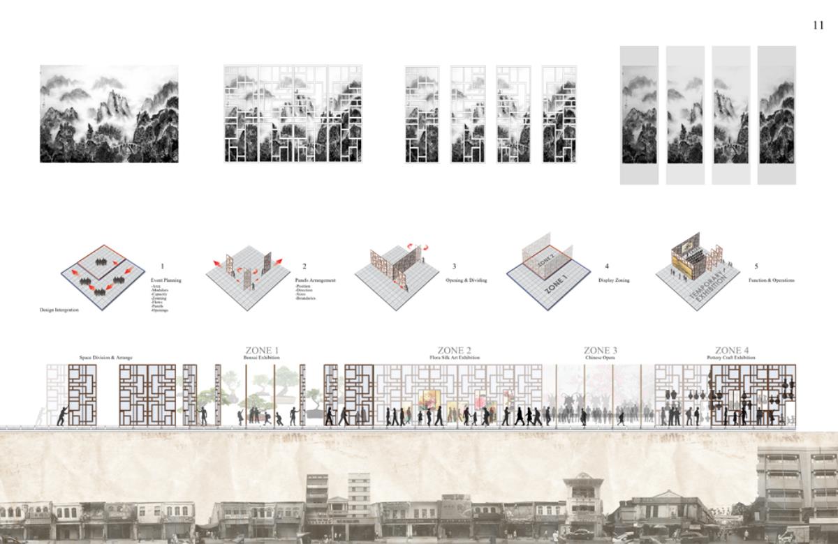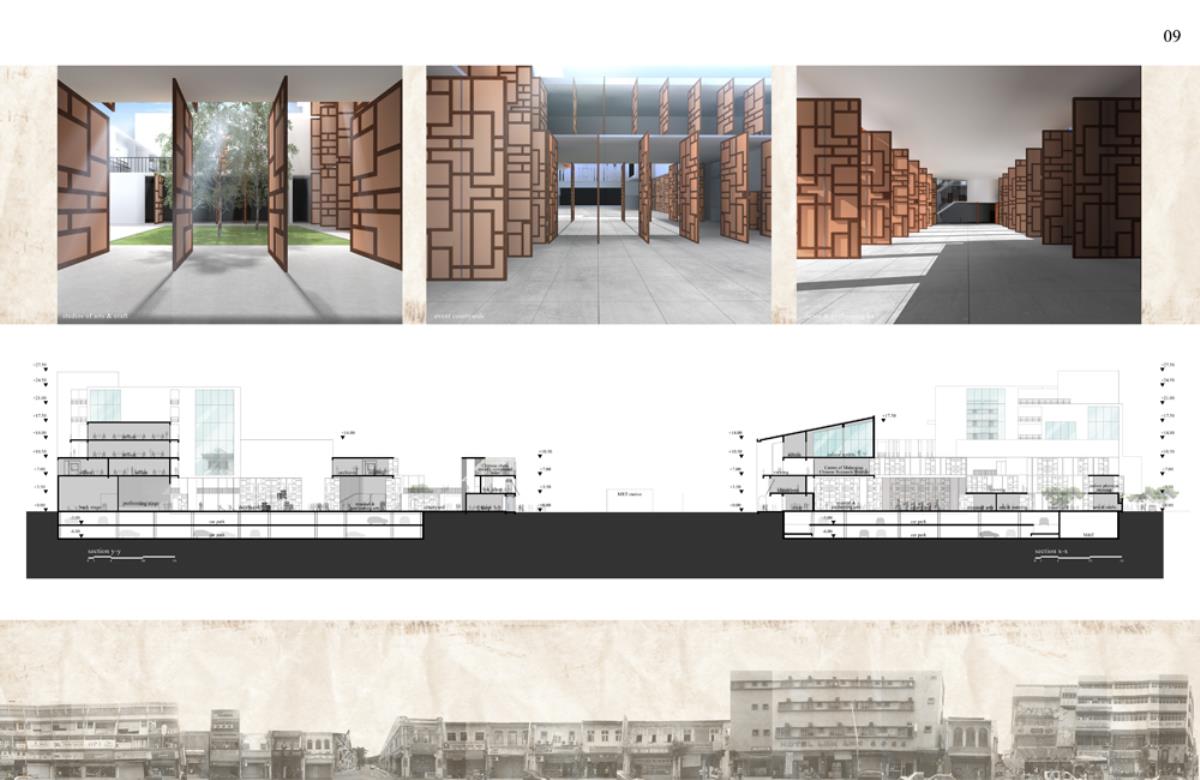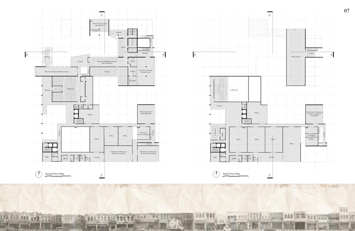 Cultural Hub for The Malaysian Chinese Federation of Associations Part 2 Project 2014 Jin Yu Lee University of Malaya | Malaysia A referral of civic narrative introducing the space intervention to portrait the original lifestyle and the characteristic of the original community. Associations by Malaysian Chinese are major influence to growing city. Today, lifestyles and cultural movement are remaining as it’s significant to stand as KL Chinatown. This thesis applied poetic imagination, though not in order to create poetic architecture but making certain kind of architecture that could emanate a sense of formal poetry. The place is for Chinese associations; the unity, the cultural movement and integrations which one could approach the celebration of community and event in social and civic way. The overall is a mirror box reflects the urban skyline and characteristic of the community. Expressing via interlocking between cultural and commercial spaces towards exotic and sophistication of KL Chinatown’s mixing urban skyline.The concept embracement usage of courtyards. Complexity of spaces from usages, confusing yet systematic flowage and division allows the individual to experience the building through subtleties of design decisions he carefully makes, choreographing a performance of such through both the material composition and the layout of design and surrounding landscape. The external façade is a humble expression matches existing shop houses for small trading businesses; small offices for commercial and associations’ activities at upper floors. The façade and external zoning, creating repetition by division of spaces for trades. Partially meant to be commercial offices, these offices are rented to generate income. Here, existing community rebuilt their existing lots from 2 storey shop houses into 8-10 storeys for the same purpose. A reflection towards series of spacing admits some value in mystification, labyrinth, or surprise in the environment that makes the setting remarkably significant.Special study is the flexible panels within courtyards via space integrations. This system provides dynamic spaces to suits different proportions and scale of events. Multiple spaces up to approximately 30 layouts from 1 to 6 types of spaces in order to run several events with different scales and flowage at the same time. Showcase characteristic of the community in utilizing spaces for different purposes that makes the building stood in fully practical, functional, memorable and essential. Tutor(s) Ezlina Adnan Helena Aman Hashim Take Bane Lim Teng Ngiom Lim Saari Omar
