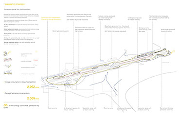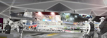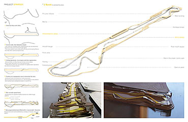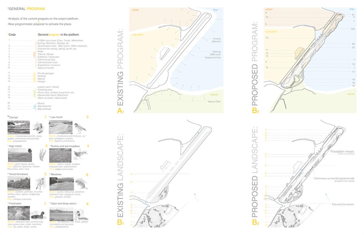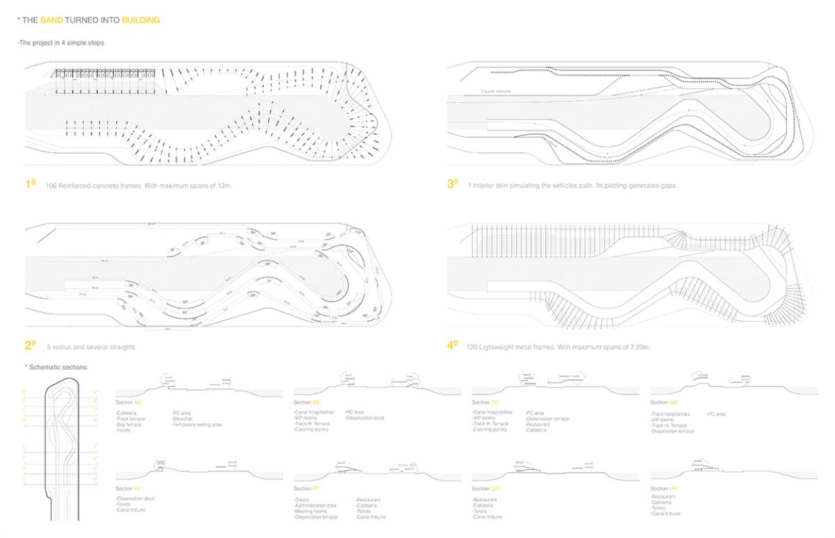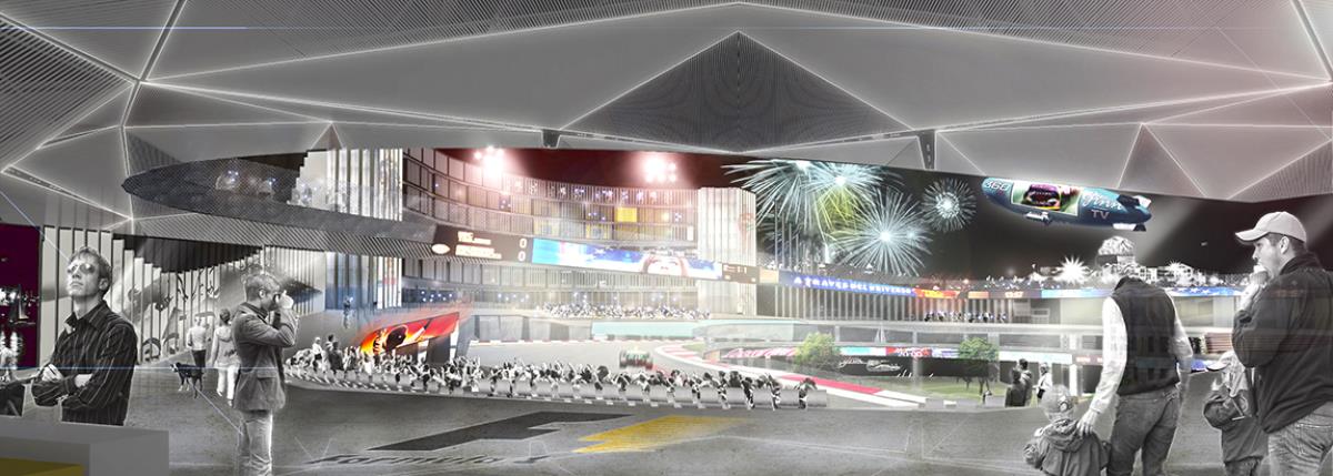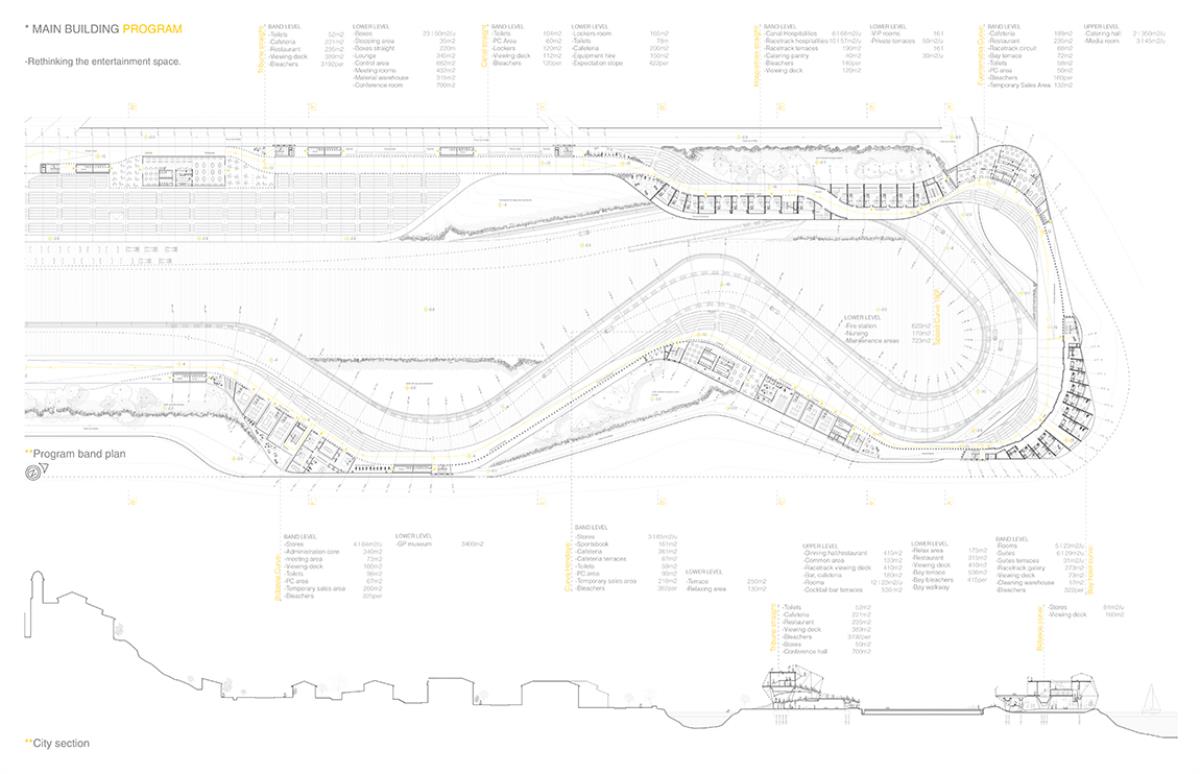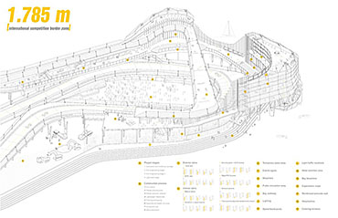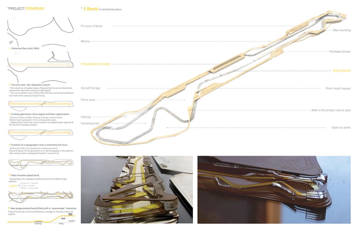 In accordance with this analysis is where project 1785m becomes a reality, turning itself into a new and powerful experience gatherer, capable of offering that hybrid and complex idle offer that works as a point of attraction for both local and global tourism. It manages all this by taking advantage and extracting all the economical, cultural and environmental factors of the environment to reach a sustainable development in the short and long term. The old airport will now be converted into an international island that has been conceived for speed competitions, a space fitted with water channels for sporting competitions such as rowing, sailing, etc. Indoor and open air pools, hangars for gliding, a runway 1km long for small planes. A multi-use track for go karting, cycling and skating. And as a culmination to the project it offers a 4000m track with ''FIA'' official approval for the celebration of F1 GP.