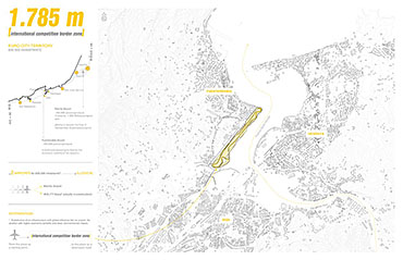 The project 1785m [cross-border competition area], situated on the Bidasoa river estuary (France-Spain border), suggests tourism as a catalyst for economic, social and environmental change in the region.