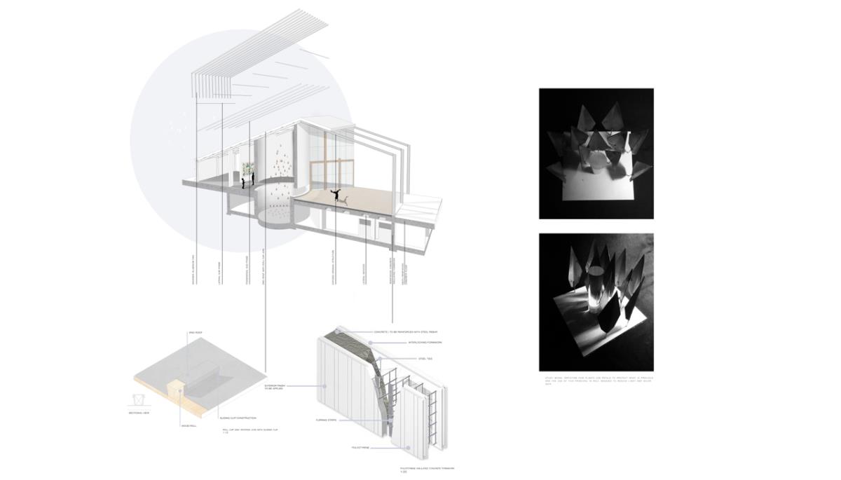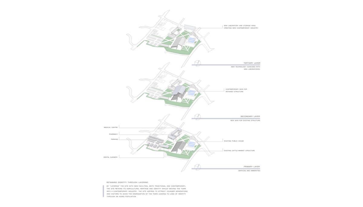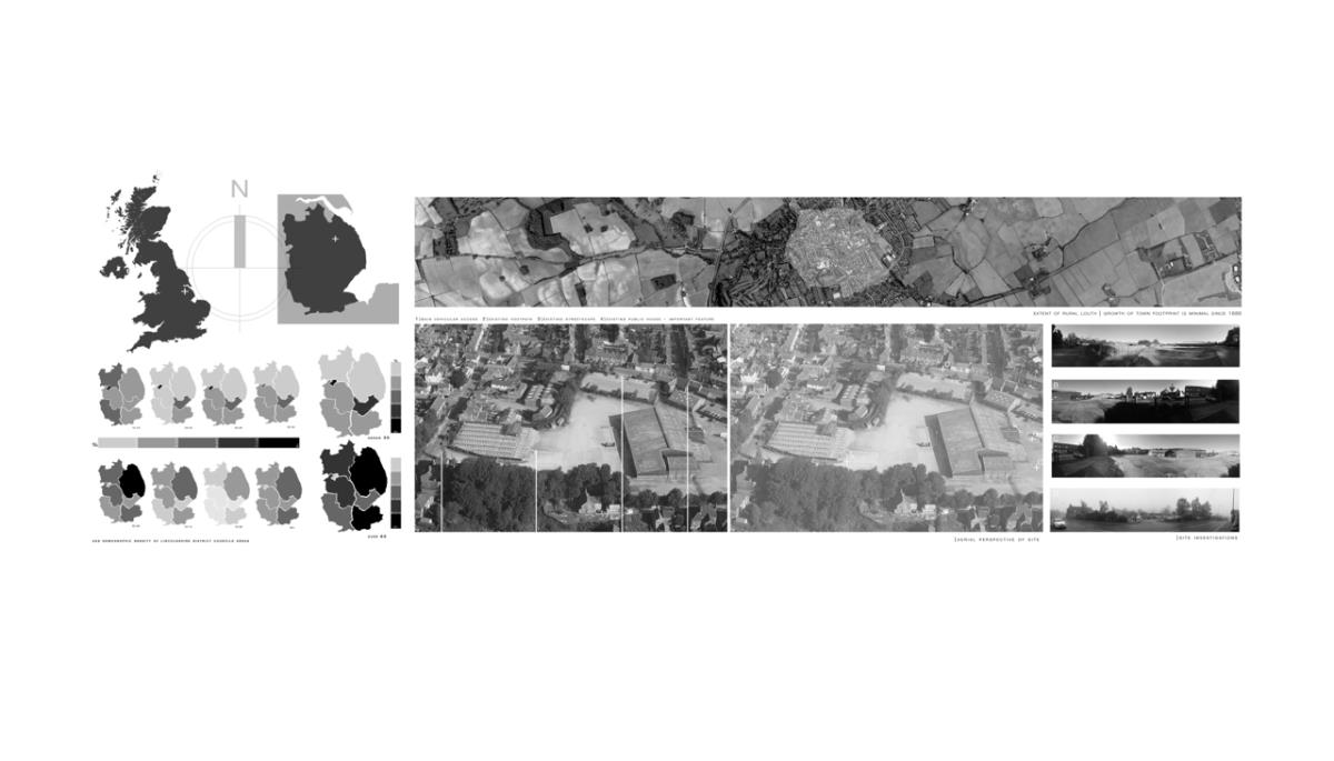 Louth | The Pantry of England. An Extension to a Traditional Town Part 1 Project 2015 Luke Wells University of Lincoln Lincoln | UK The Eunoia Centre, a seed archive, laboratory and exhibition space, works to develop more efficient crops for the agricultural industry; a physical manifestation of a critique formulated from months of observation and interaction with the inhabitants of this rural, award-winning market town, set deep within fertile Lincolnshire, cushioned from the brunt of contemporary life.It is an alternative response to a proposed supermarket on a large cattle market site, close to the town centre of Louth, which threatened its unique character and independent shops in a bid to move the town forward. My response builds upon the agricultural strength of the area whilst addressing growing generational divide and an ageing population, culminating in a space which proves that ‘Keeping Louth Special and ‘Moving Louth Forward’ are not mutually exclusive, becoming a beacon both visually and metaphorically.A considered skin transformed old bones and familiarity was preserved with the retention of ancestral scale and form. It’s white, back-lit skin wraps around an existing portal frame to create an almost religious impression of purity, reflective of the facility’s work, whilst replicating the agricultural weatherboarding the established residents were familiar with and perforated by pockets of planting, denoting public and private spaces. Tutor(s) Paul ClarkeMr Andy Earl John Napier