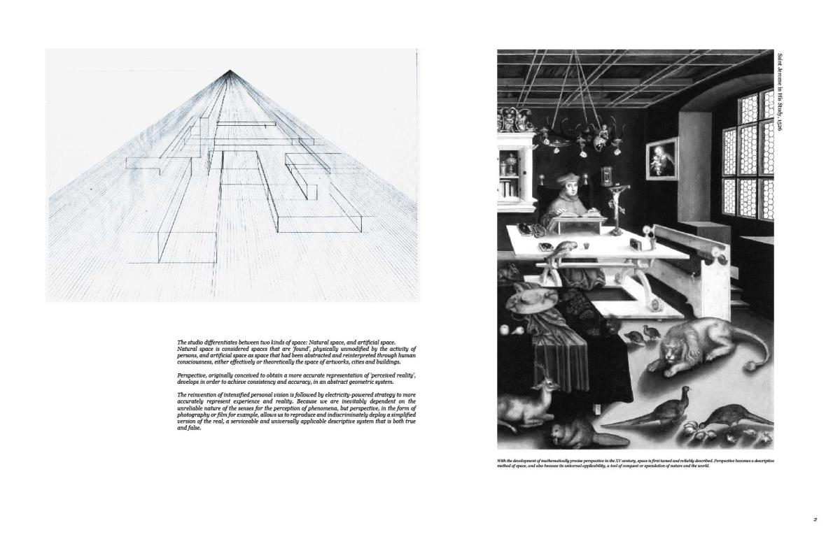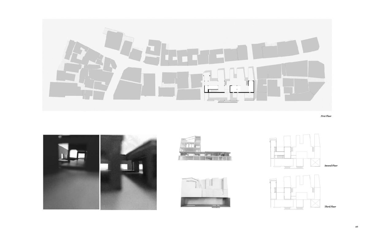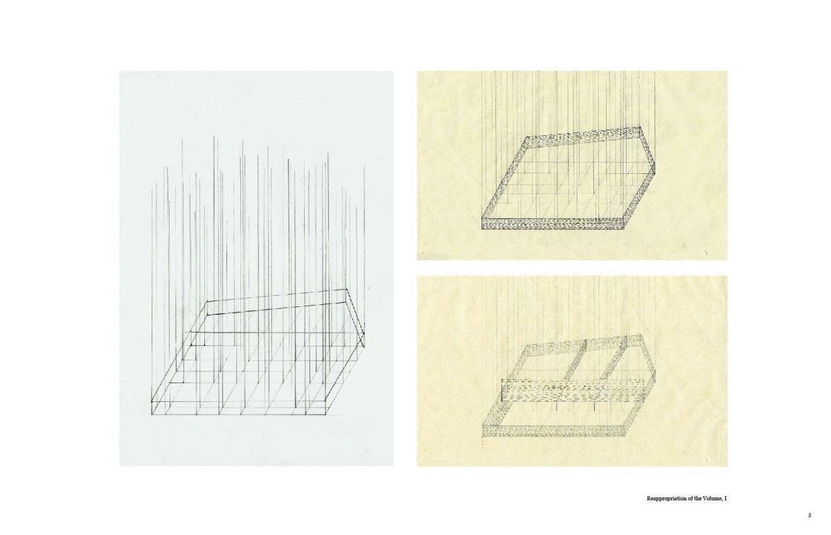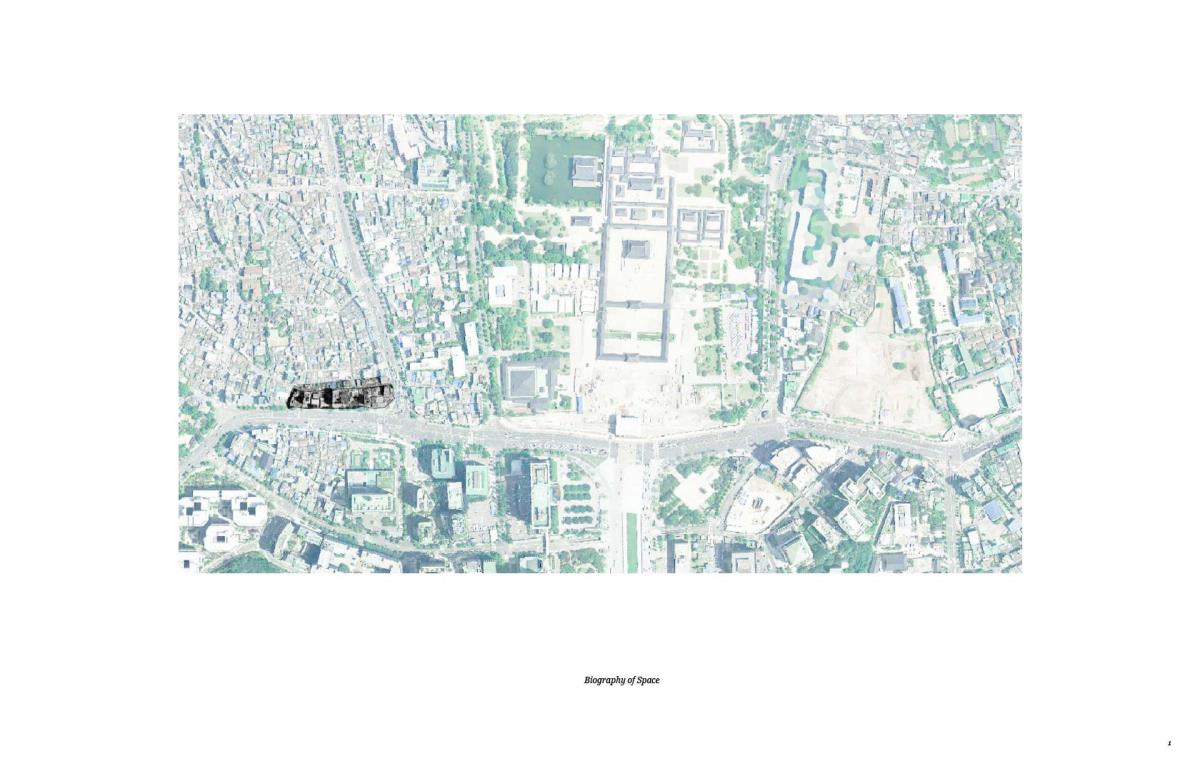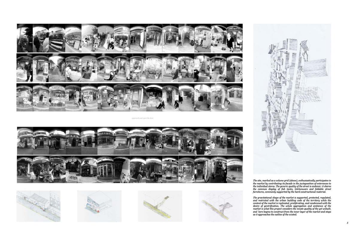 Biography of Space Part 1 Project 2015 So Young Lee Korea National University of Arts | South Korea The studio deals with ‘artificial space’ that had been abstracted and reinterpreted through human consciousness, either effectively or theoretically the space of artworks, cities and buildings. Because we are inevitably dependent on the unreliable nature of the senses for the perception of phenomena, perspective, in the form of photography for example, allows us to reproduce and indiscriminately deploy a simplified version of the real, a serviceable and universally applicable descriptive system that is both true and false.The site participates in the market by contributing its facade in the juxtaposition of entrances to the individual part of the whole. The generic quality of the street is found in market’s endemic display of fish tanks, kitchenware and foldable street furniture, supported by the common constructional material and method. The gravitational form of the market is supported, protected, regulated, and restricted with the urban building code of the territory while the content of the market is replicated, proliferating, and condemned with the desire of gentrification. The whole aggregation and ambience of the market is what this project considers the innate quality of the ‘yet unbuilt’, and here begins to construct from the inner layer of the market until it approaches the outline of the existed. Tutor(s) Jennifer Lee