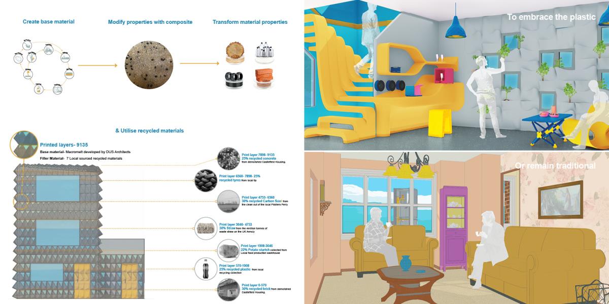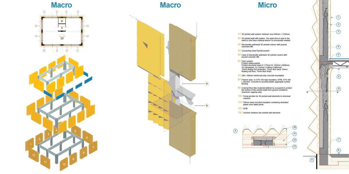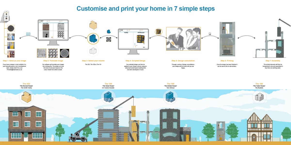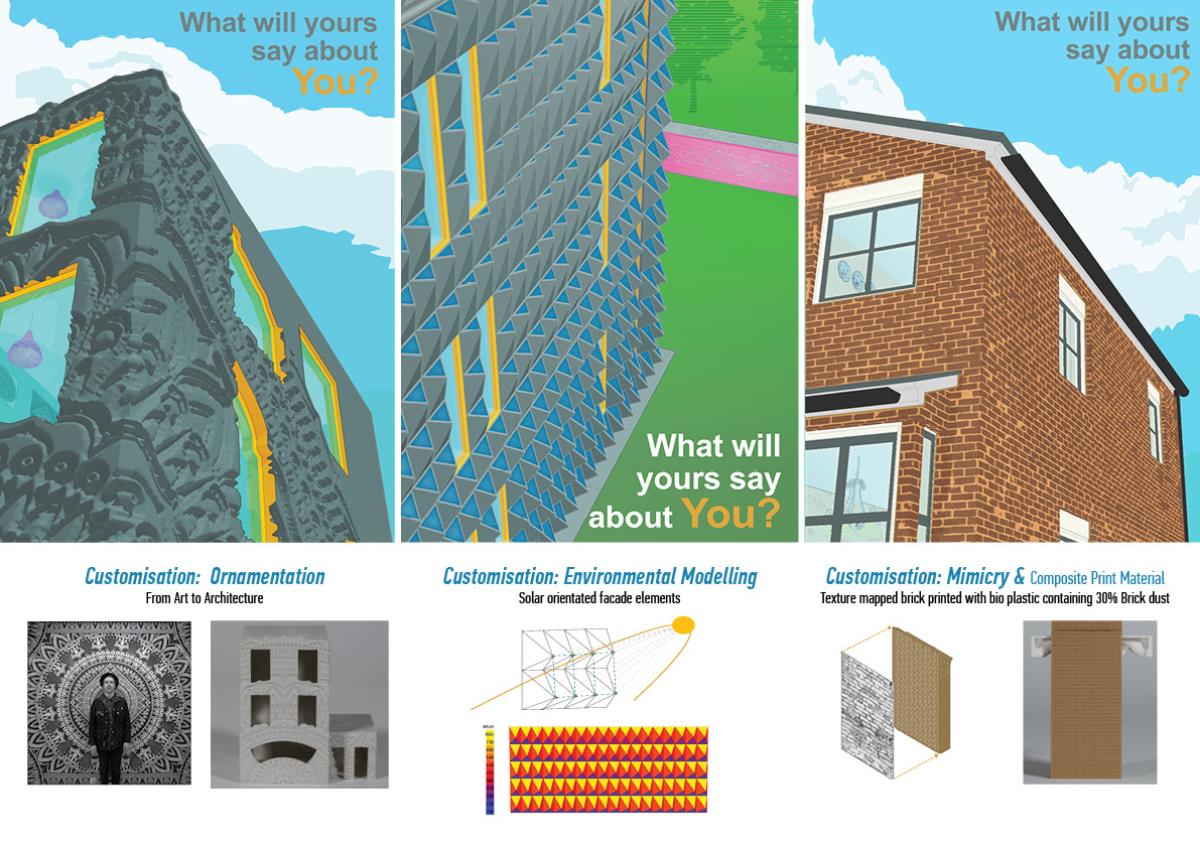 Stadmaker's PrintVille Part 2 Project 2015 Ben Robinson Manchester School of Architecture | UK 3D printing technology is billed as the technology of the third industrial revolution. It offers unprecedented levels of freeform design, whilst also being capable of democratising production technology by putting the control in the hand of the designers.So what if this technology was applied to a broken and stagnant field of housing construction?StadMaker’s Printville is a unique 3D printed & customisable housing system that utilises technology that has been developed by DUS Architects, the large scale 3D printer the KamerMaker. The system works by having a choice of 3 basic build volumes, all of which have the same structural and servicing strategy that take advantage of 3D printing to reduce material usage by up to 70%. Then using the proposed ‘StadMaker software’, the volumes can then be truly customised, this means that from 3 basic volumes truly unique housing solutions can be generated.This project is an initial prototype for the perceived concept, that through the use of 3D printing technology, houses with mass produced efficiency offer individual designs that can open up the market to offer affordable homes that are personal to us.So what will your 3D printed home say about you? Tutor(s) Richard BrookMr Tom Jefferies