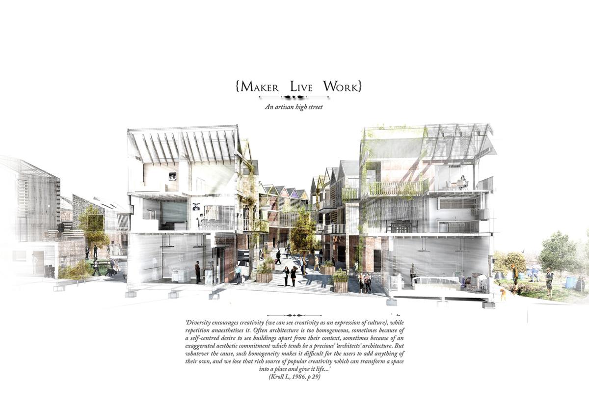 Situated in Knowle West, Bristol’s most deprived ward, the scheme has aimed to provide a community resource that will improve the skills and resilience of the area, as well as developing a framework to enable the production of affordable and diverse housing solutions through custom and self-build methods that distinctly opposes its homogeneous suburban context.
