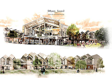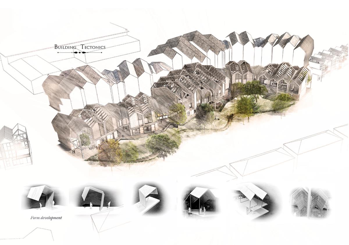 This approach has led to the evolution of a new kind of prototypical neighbourhood that expresses a more resonant connection with all aspects of the human condition and suggests a genuinely enriching approach to individual and communal life that reconnects residents to nature and the creative process in the creation and evolution of their homes.