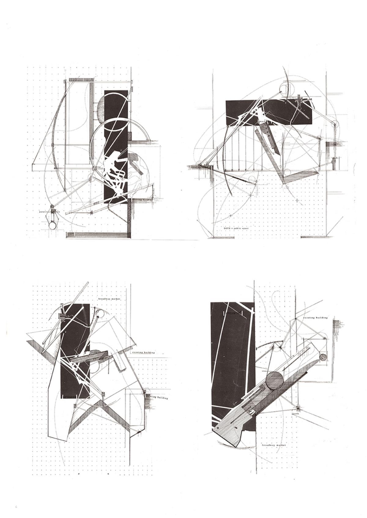Designing a Dialogue: The Market of Conversations Part 1 Project 2015 Ben Spong University of Brighton | UK Designing A Dialogue is a design/research based project into cybernetics, artificial intelligence and conversation theory. It is based on Broadway Market in the east end of London, a market that unfolds every Saturday allowing a vibrant atmosphere to emerge between the facades that frame it. This project aims to understand the dialogues that exist on Broadway Market between the owners, the buildings, the street and the occupants. Once understood it then weaves a new conversation through it, a new story, from which an architectural language and response is developed.It’s a story that drives the project, a story of two people how they perceive the market and how the buildings respond to them. The conversations we have with buildings everyday that are usually implicit in the way we use them, suddenly become extremely obvious and explicit. Both characters gradually begin to become aware of one another, and through a series of three building proposals they eventually learn more about one another and about the market they are in dialogue with. They wander to a new understanding of space and their own role in the creation of it. Tutor(s) Kyriakos Katsaros Stefan Lengen
