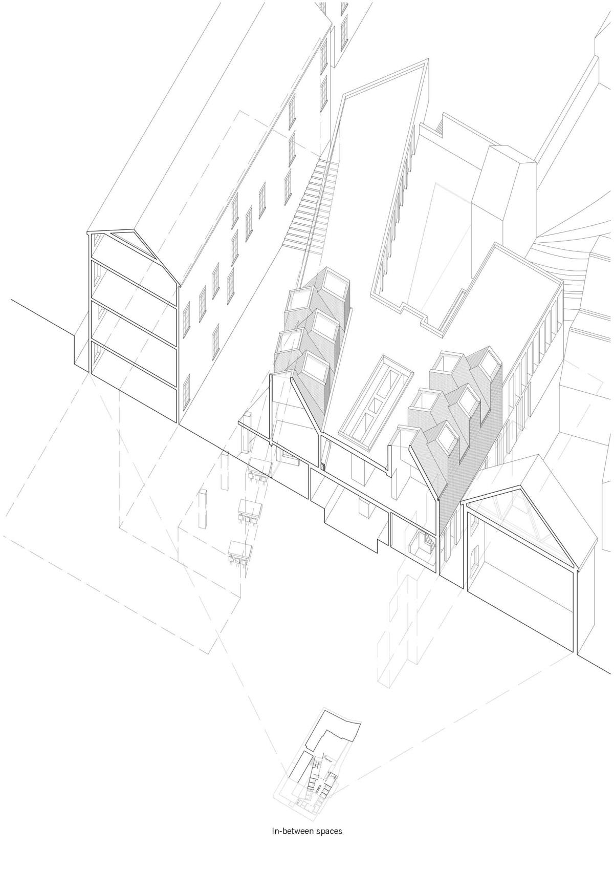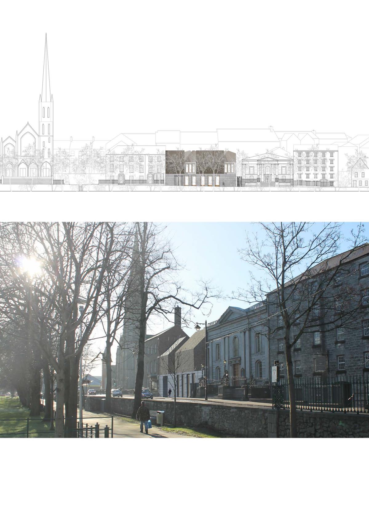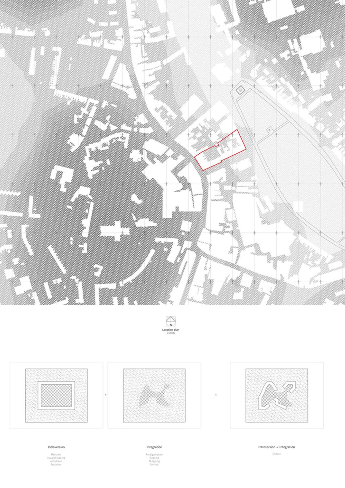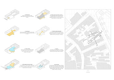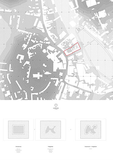 Armagh Hospice Part 1 Project 2015 Niall Quinn Queen's University Belfast | UK The project is a hospice for the terminally ill in Armagh City. The site is a backlands plot, an informal courtyard to a Georgian masonry, stone and stucco city block. By its nature, the backlands plot is intensely overlooked by the individual buildings of the block. The returns of the perimeter buildings were developed in a non-harmonious way, the lack of rapport lead to a free-for-all of new extensions and fenestrations. To propose a hospice, a place of intimacy and intended tranquility, in this site is a flawed scheme to begin with but it is a curious challenge. The height and various windows of the context starve the hospice of the required daylight and privacy. Public functions such as the therapeutic pools, dining areas and entrances further invade the privacy. The programme is organised so that all intensely private areas are on the upper levels. The bedrooms of the hospice are articulated in such a way that direct and indirect light is always present from above. However, horizontal windows are operated by folding shutters to deal with the privacy issues. The project was restrained by the context that it pushed and pulled to accommodate the preferences. Tutor(s) Conor Sreenan