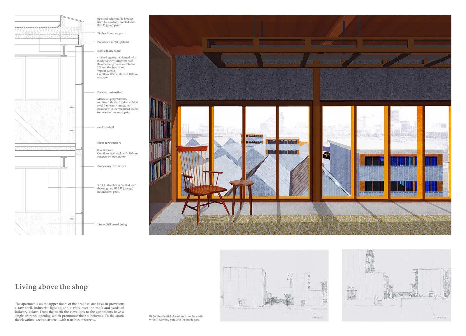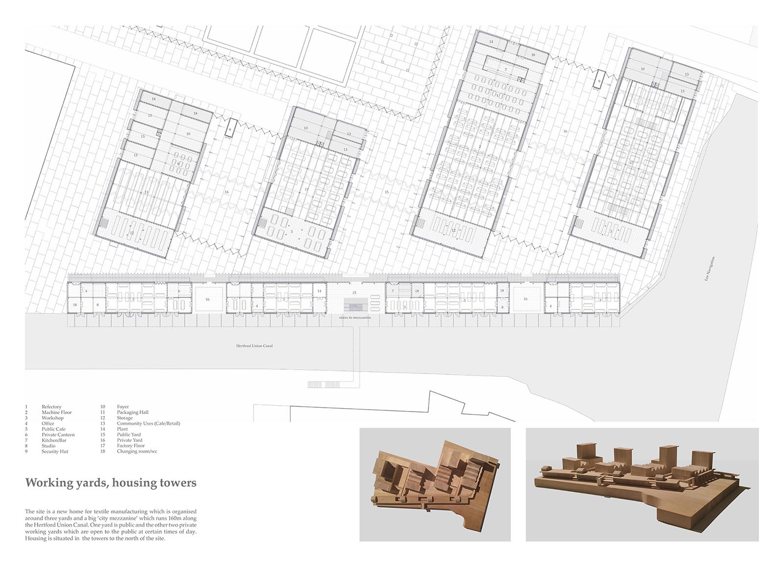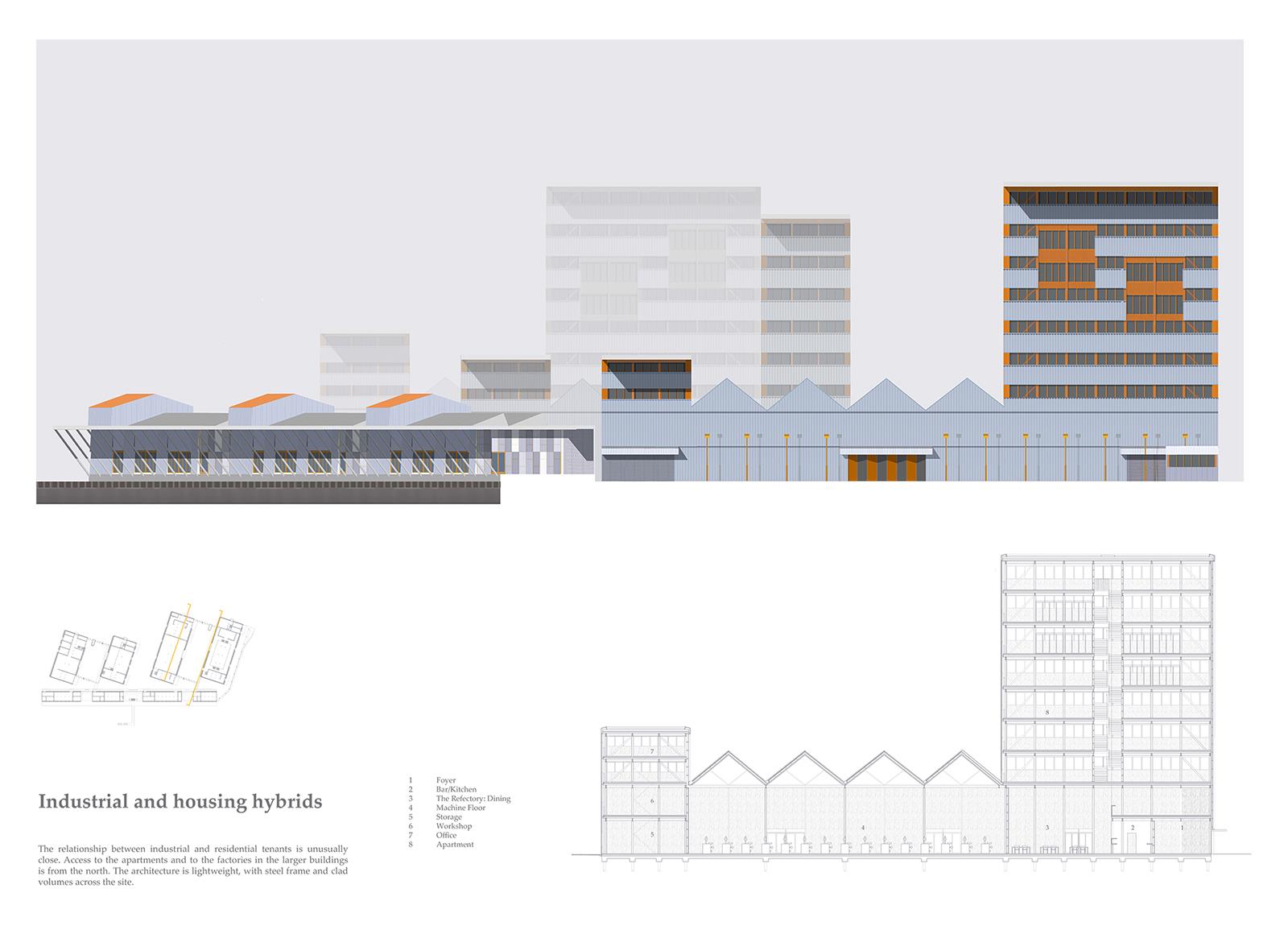 Loose City Part 2 Project 2016 Johnny Poland London Metropolitan University | UK London is losing its industrial space in a profit-focussed race to address the housing crisis. Loose City is a proposal for a mixed city quarter in Fish Island, Tower Hamlets in which industry and housing sit closely together to form a vibrant neighbourhood. The buildings are not precious; they incorporate standardised and affordable construction components. The richness of the scheme is felt in its style, overall layering and variety. Tutor(s) Rod Heyes Peter St John