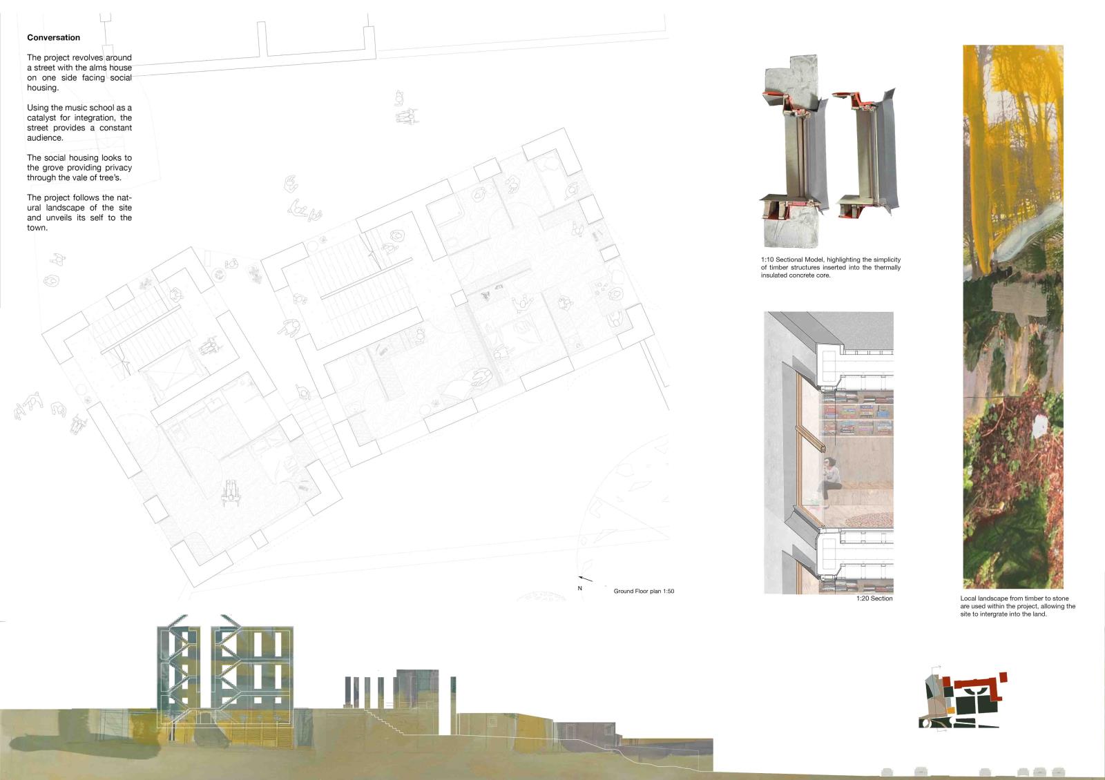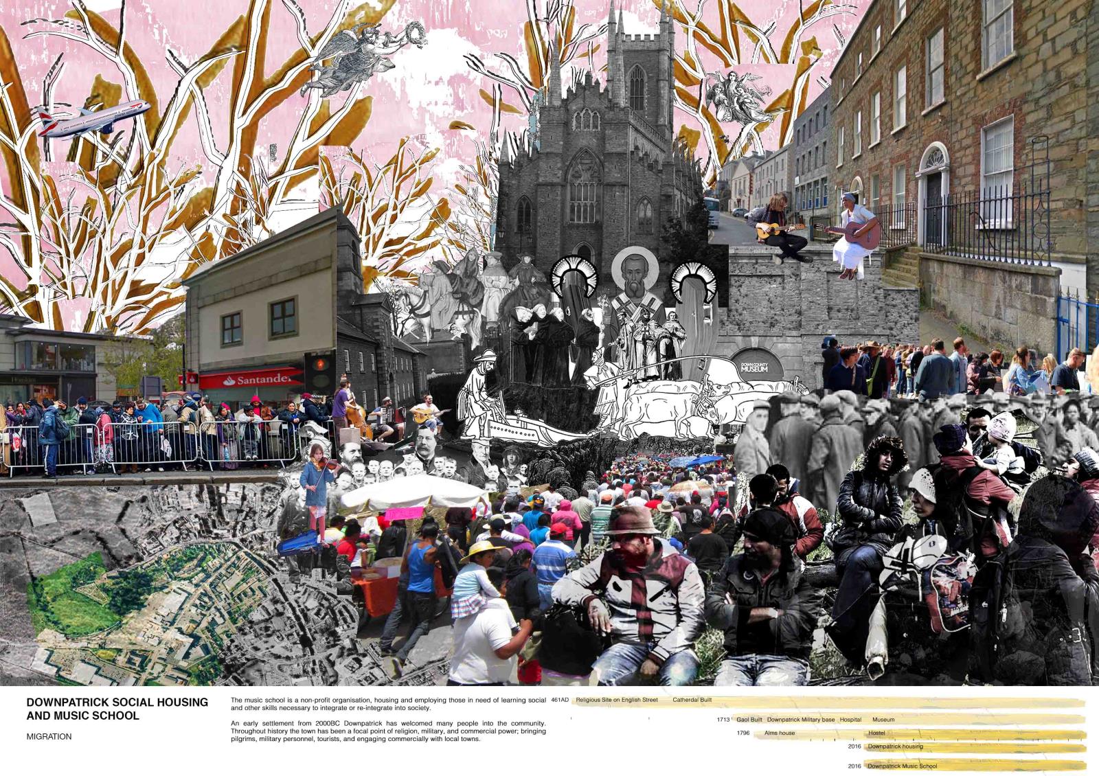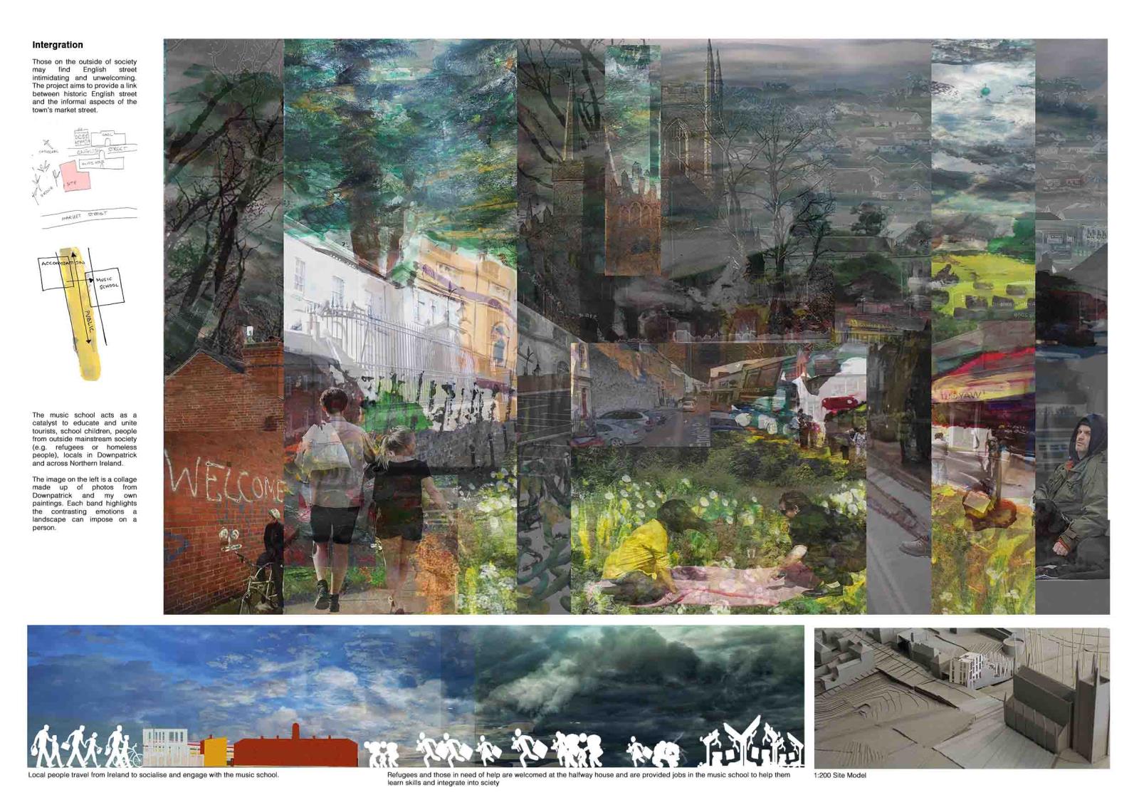 Downpatrick Social Housing and Music School Part 1 Project 2016 Holly Dale Queen's University Belfast | UK The Downpatrick music school is a non-profit organisation in Northern Ireland, housing and employing those in need of learning social other skills necessary to integrate or re-integrate into society. The music school acts as a catalyst to educate and unite tourists, school children, people outside of main society, locals in Downpatrick and across Northern Ireland. Tutor(s) Mr Nigel Murray