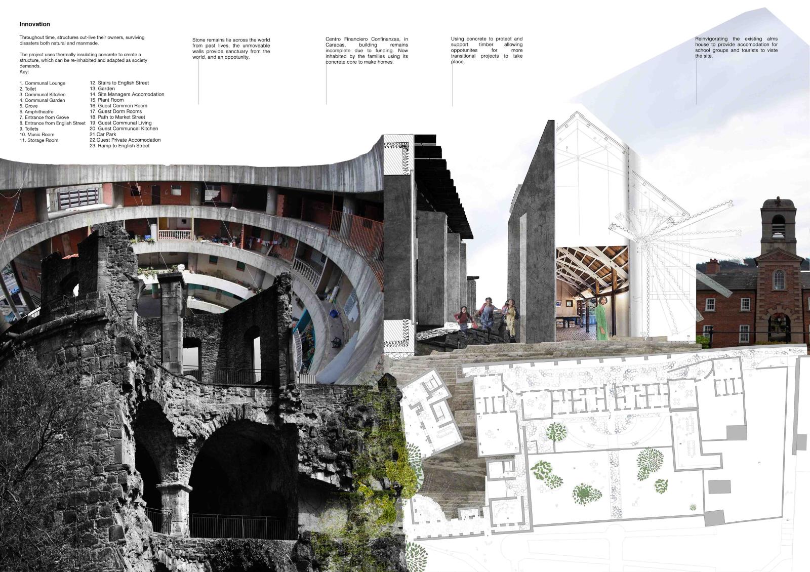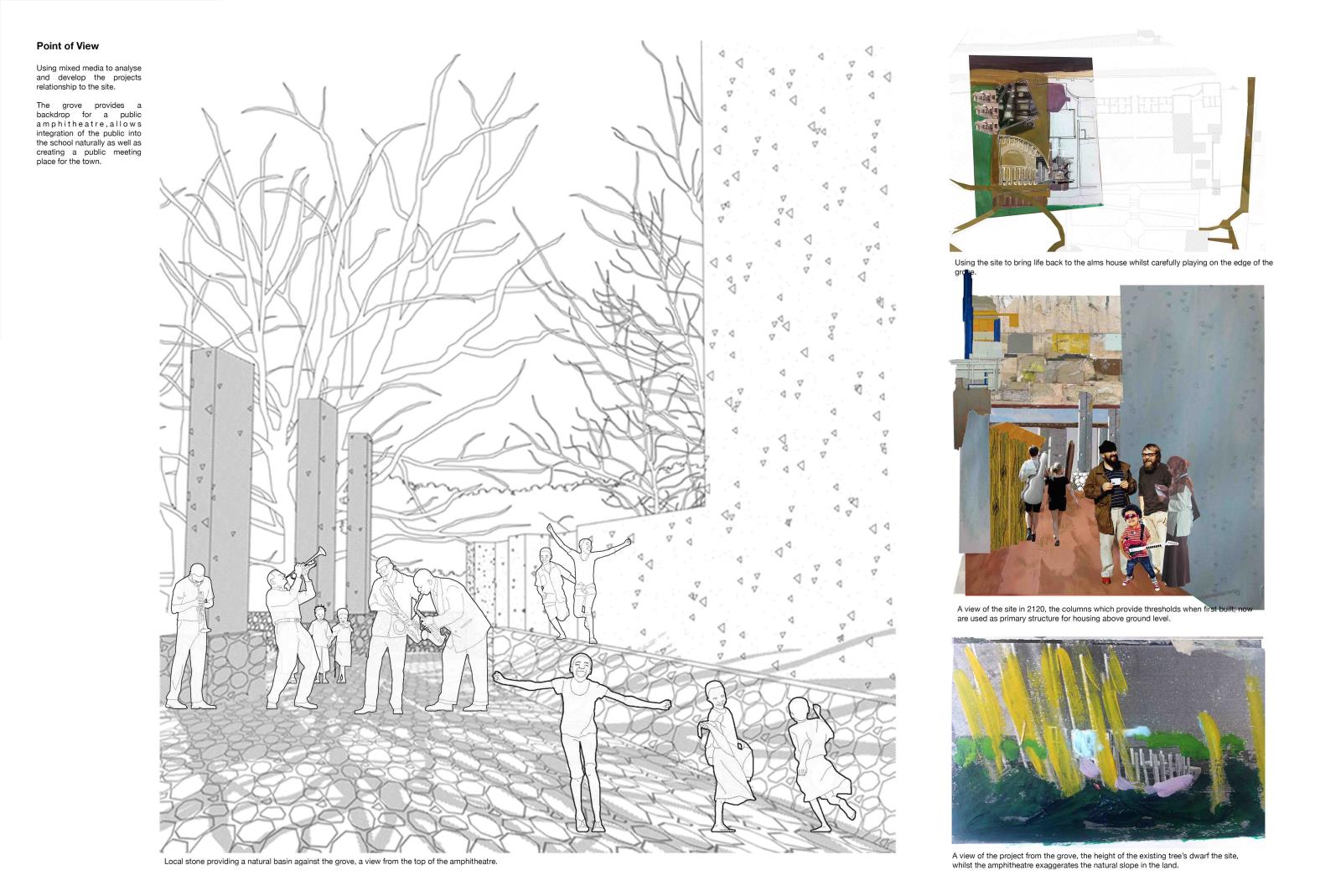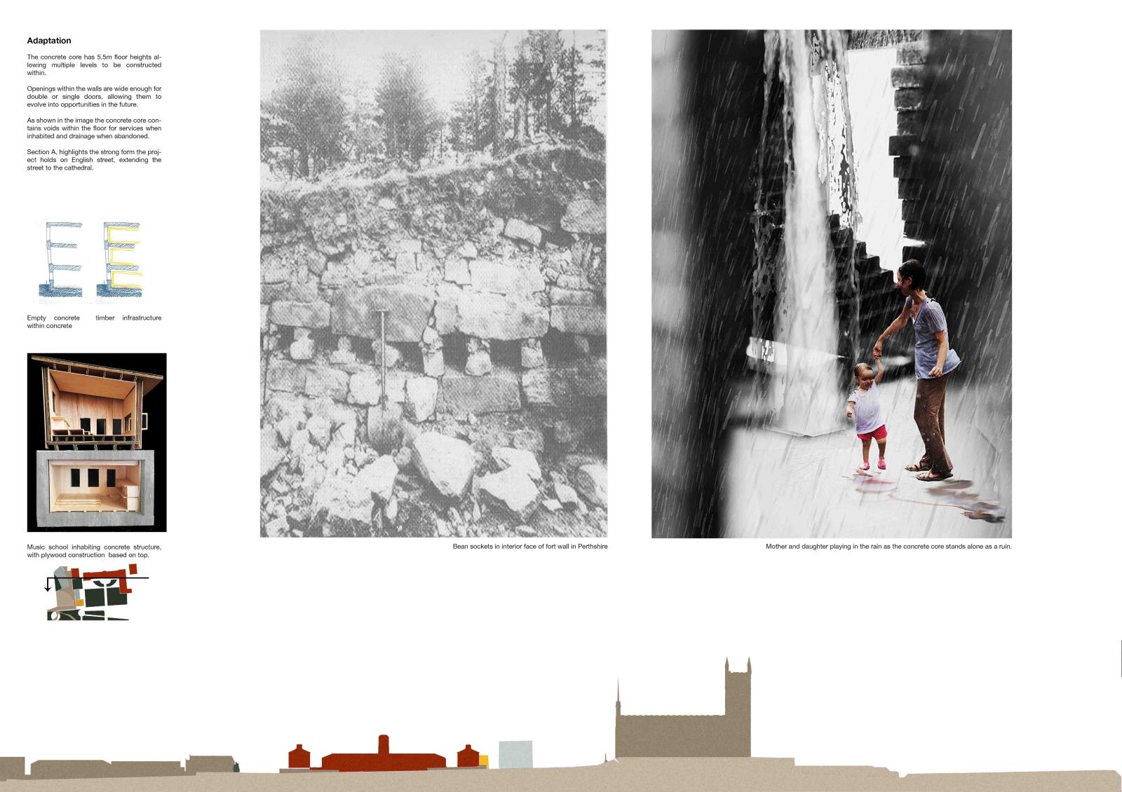 Downpatrick Social Housing and Music School Part 1 Project 2016 Holly Dale Queen's University Belfast | UK The Downpatrick music school is a non-profit organisation in Northern Ireland, housing and employing those in need of learning social other skills necessary to integrate or re-integrate into society. The music school acts as a catalyst to educate and unite tourists, school children, people outside of main society, locals in Downpatrick and across Northern Ireland. Tutor(s) Mr Nigel Murray