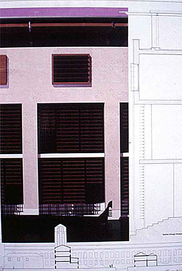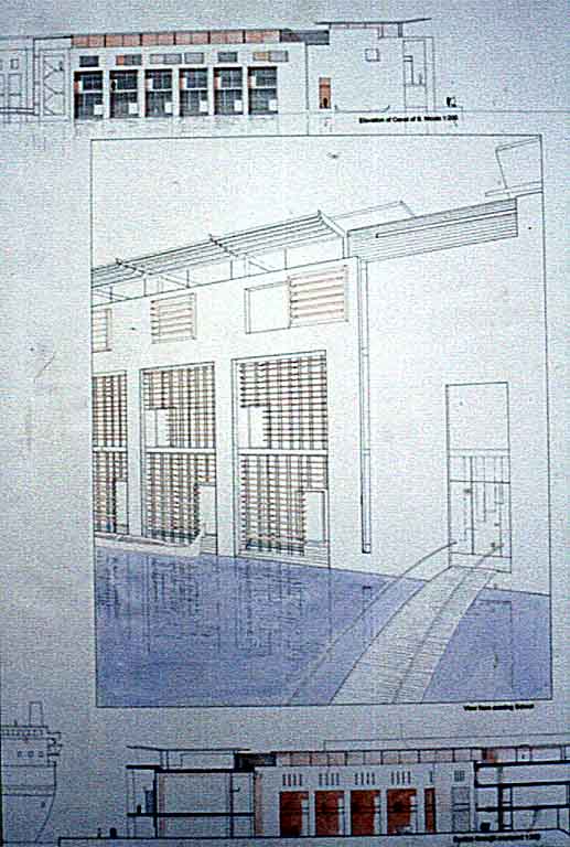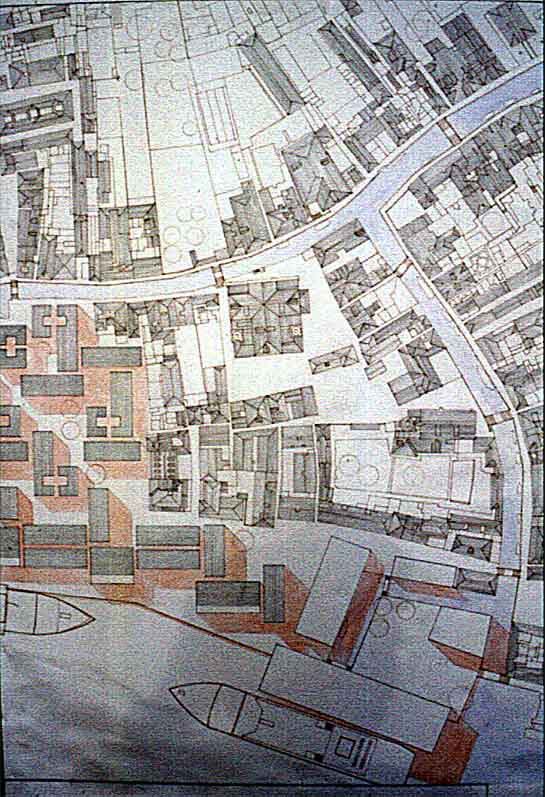 Craft School in Venice Part 2 Project 2000 James Munro University of Portsmouth | UK My dissertation entitled "Material Mannerism - The Spiritual Craft of Carlo Scarpa" dealt with the methods of incorporating craft and traditional influences into modern architecture. My thesis uses the polarities of the cellular quality of traditional crafts found in Venice and the more global forces of tourism as a starting point to solve the city's dilemmas.The urban strategy for my site proposes a high level density mix of housing, retail, office and research type buildings. Drawing on the influence of Le Corbusier's hospital scheme for Venice, a series of urban blocks set in a pin wheel grid, form a new edge to the city and create new public spaces.The form of the craft school is influenced by the Venetian Palazzo Ducale, and by the Palazzo Congressi scheme by Giuseppe Terragni which proposed a public loggia on the piano noble. The building is conceived as a naturally ventilated, concrete framed building with a veneered skin of stucco and marble applied in reference to the process Ruskin termed encrustation. The scheme incorporates craft workshops, lecture rooms and public accommodation, grouped around a canal, with a public front facade acknowledging the docking of cruise ships. Using the site for the recent architecture school competition in Venice, his thesis project created an urban proposition for the site based on the staggered grid that can be identified in Venice and in particular Le Corbusier's Venice hospital plan, providing a new housing quarter. To one end of the site, a new international conference centre is planned, while at the other, a craft school is provided which was taken to a greater level of detail. This provided a true thesis in its scope, ambition and depth.