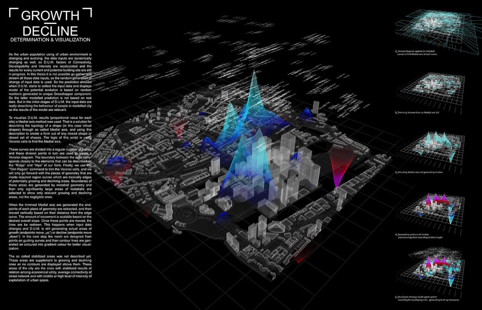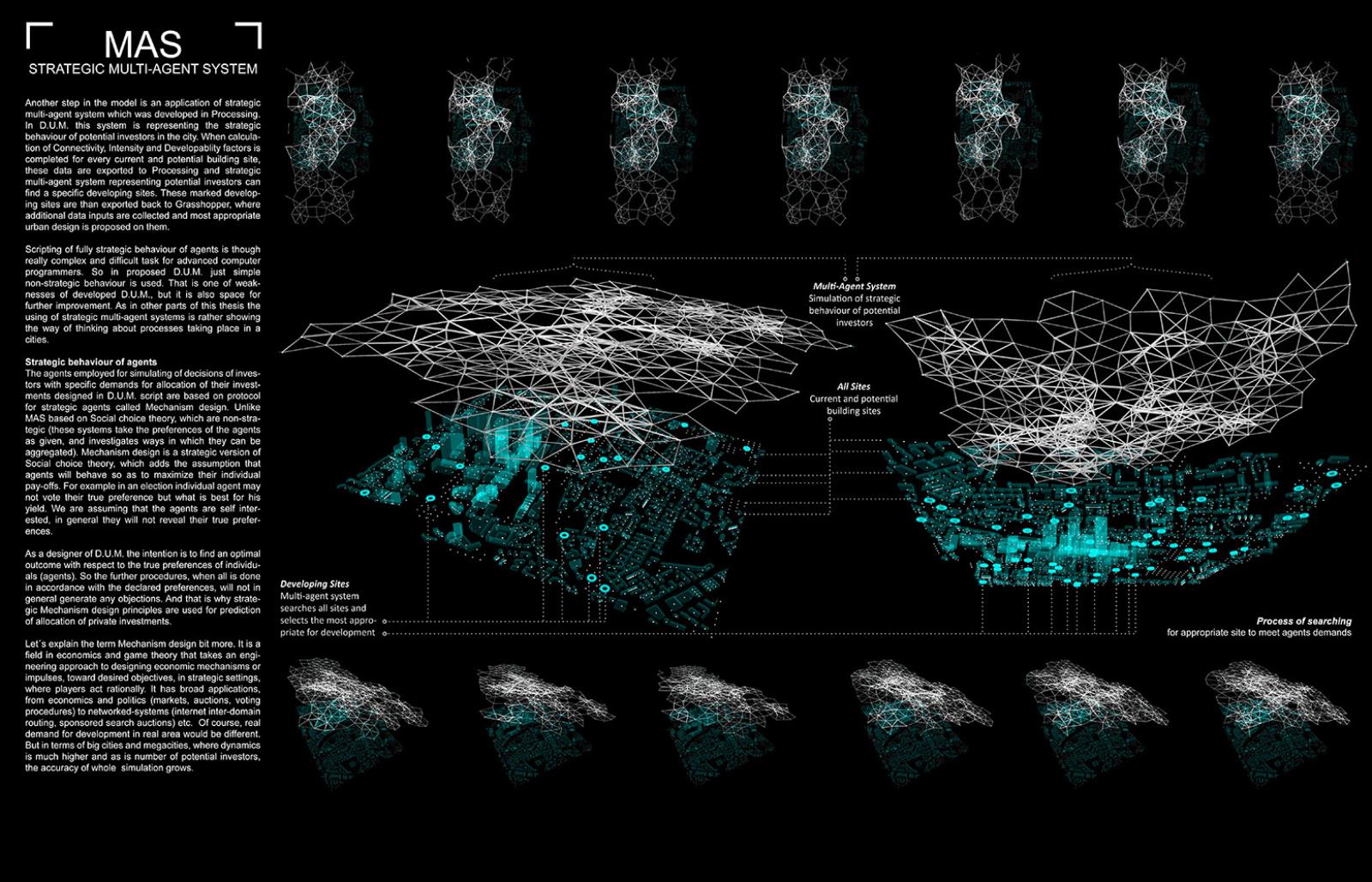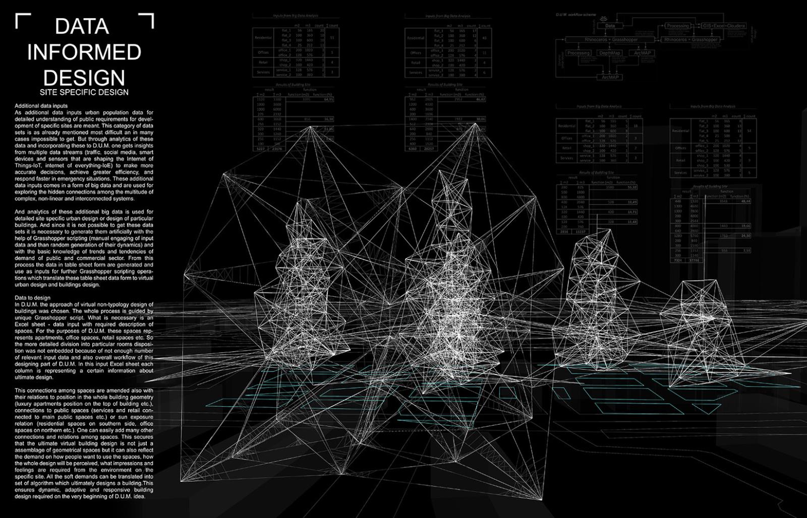 Responsive urban model which proceeds from actual requirements of urban population. From demands of residents, labourers and visitors of specific localities. All these individuals and groups leave a continuous virtual footprint through their behaviour and acting in cities. With the help of this proposed model – D.U.M. – it becomes possible to read these virtual breadcrumbs, understand behaviour of urban populations and translate it to prediction and suitable virtual site specific design.