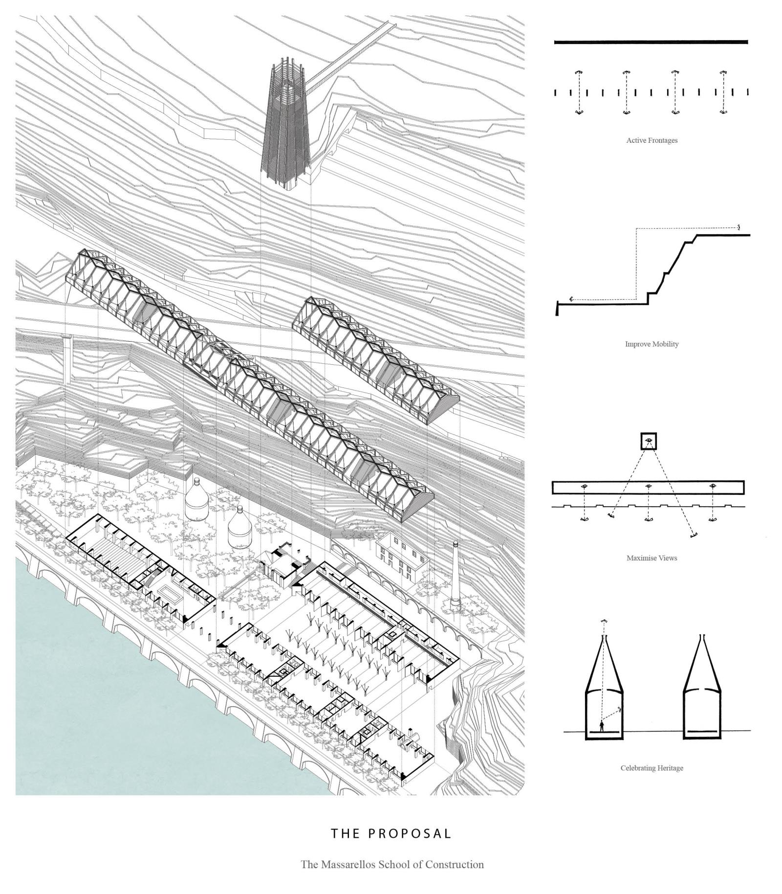 [Re]-Constructing Porto: The Massarellos school of construction Part 2 Project 2016 Michael Lewis University of Bath | UK The city of Porto is slowly crumbling away. Today 32% of the city centre is in a state of decay. In response, The Massarellos School of Construction provides students with the necessary skills to successfully rehabilitate the city’s sensitive urban fabric.Set amongst the derelict remains of a former factory, it draws influence form historic warehouses and local Portuguese buildings, becoming a model for creative reuse and sustainable construction. Tutor(s) Anne ClaxtonMr Alex Wright
