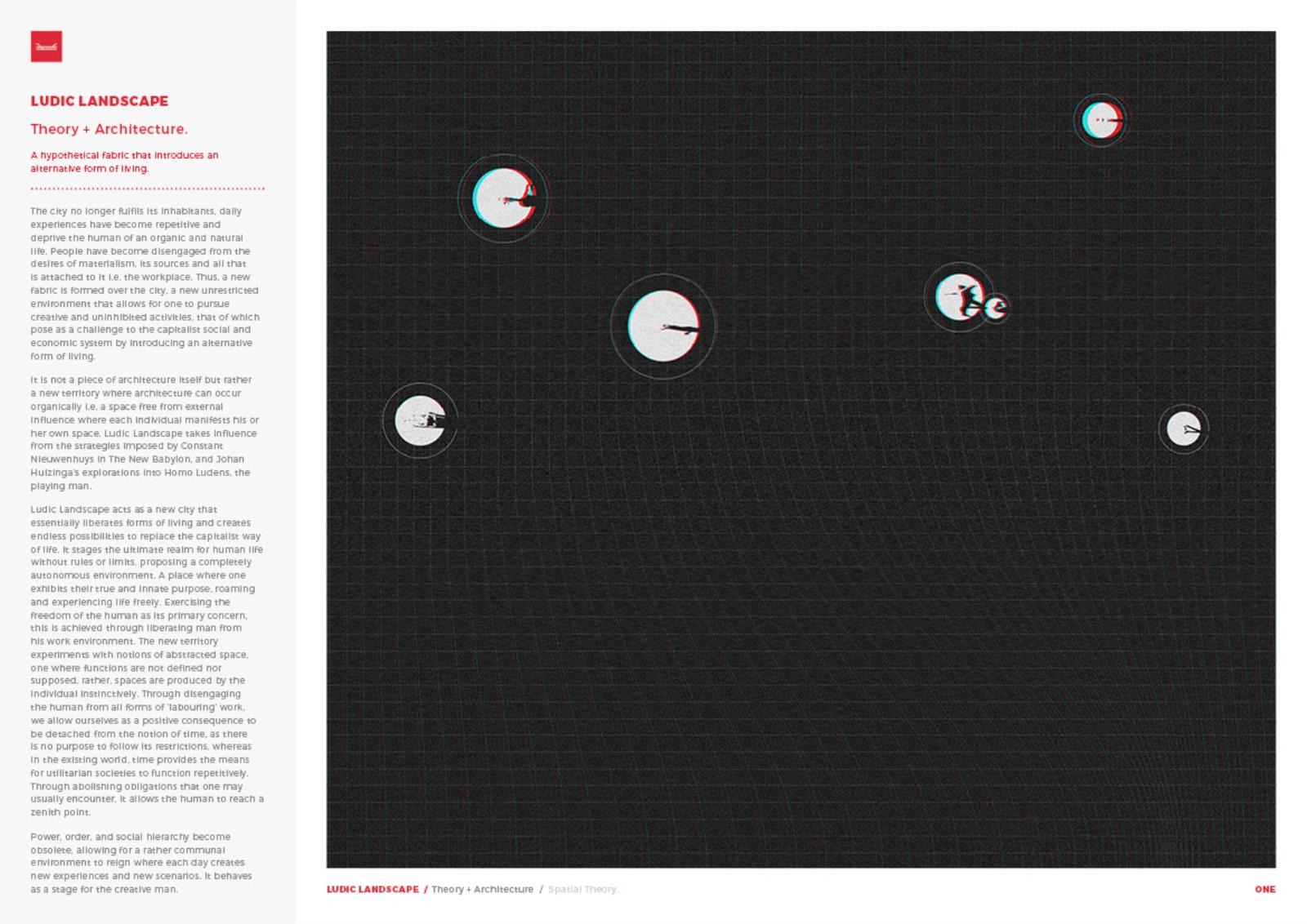 Ludic Landscape - A hypothetical fabric that introduces an alternative form of living. Part 1 Project 2016 Emraan Mayow Birmingham City University | UK The city no longer fulfills its inhabitants, daily experiences have become repetitive and deprive the human of an organic and natural life. People have become disengaged from the desires of materialism and its sources. A new fabric is formed over the city, one that allows for one to pursue uninhibited activities that of which pose as a challenge to the capitalist social system by introducing an alternative form of living. Tutor(s) Matt Lucas