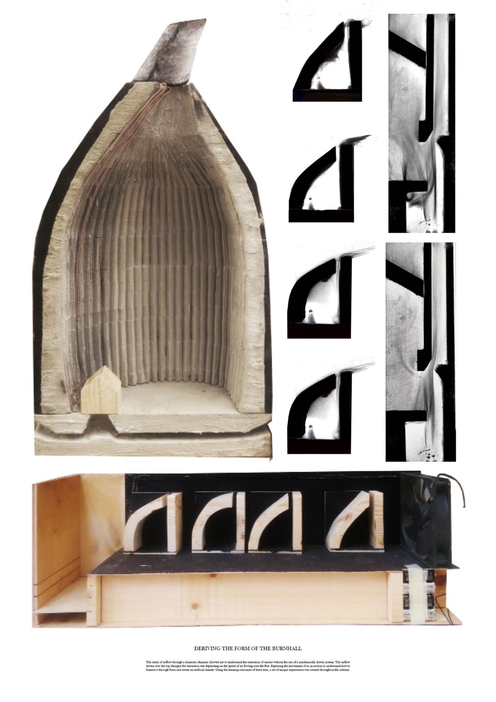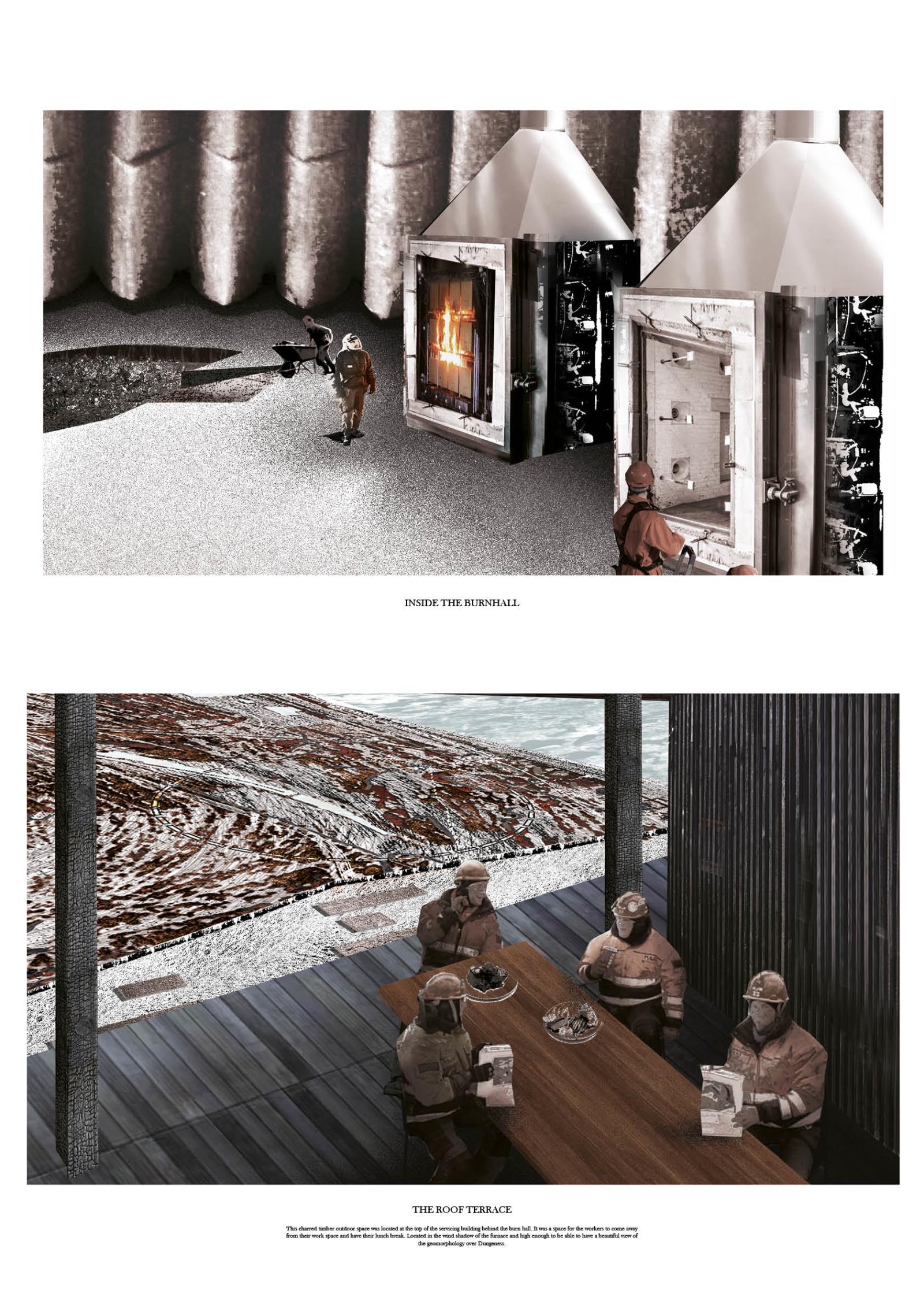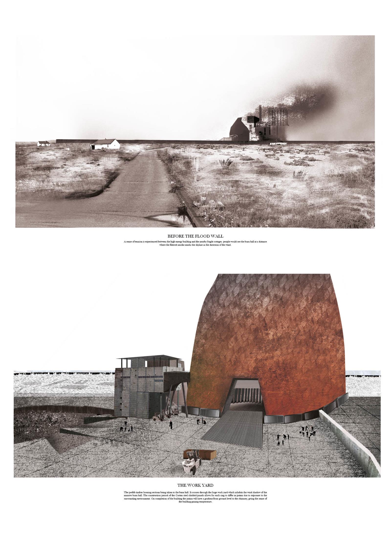 The Dungeness Burnhall Part 1 Project 2016 Mohammed Awadalla Cardiff University | UK The project proposes to invent a way of harnessing nature to create a more sustainable answer in architecture. It focuses on fire-testing, where enormous amounts of energy are wasted as by-products of test-burning materials. It looks at harnessing natural processes through artificial means, specific to its surrounding site which allows for this opportunity due to its unique environmental conditions. Tutor(s) Peter Salter
