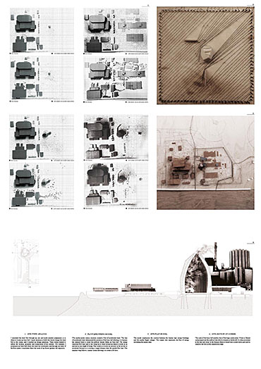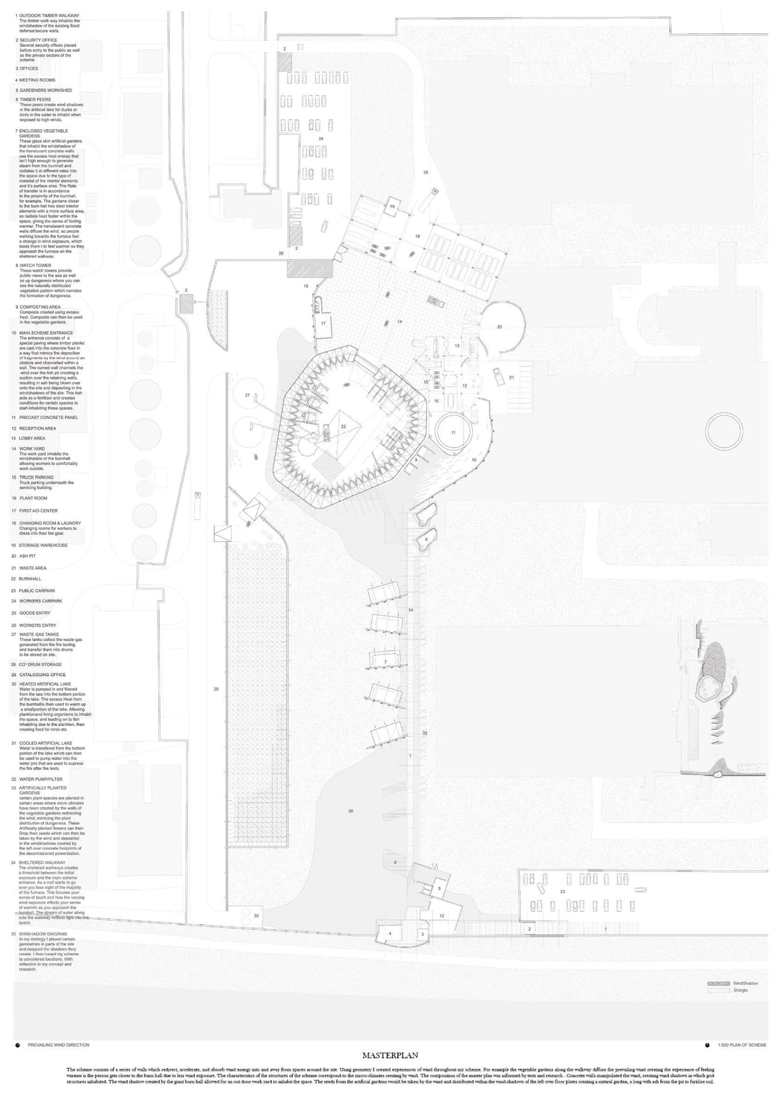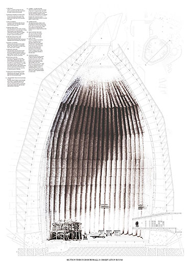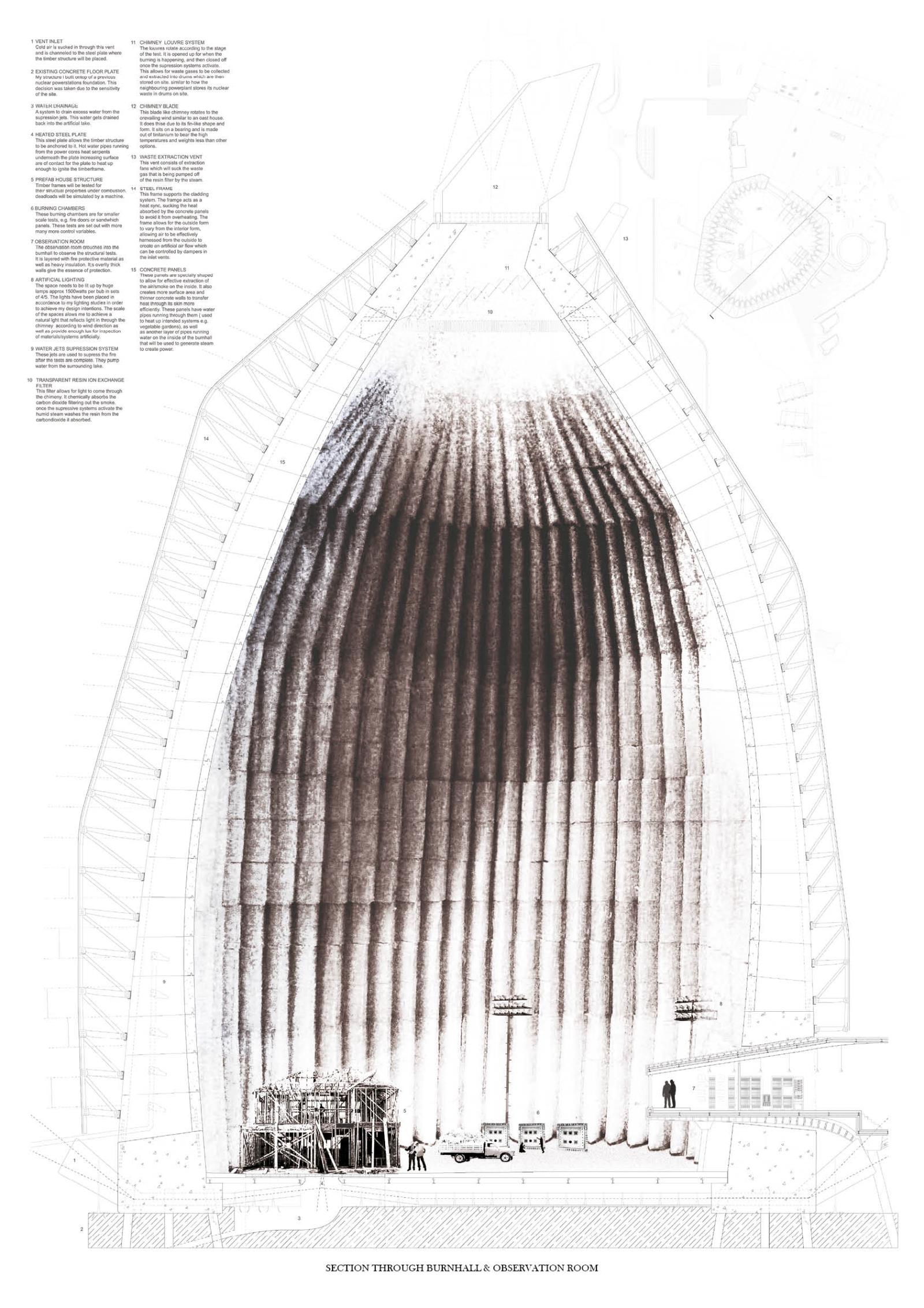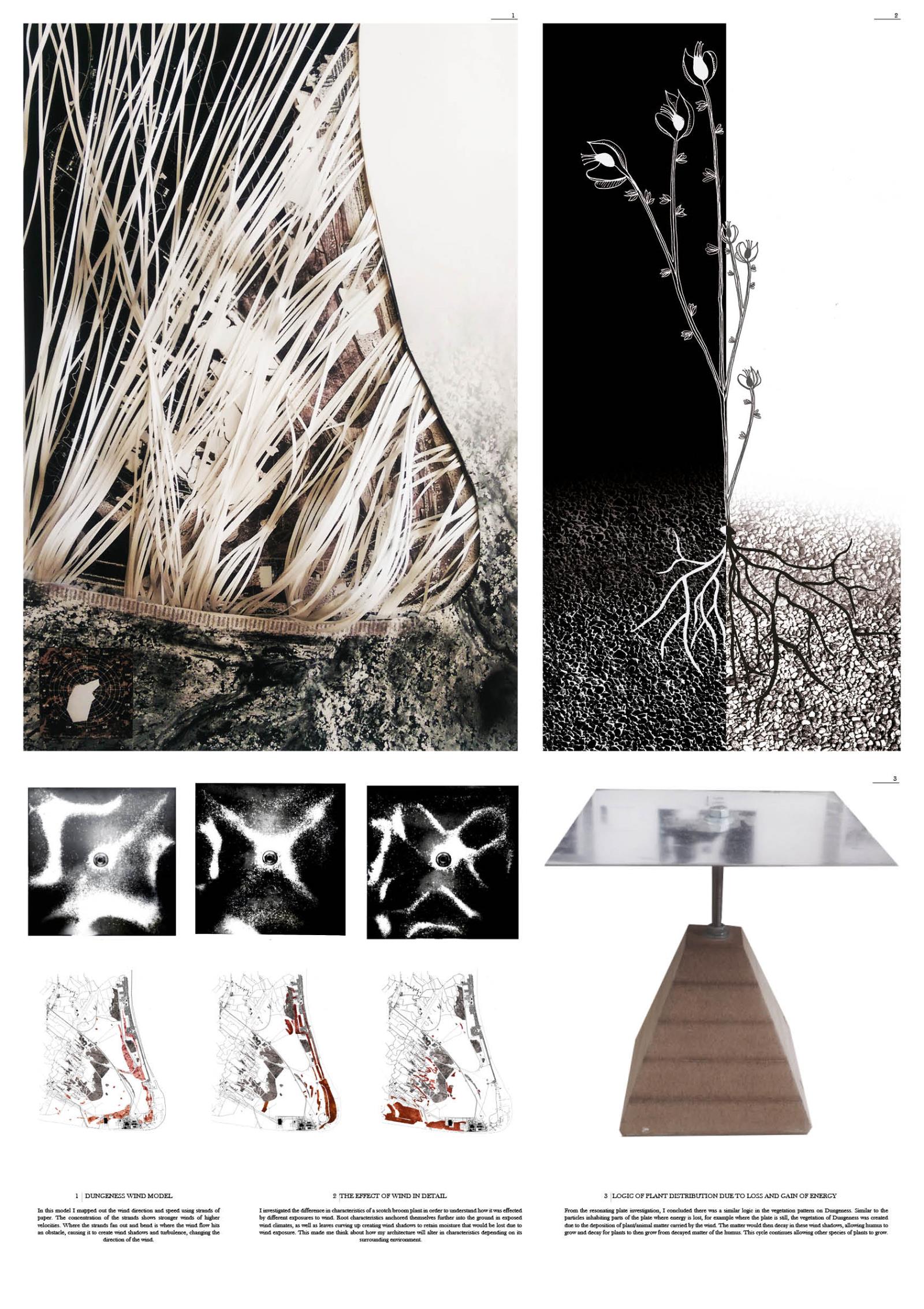 The Dungeness Burnhall Part 1 Project 2016 Mohammed Awadalla Cardiff University | UK The project proposes to invent a way of harnessing nature to create a more sustainable answer in architecture. It focuses on fire-testing, where enormous amounts of energy are wasted as by-products of test-burning materials. It looks at harnessing natural processes through artificial means, specific to its surrounding site which allows for this opportunity due to its unique environmental conditions. Tutor(s) Peter Salter