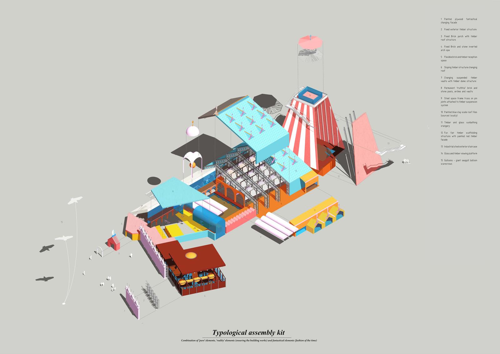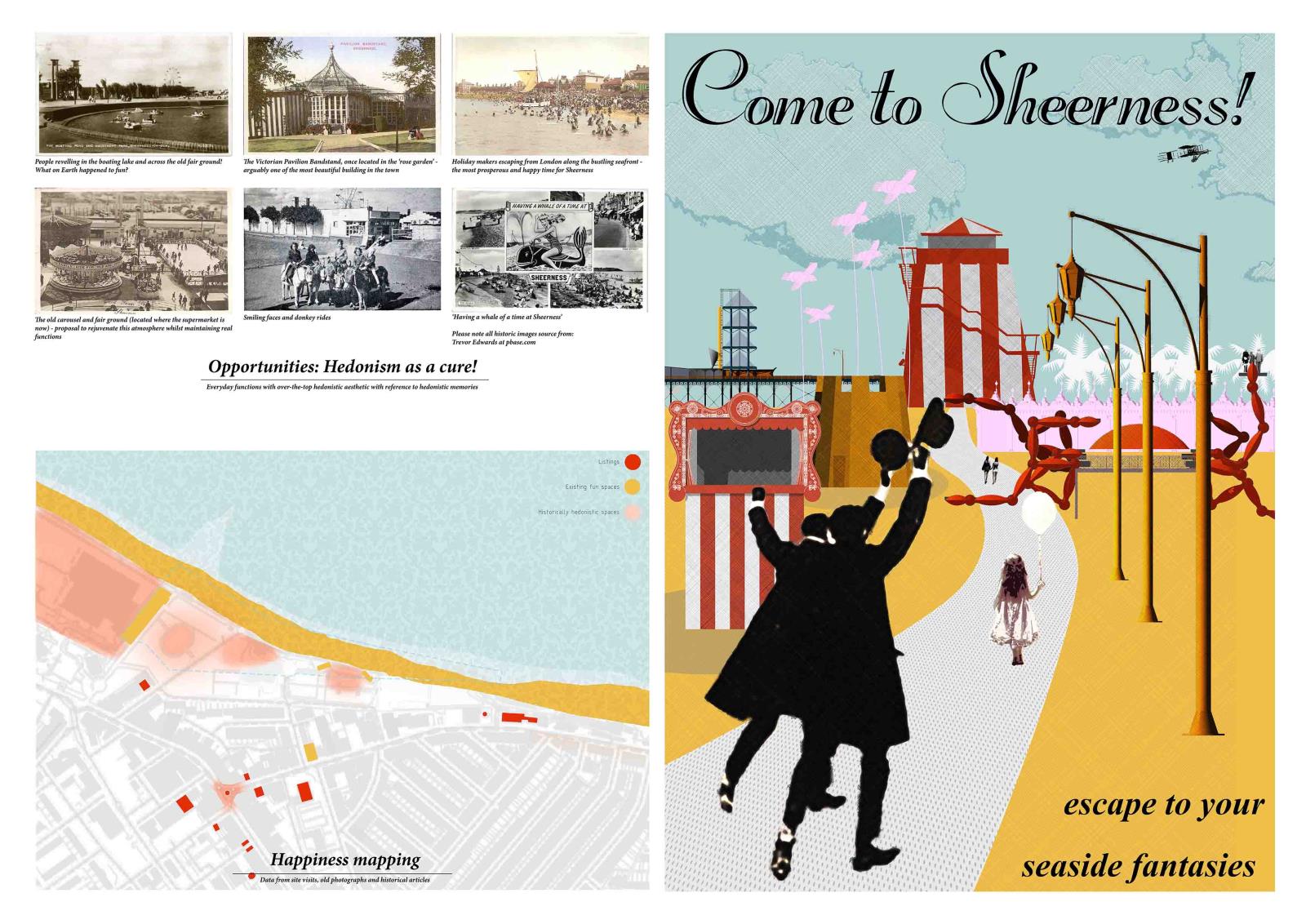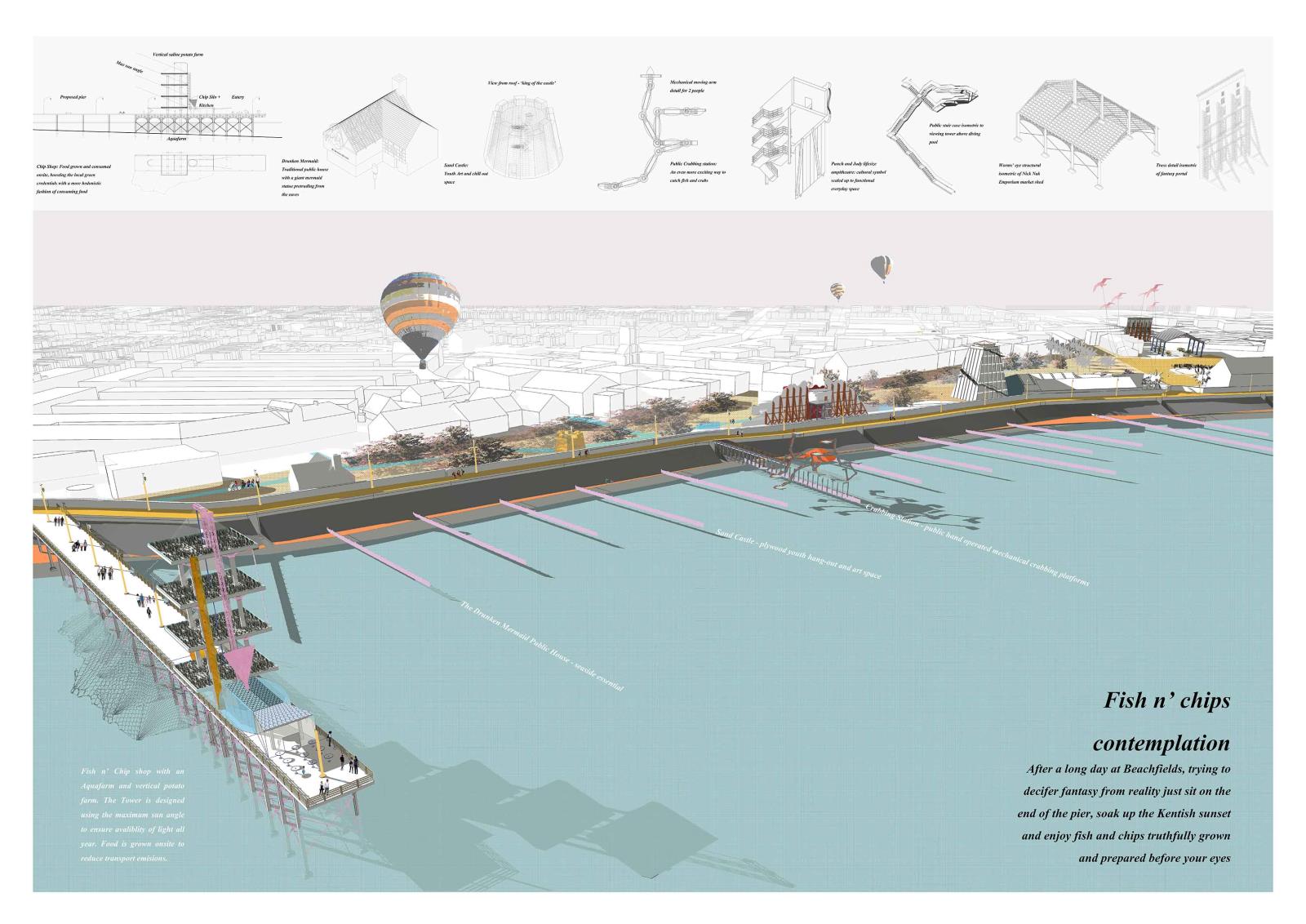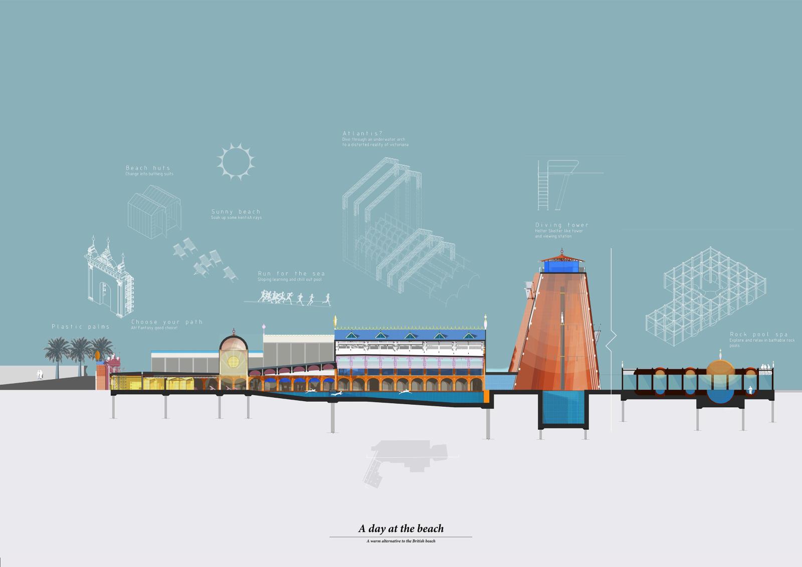 Beachfields Reality Fair Part 1 Project 2016 Benjamin Nourse University of Kent | UK Beachfields reality fair is a dual function proposal, aiming to amalgamate social reconstruction (reality) and the economic requirement for increased tourism (fantasy). It proposes hedonism as a solution to social deprivation. It is a journey, of what is real and what is fantasy – that is, until all is revealed with clear view and a portion of Kentish fish and chips. Tutor(s) Imogen Lesser