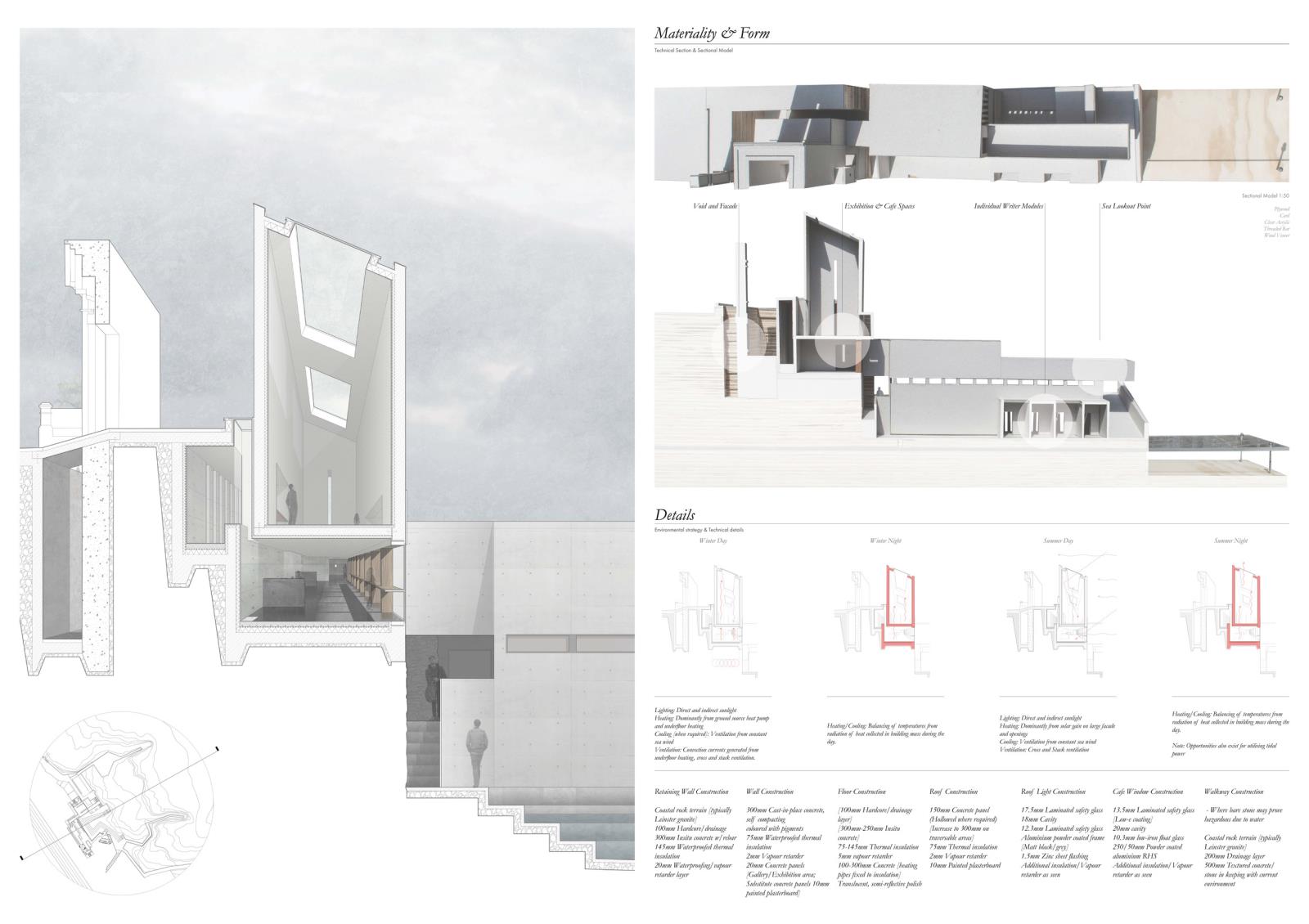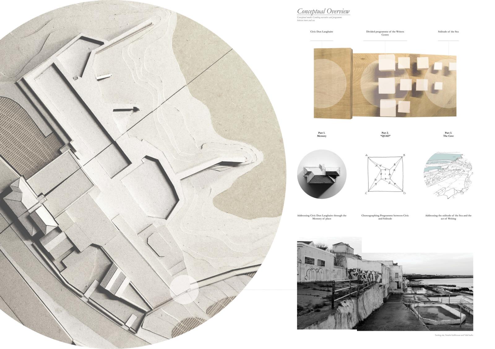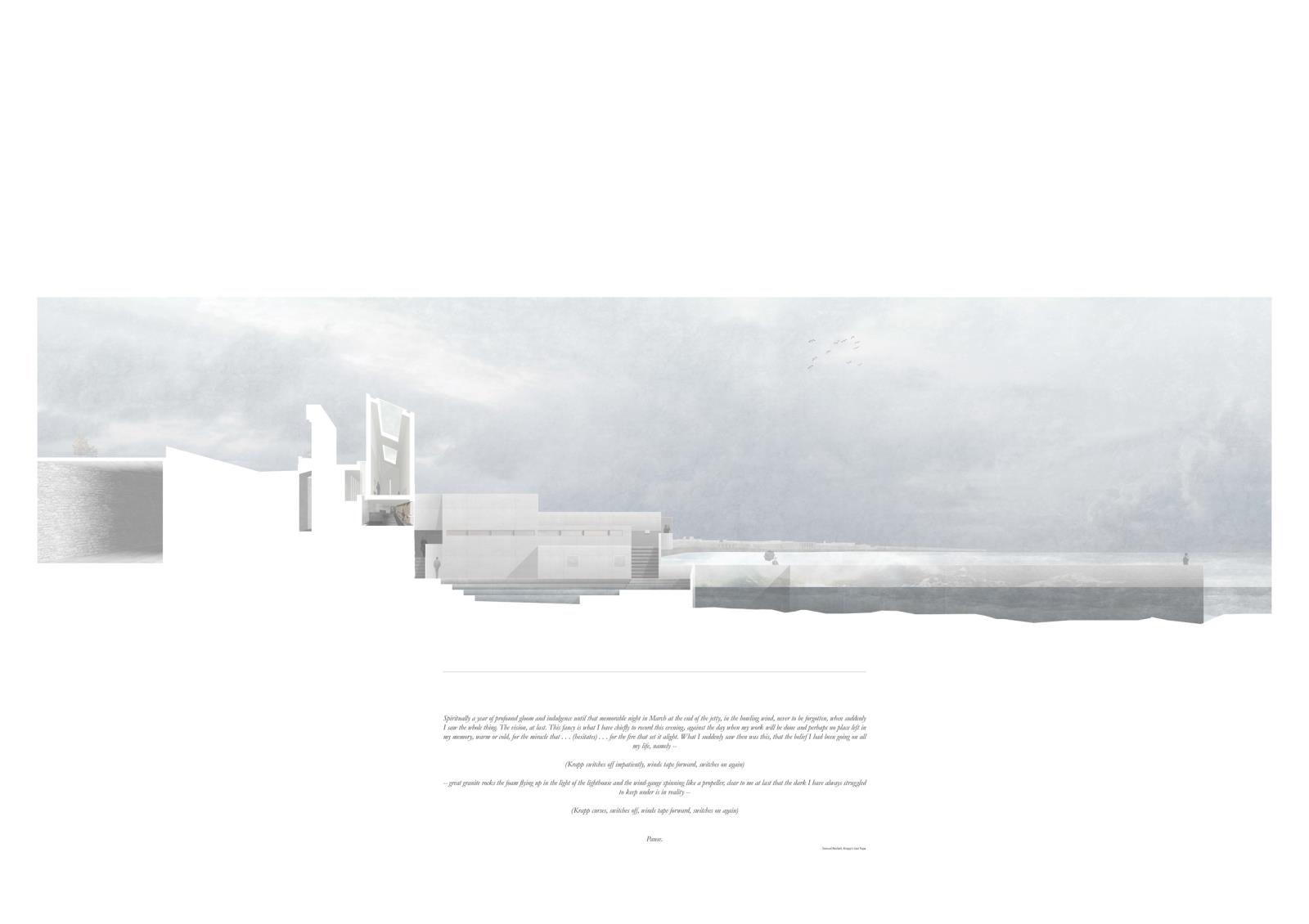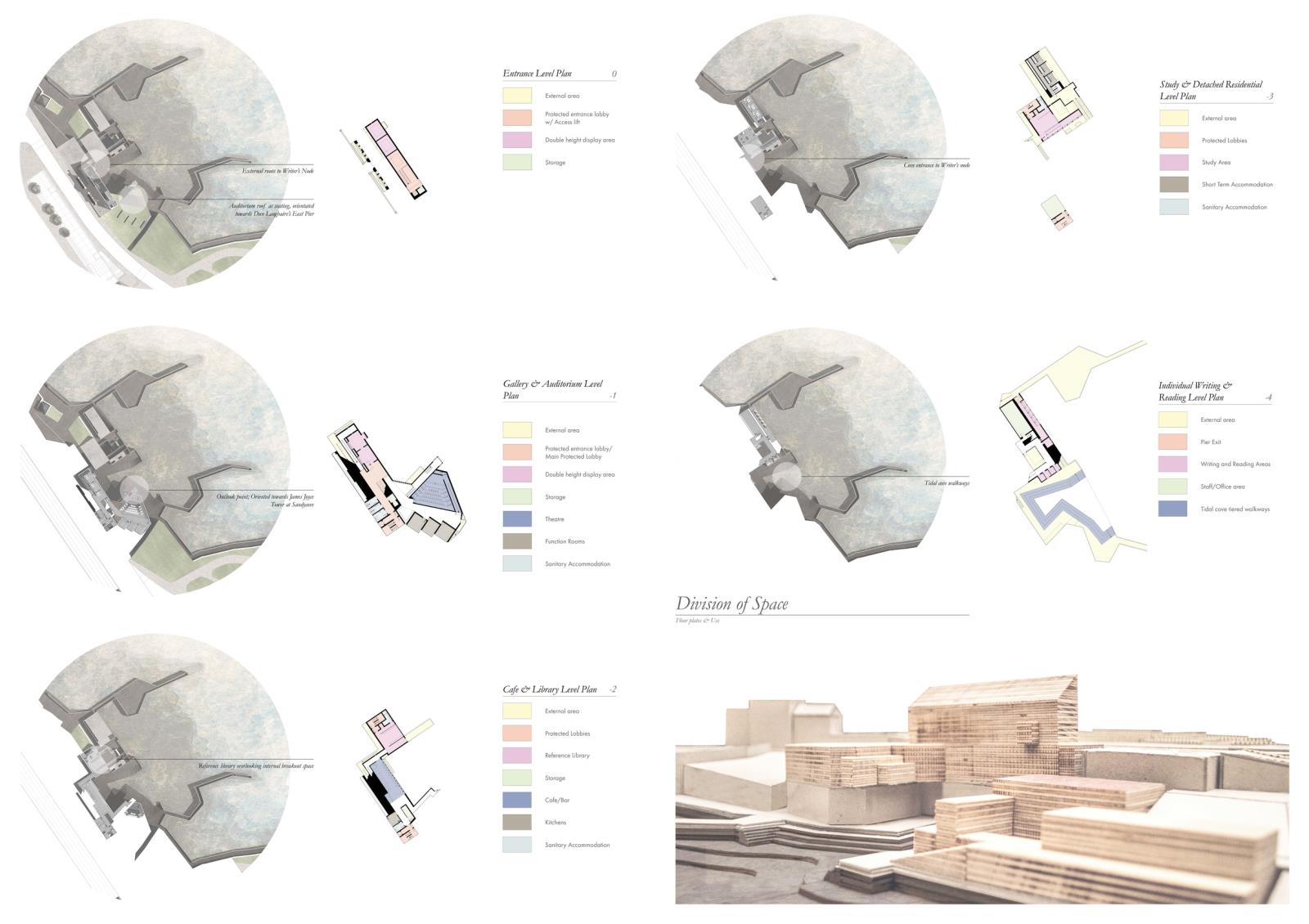 The Writers Cove: Samuel Beckett’s QUAD Part 1 Project 2016 Callum Holgate Ulster University | UK The Writers Cove is a centre for writers, performers, tourists and locals on the Dun Laoghaire coastline, Dublin. By selectively subtracting elements of the derelict Victorian bathhouse site, the centre creates a small, hidden cove between the busy townland and the rough Irish Sea. Each user group is offered a uniquely tailored journey, generated through an adaption of Samuel Beckett’s screenplay “Quad,” which reacts to context and local writing heritage. Tutor(s) James Luke