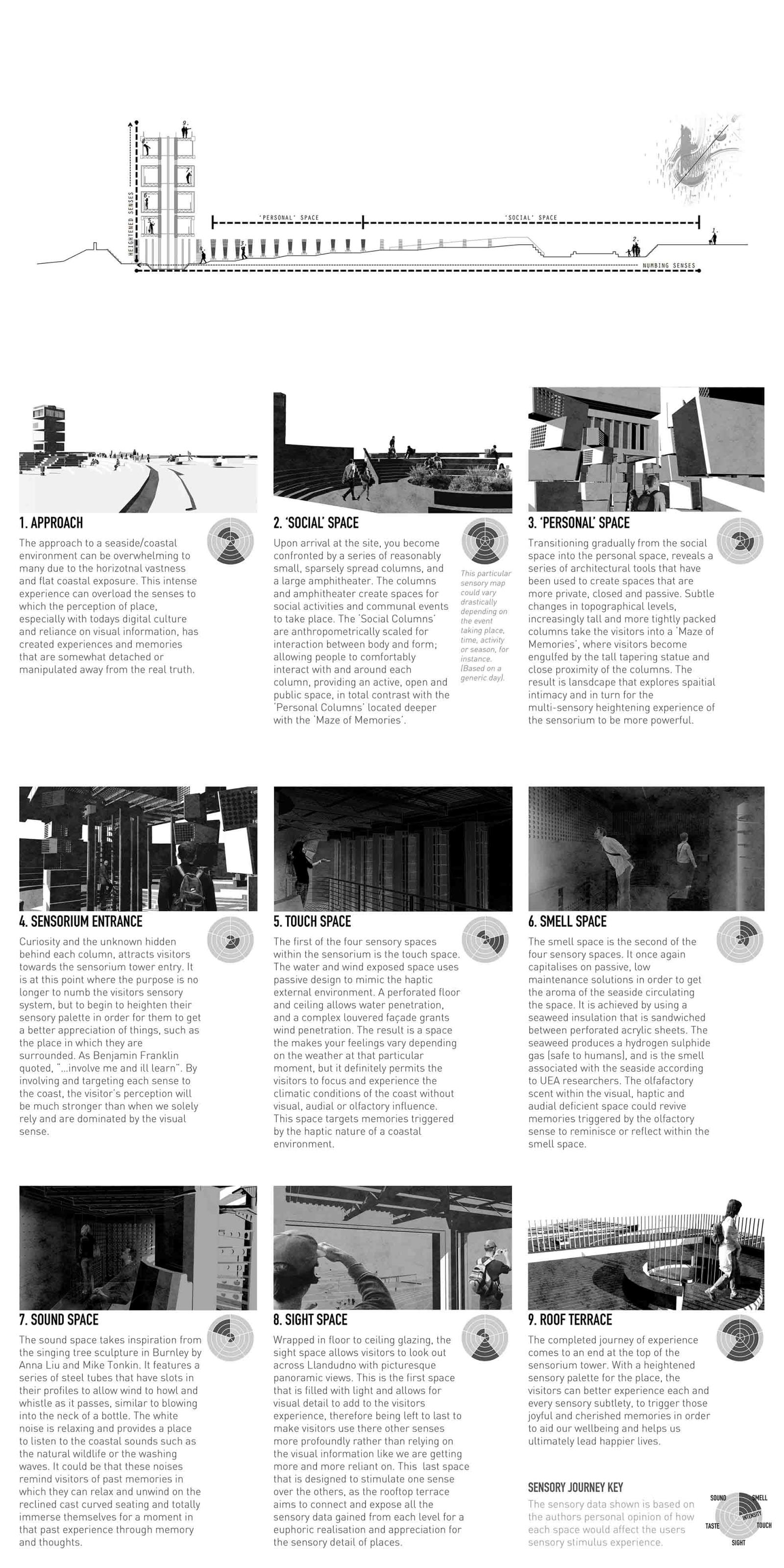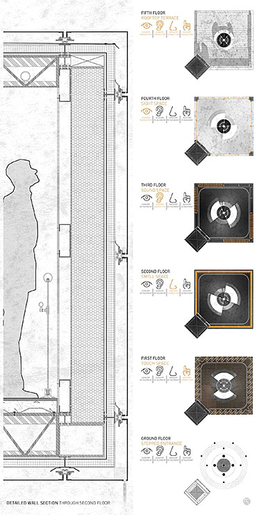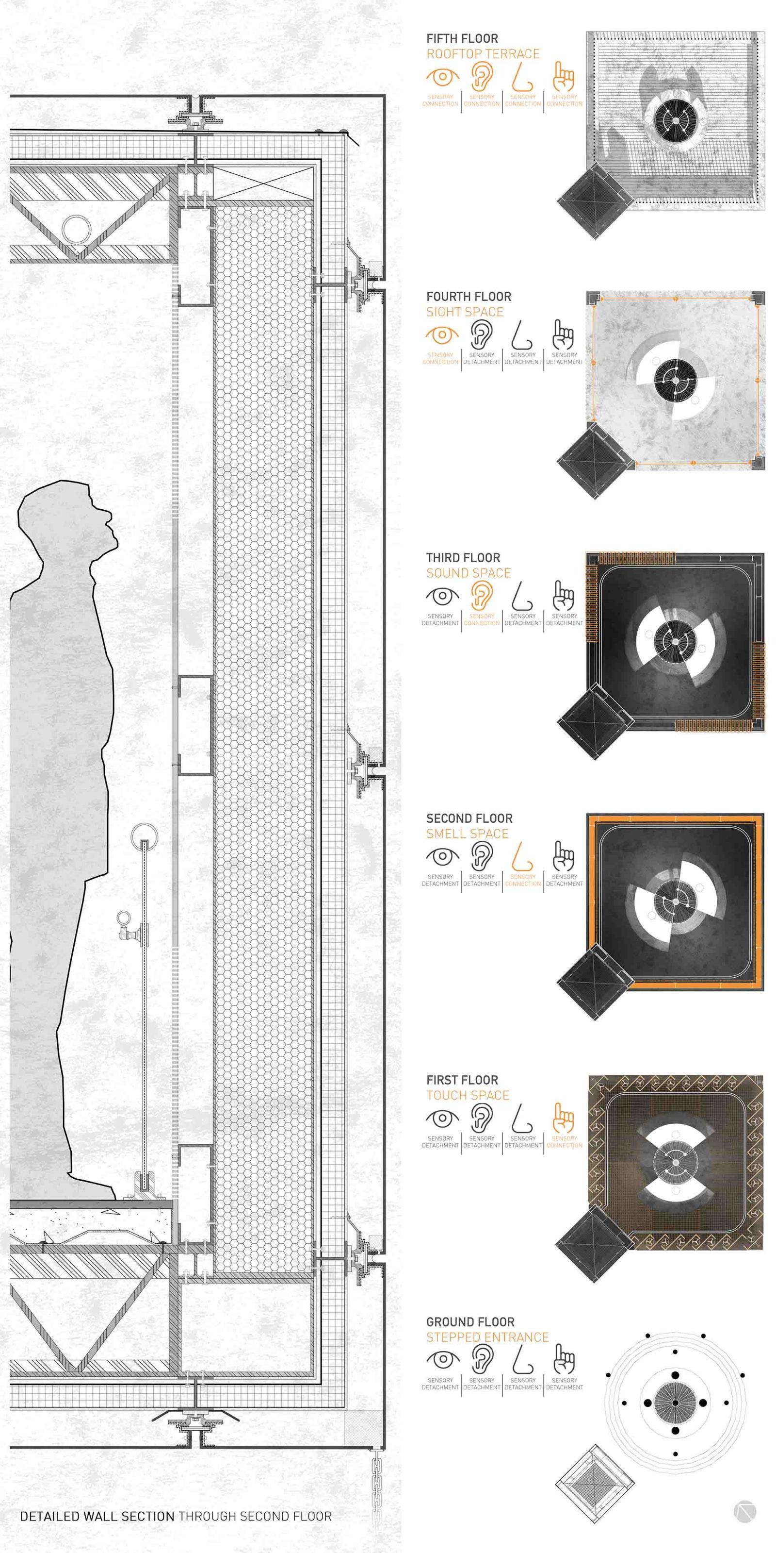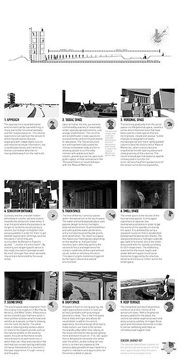 With our constant digital distractions, the way we experience our environment has completely changed due to today’s technological culture. Designed to question our reliance and regular preoccupation with personal technology, the Sensorium challenges a society that is sensorially detached from the real world, by encouraging them to explore a more multi- sensory approach to perception, reconnecting us to the world in which we are surrounded for greater experiences and memories.